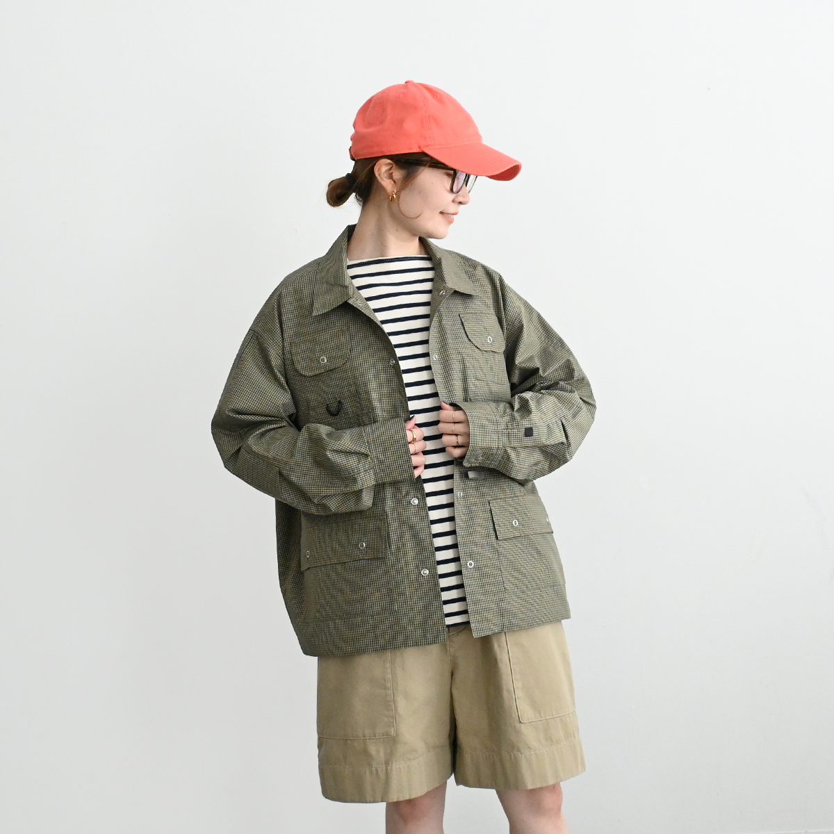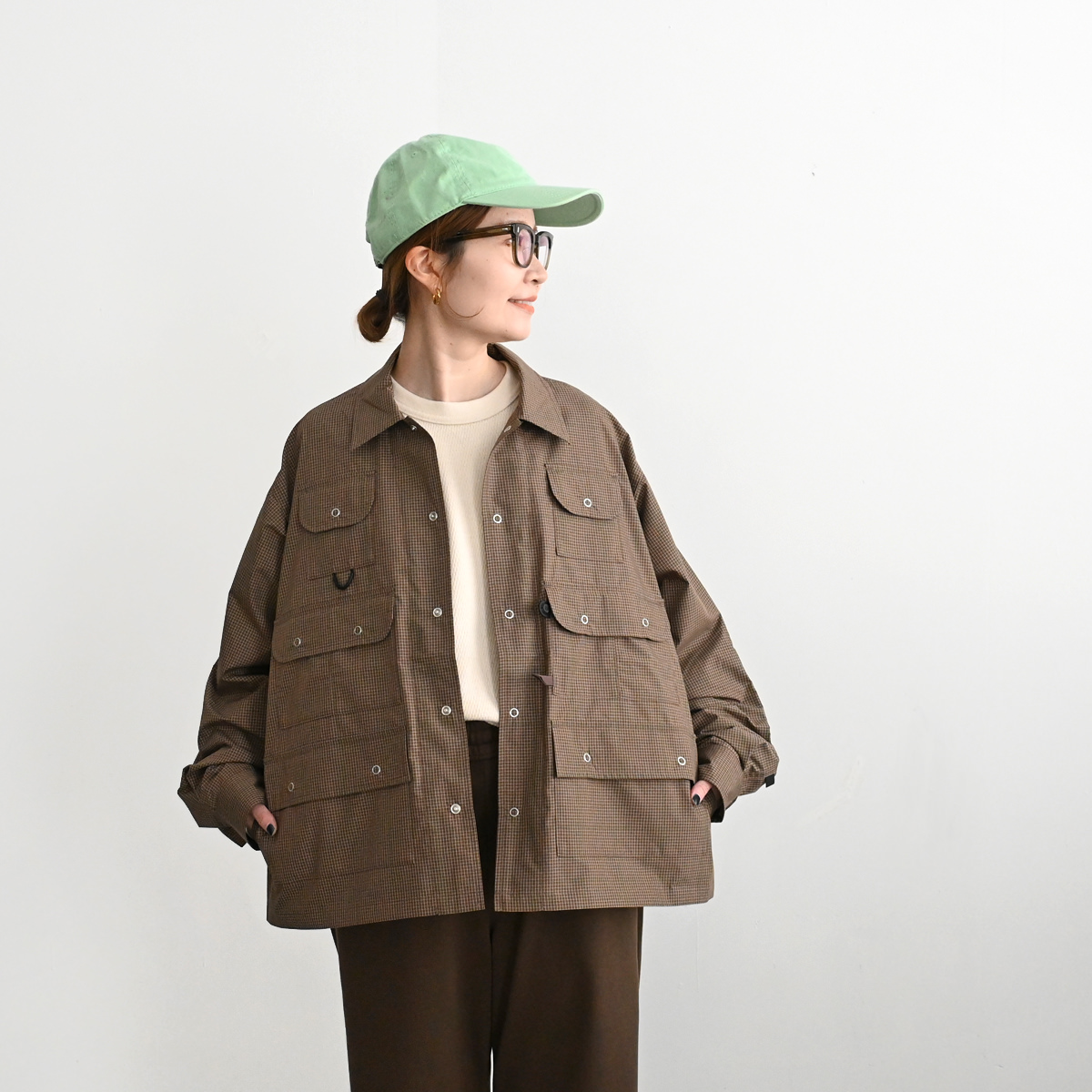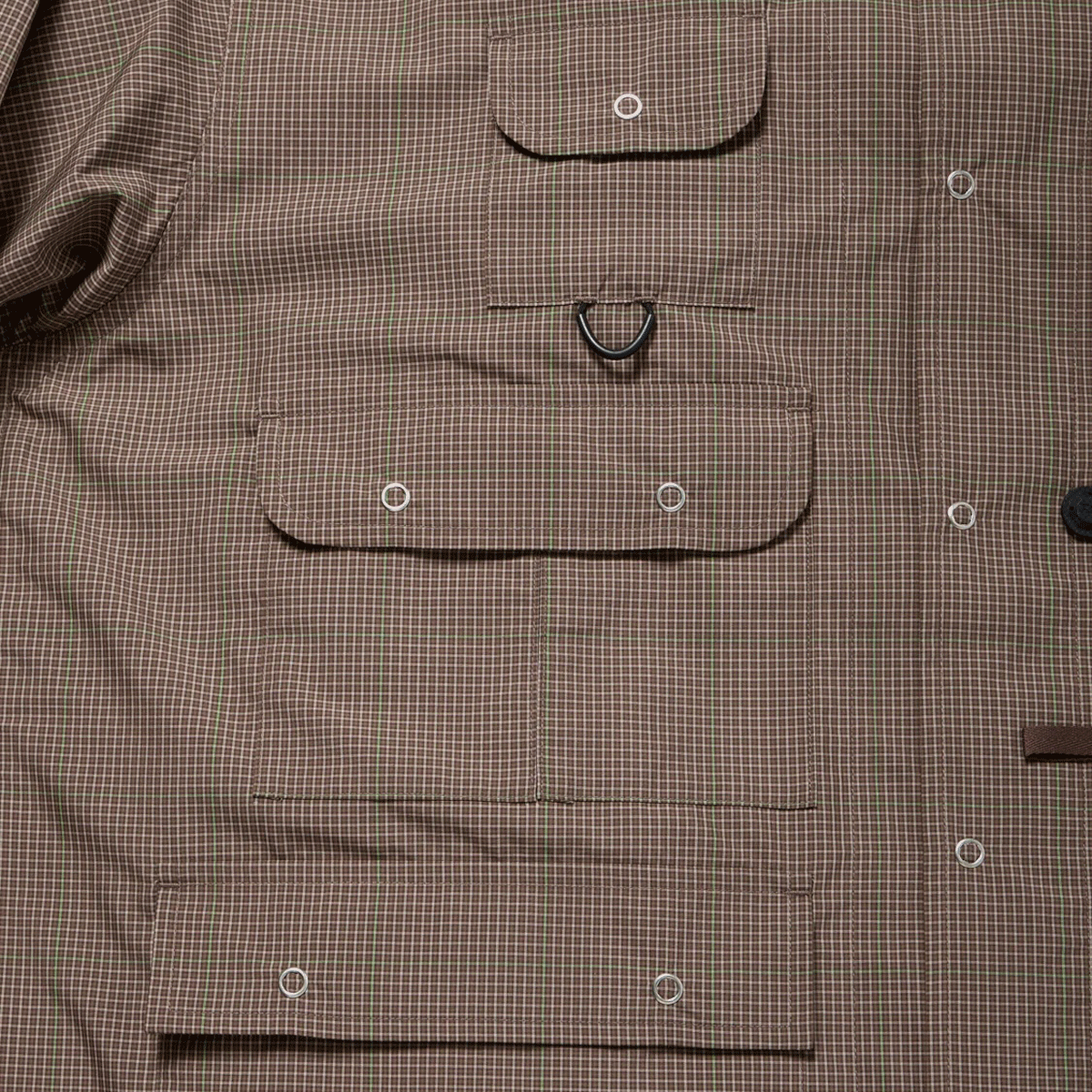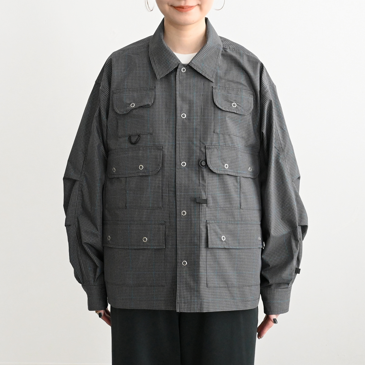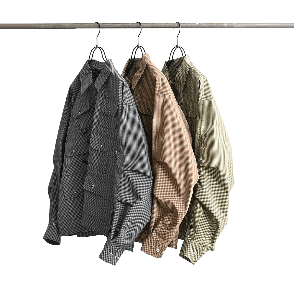ヴィンテージのフィッシングジャケットをデザインソースに、シャツ素材にて軽量にアップデート。