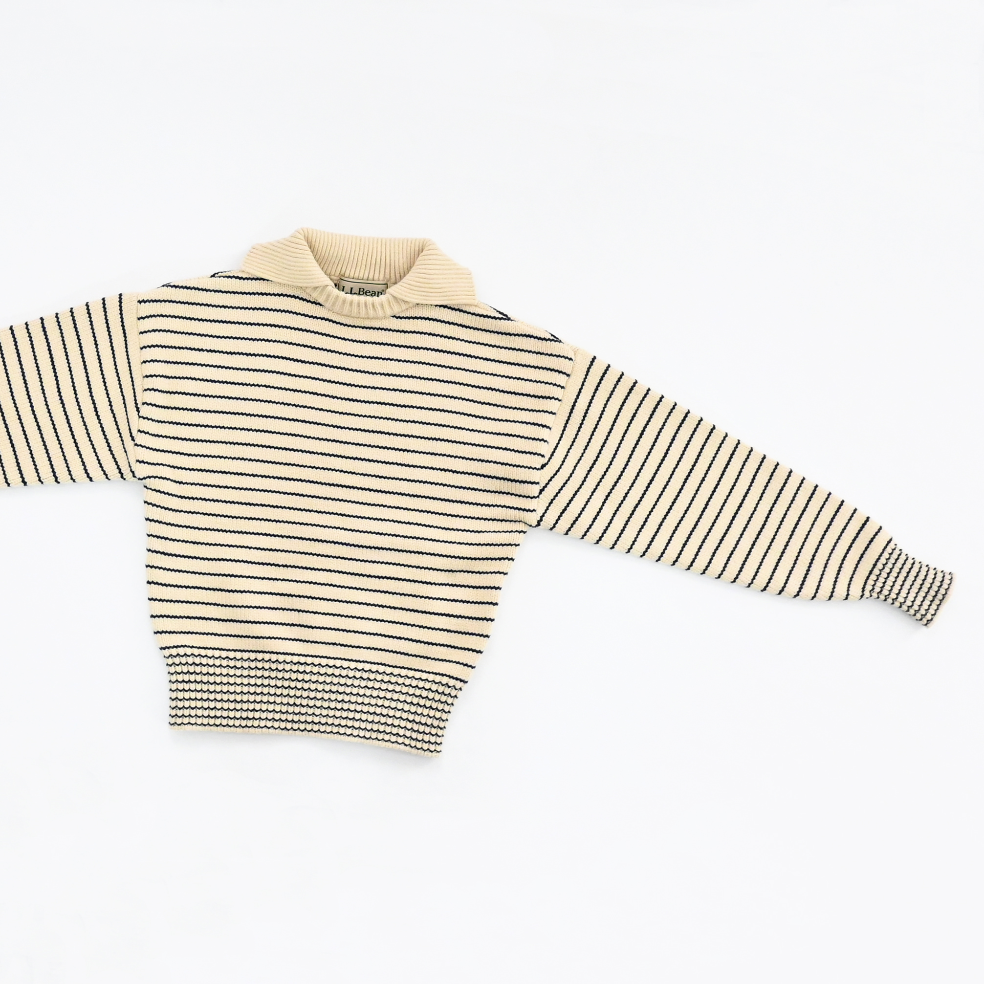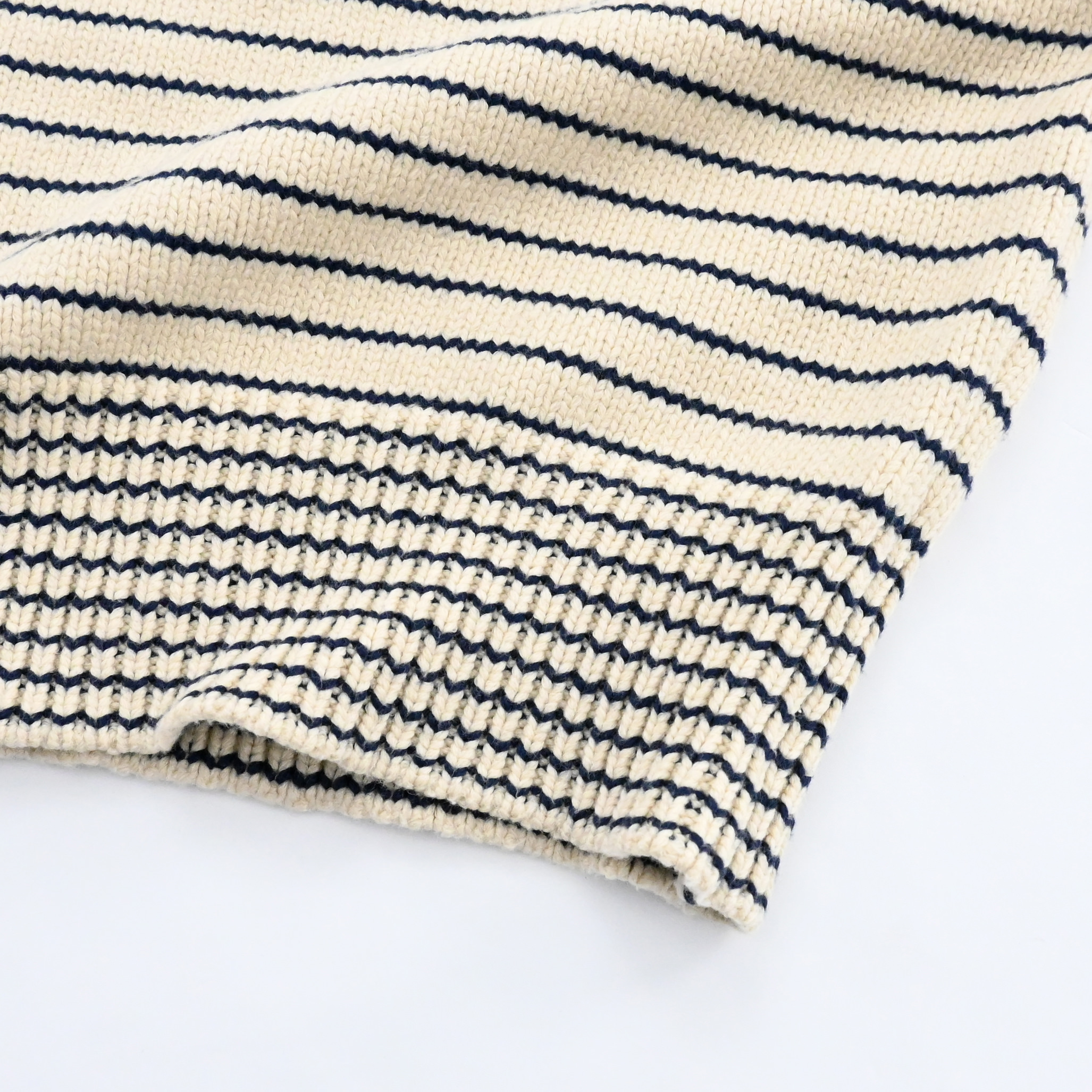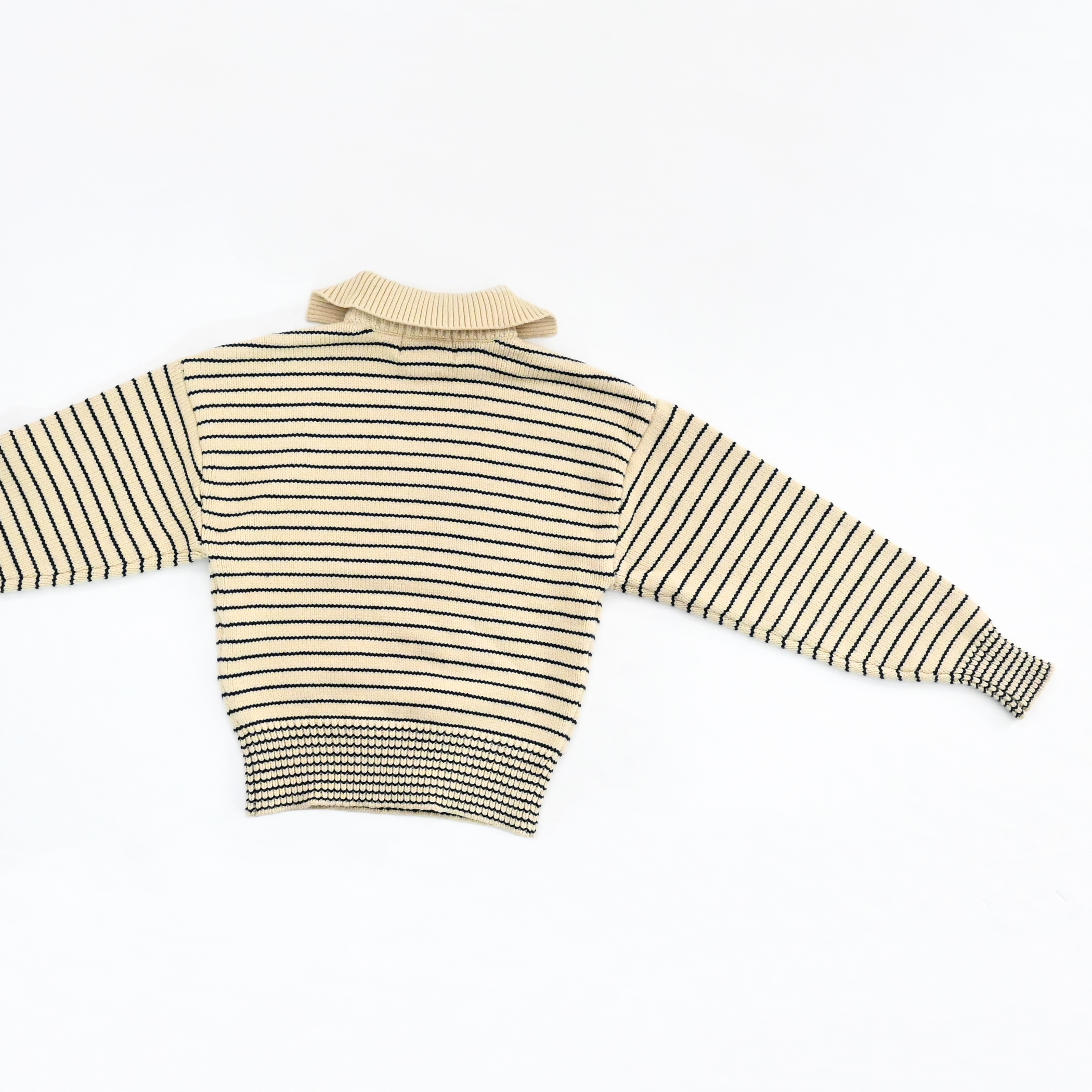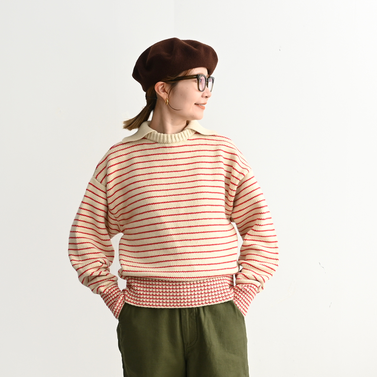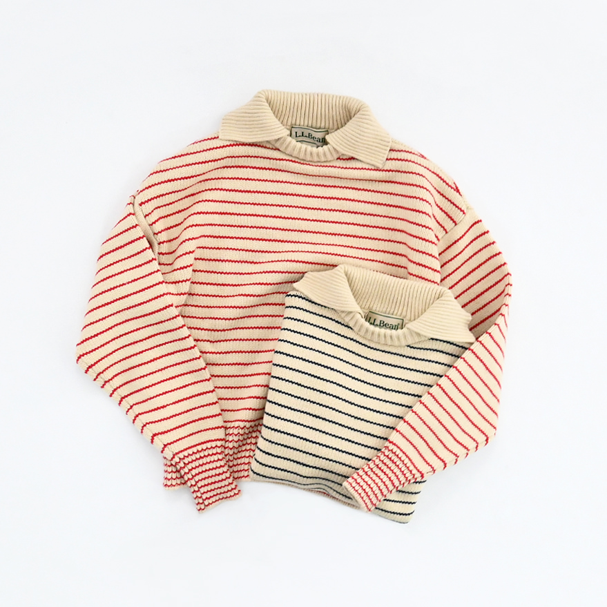 大きめの襟が特徴的な80年代のセーターをデザインベースに、軽やかなコットンとポリエステルの混紡糸でアップデート。