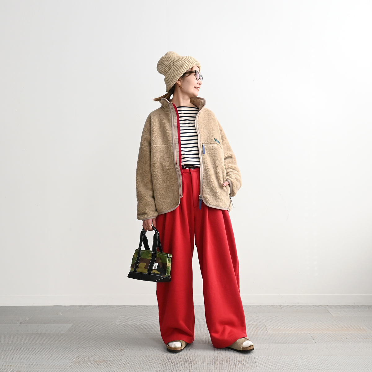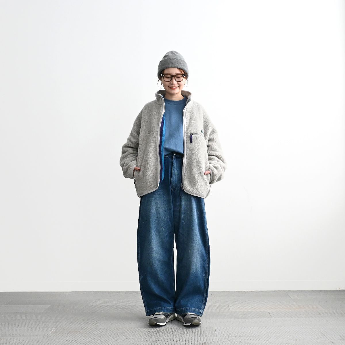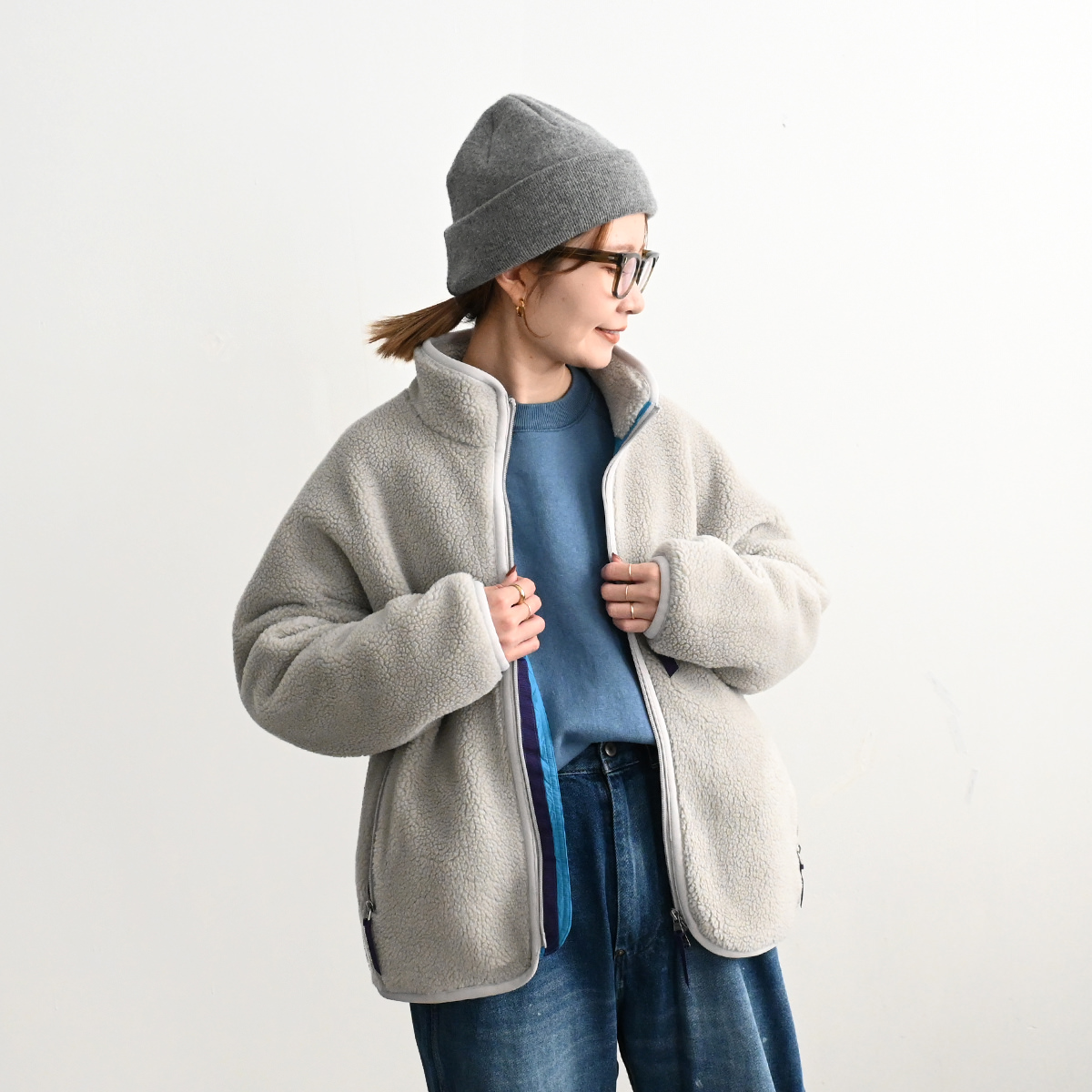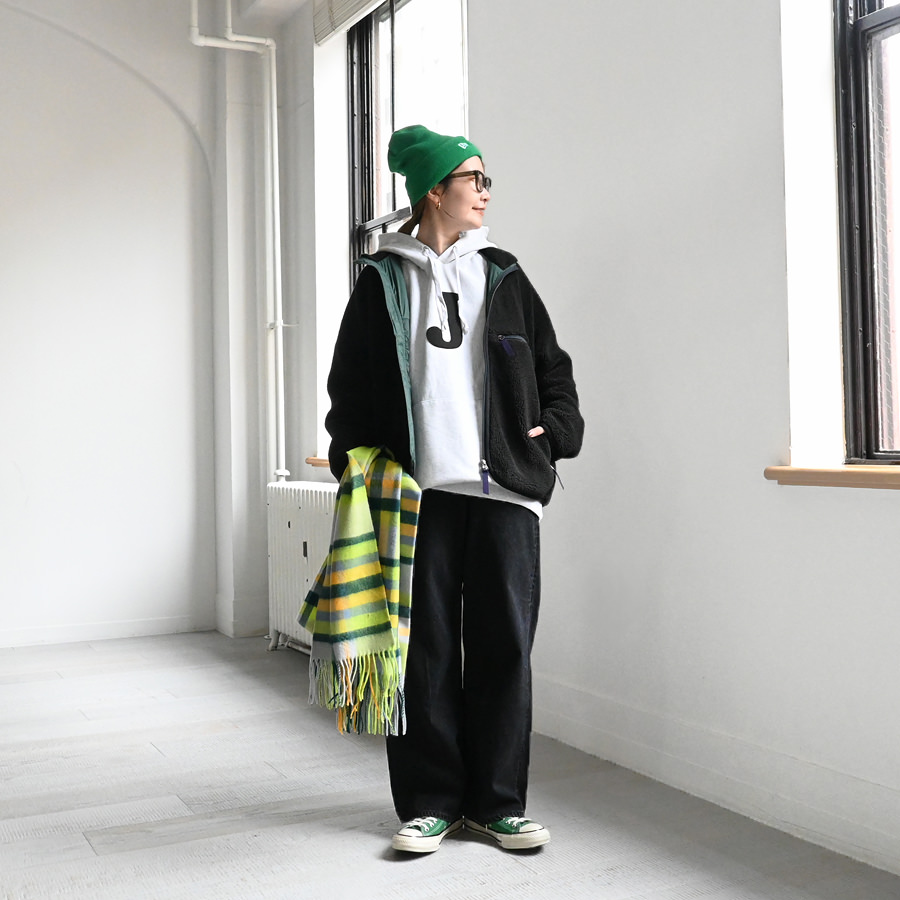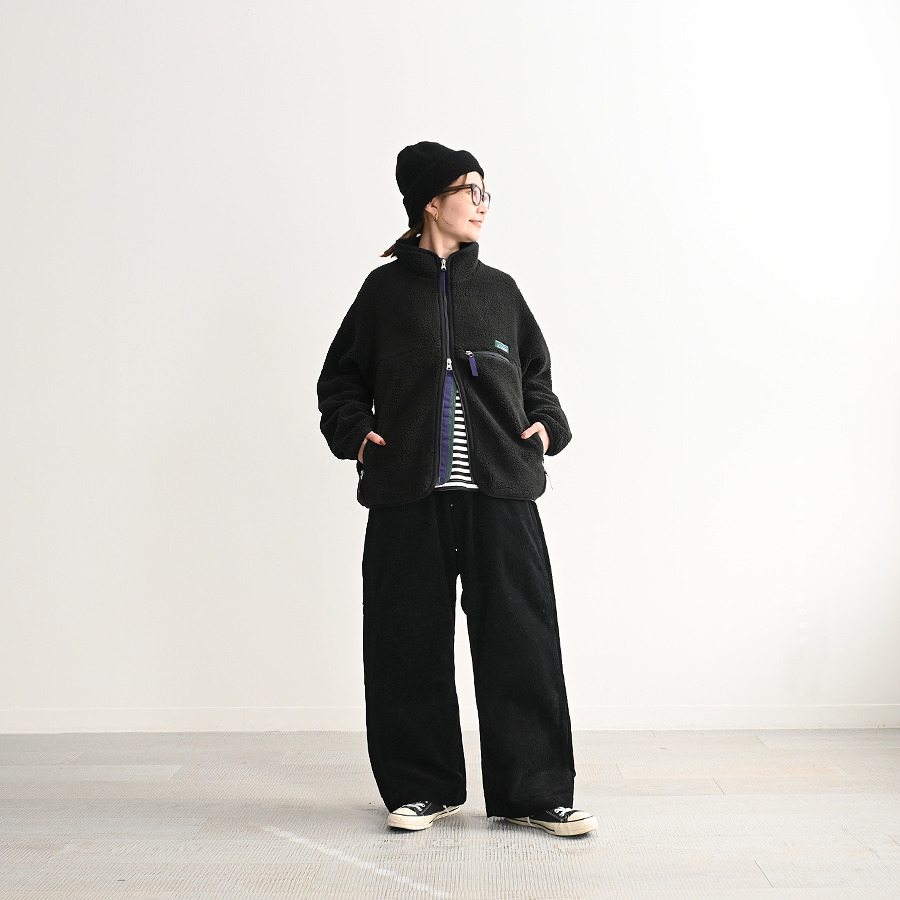 素材は高機能繊維サーモライト糸を使用した、とてもソフトで膨らみのあるオリジナルのフラッフィー・ボア・フリースを採用。