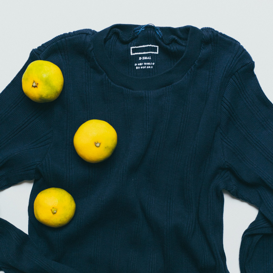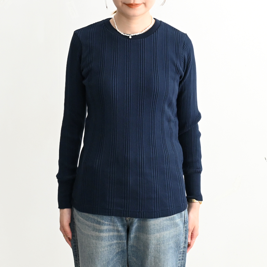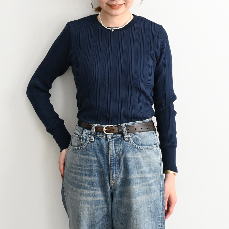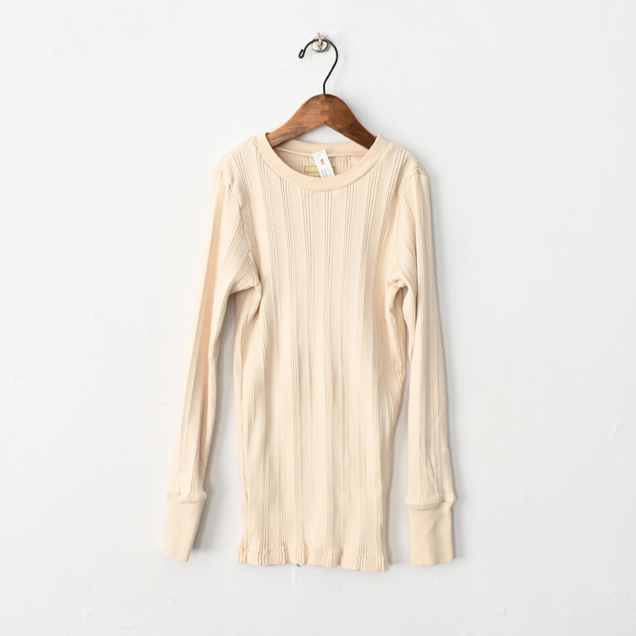 こちらは、コットンシルクのランダムリブを編み立てた、Ohh! オリジナルファブリックのロングスリーブ。