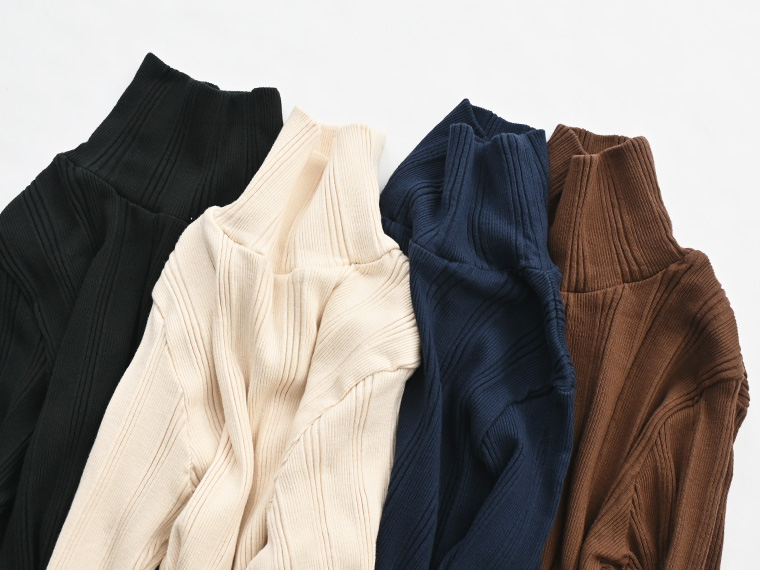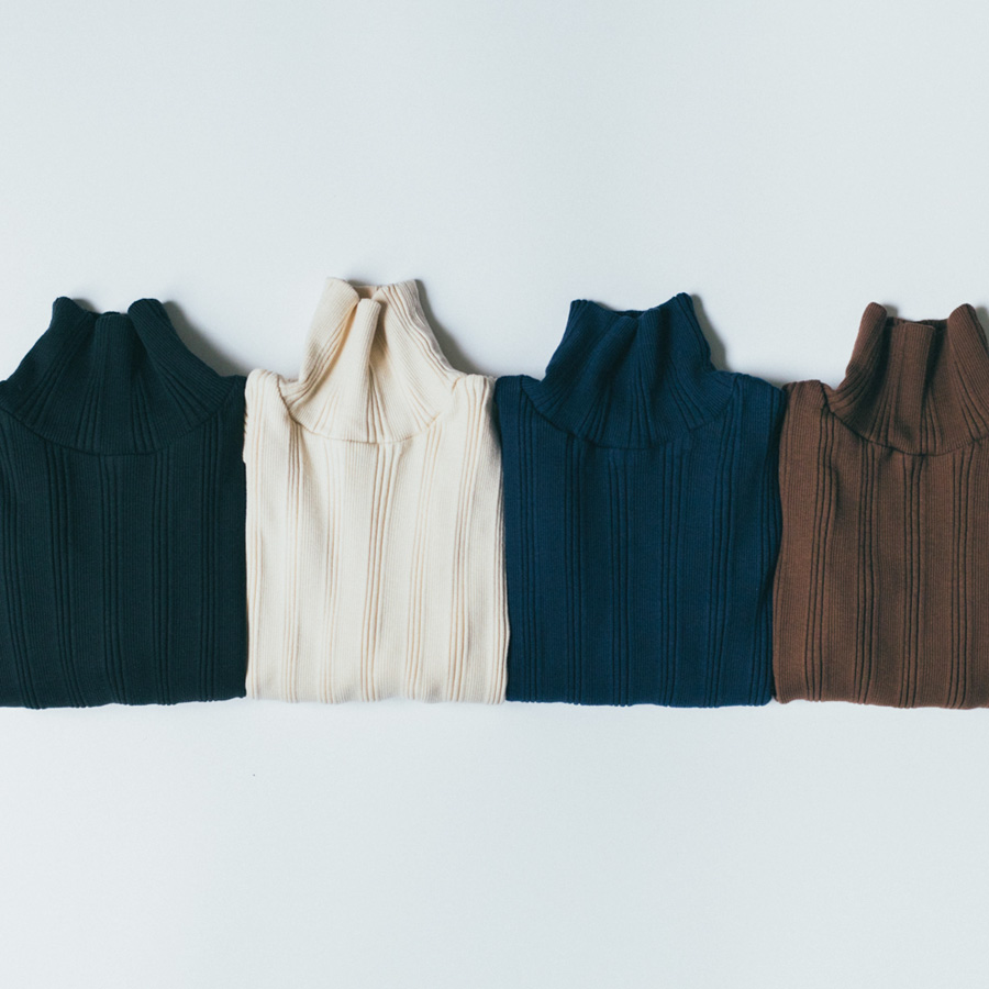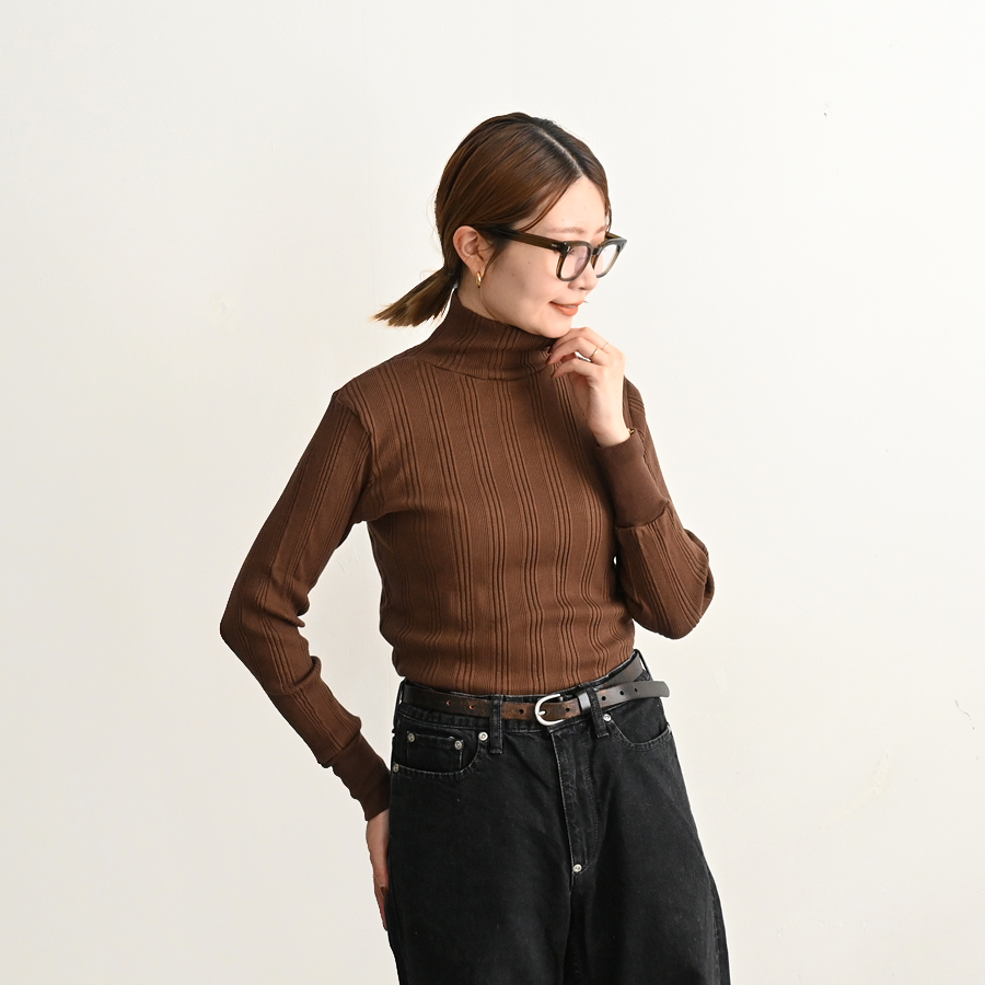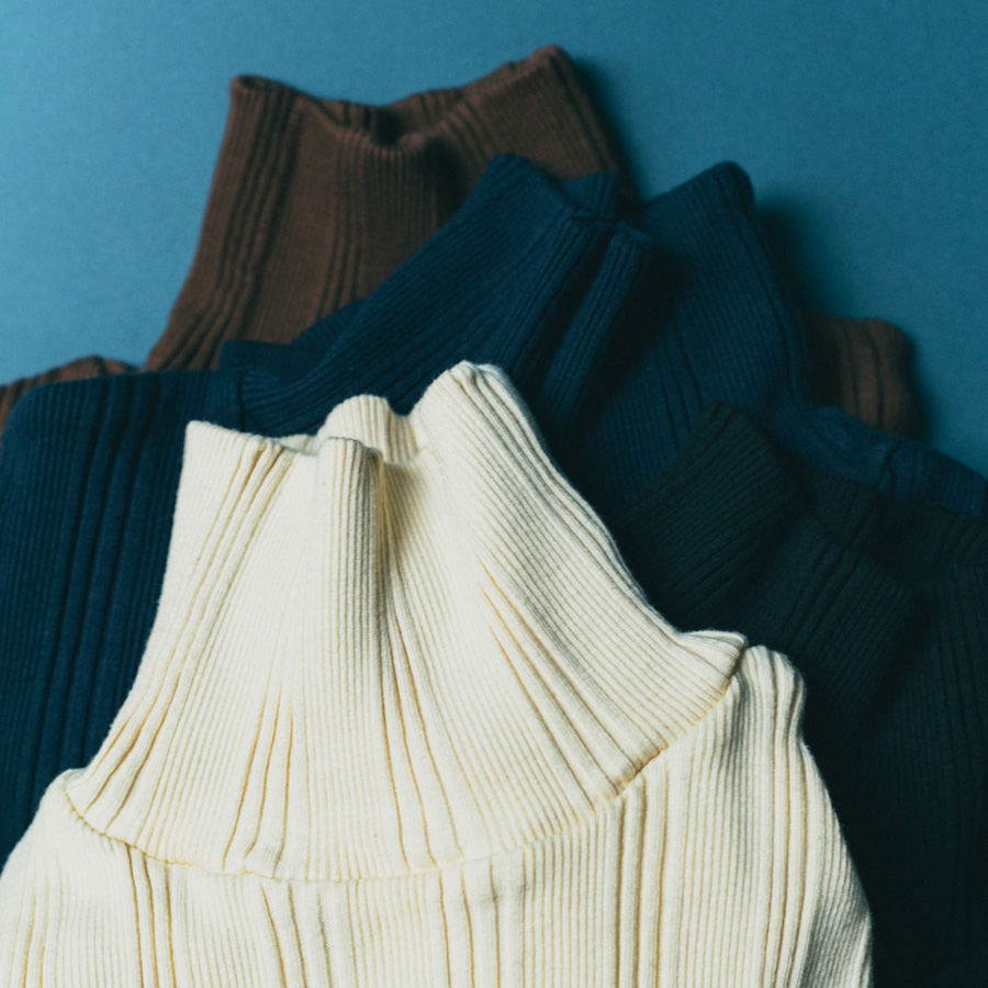シンプルなデザインのタートルネックはチラ見せインナー使いにも重宝する一枚です。