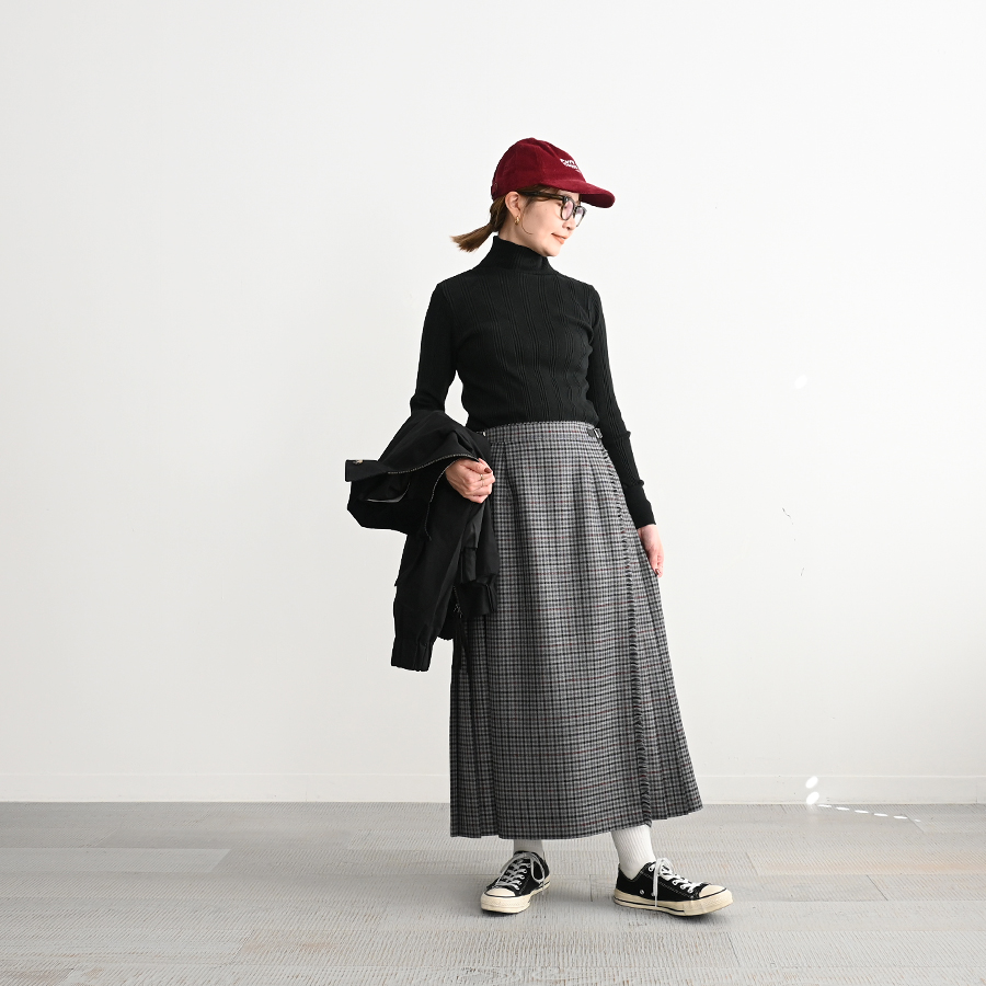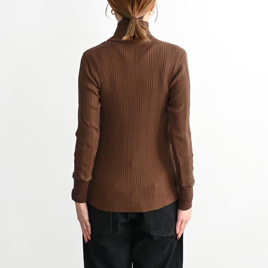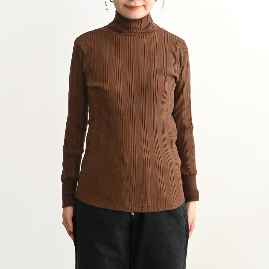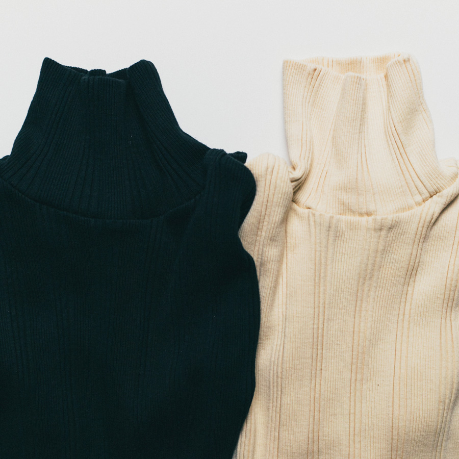 シンプルなデザインのタートルネックはチラ見せインナー使いにも重宝する一枚です。