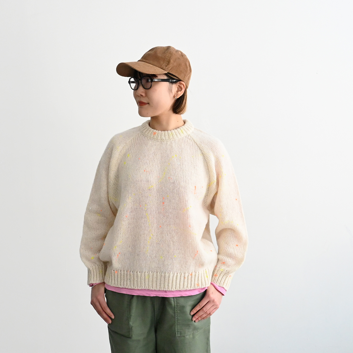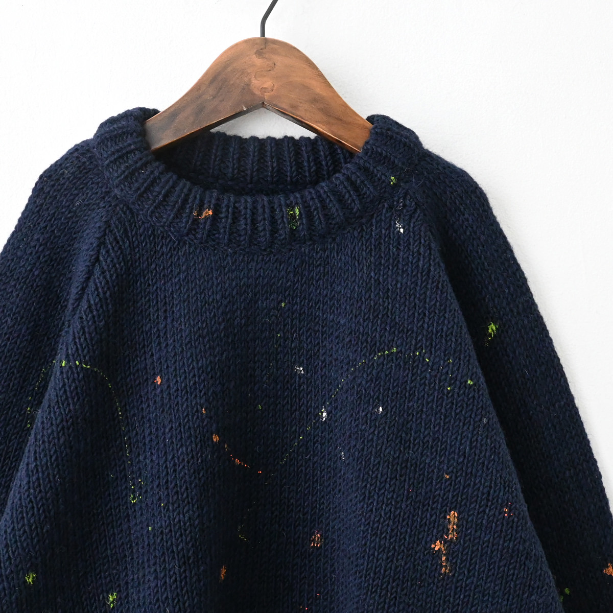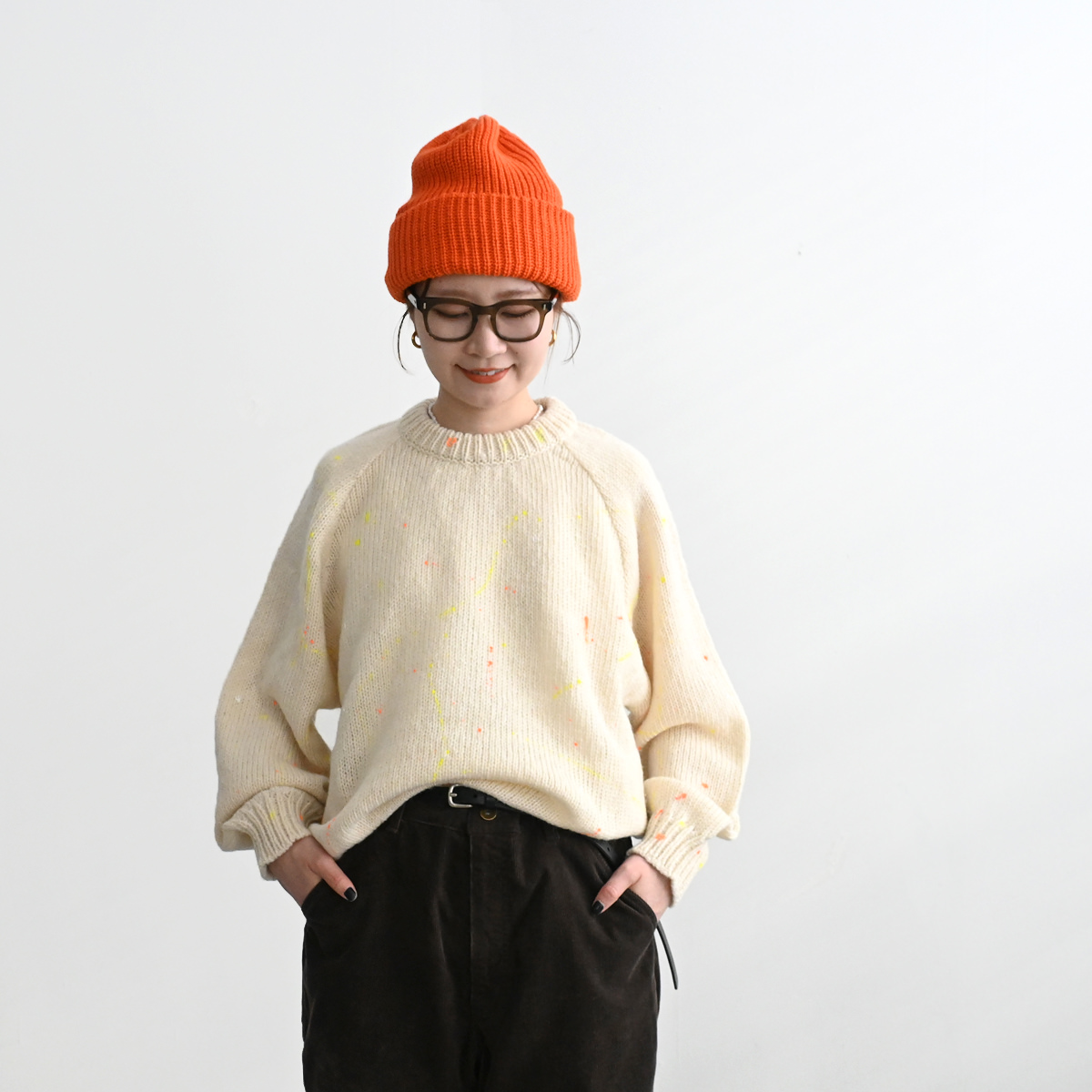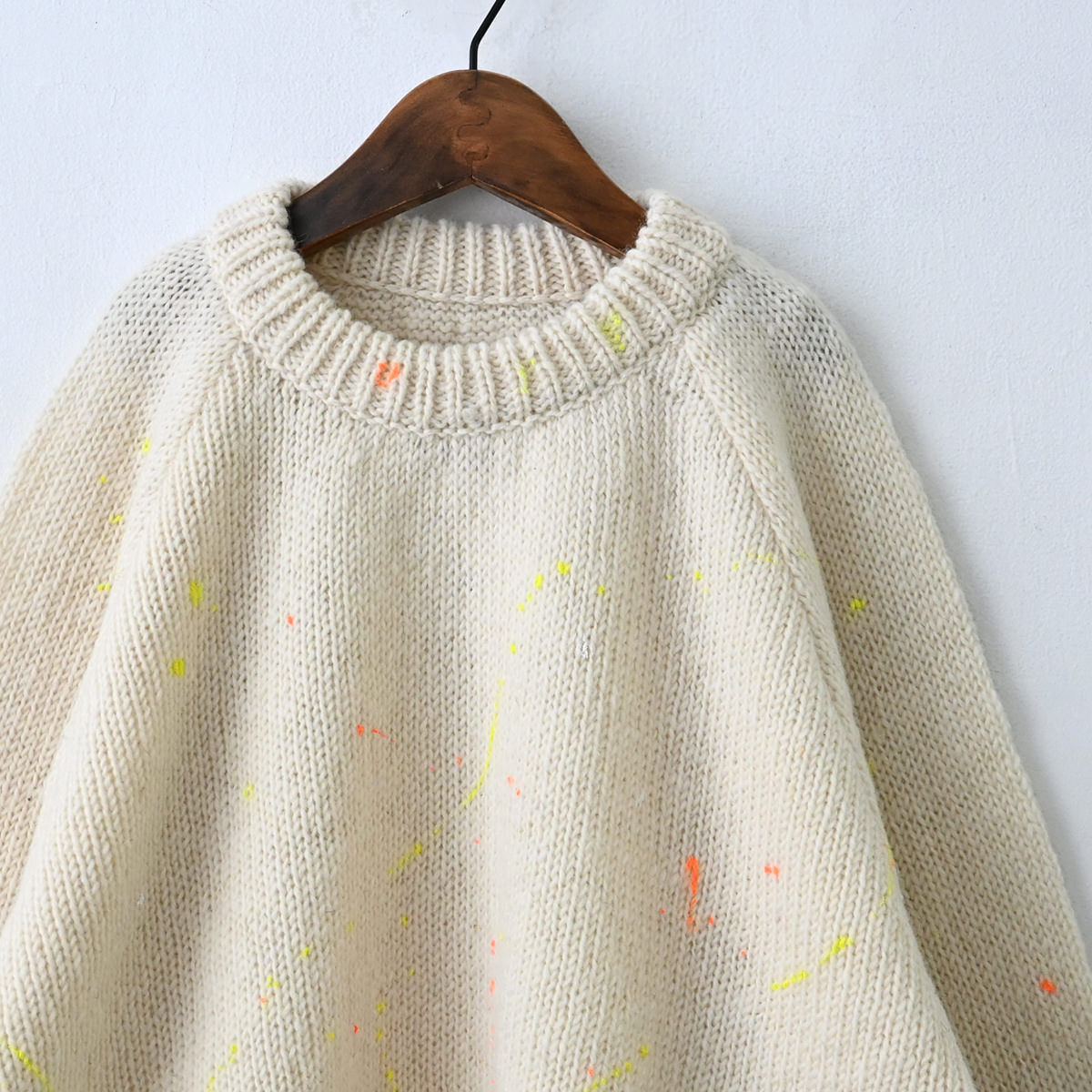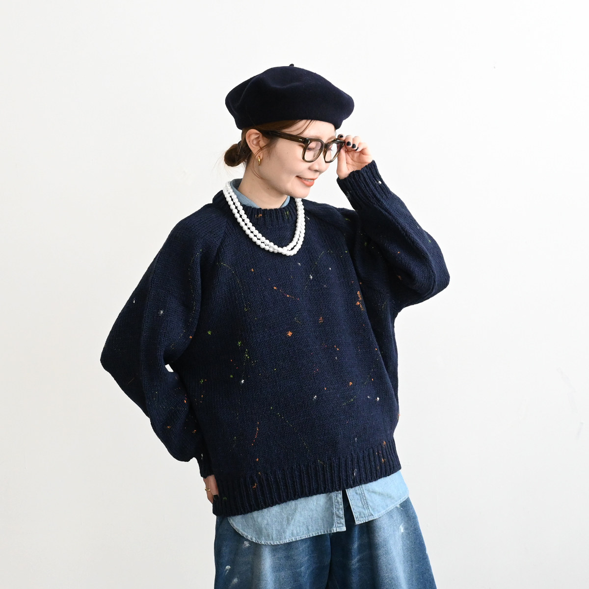 手編みならではの温かみある仕上がりのセーターに散りばめられたペイントがアクセントに◎