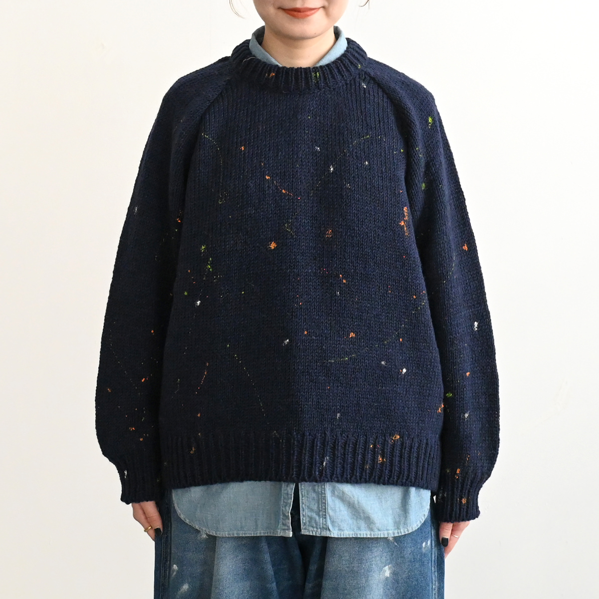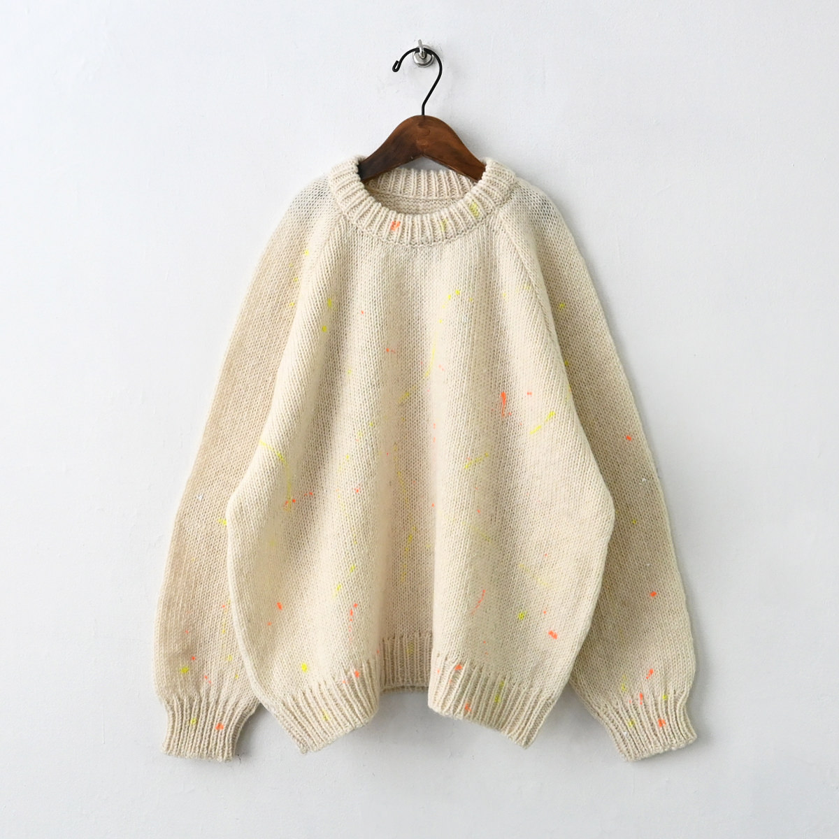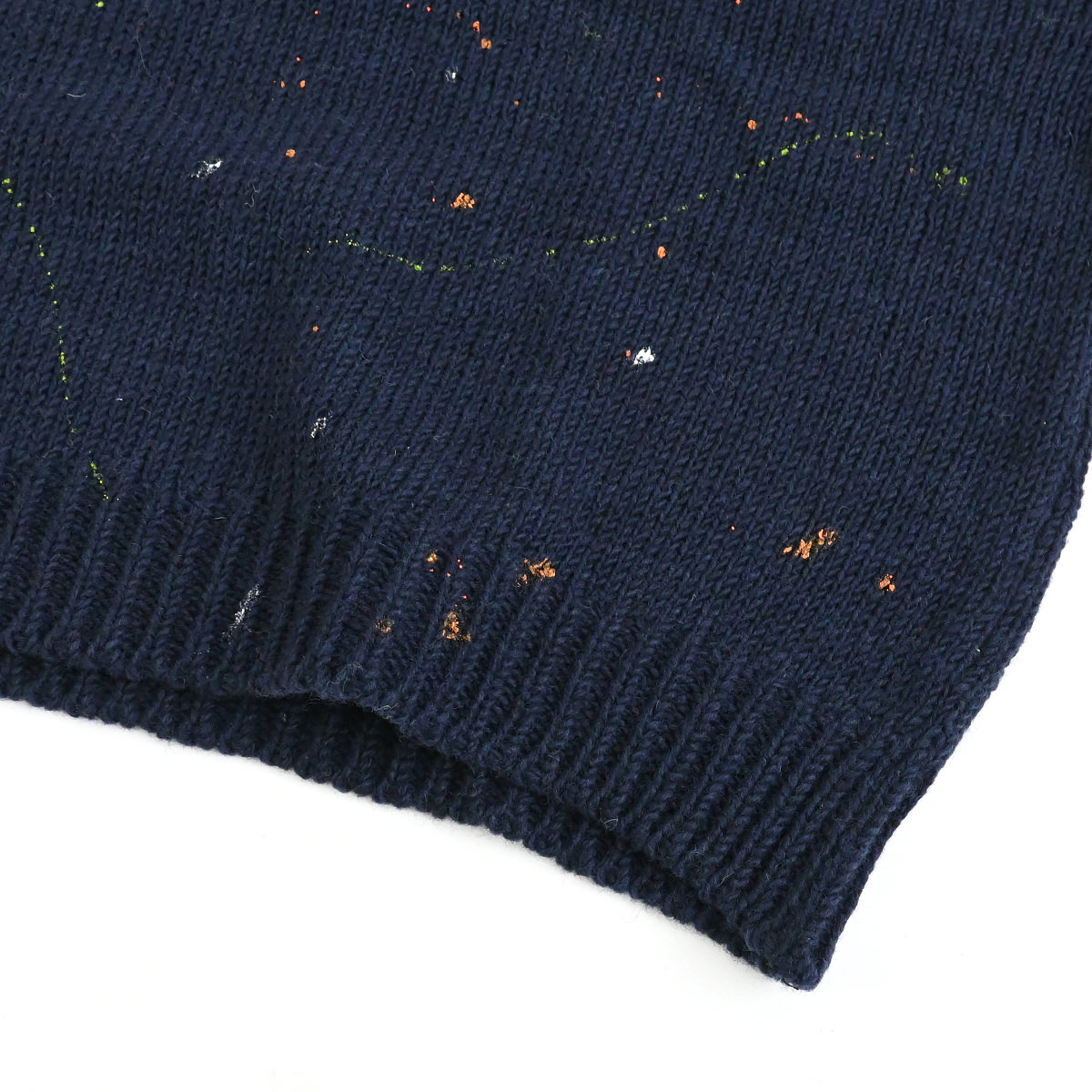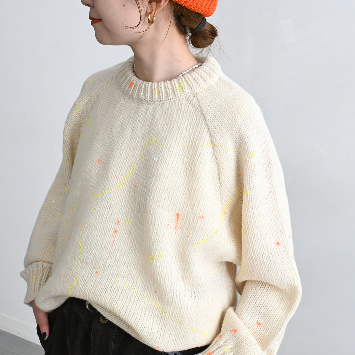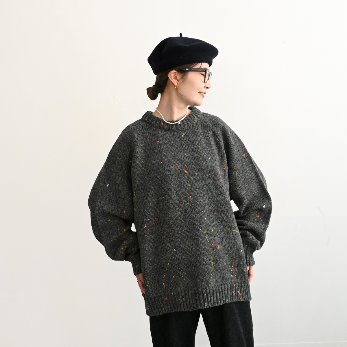 手編みならではの温かみある仕上がりのセーターに散りばめられたペイントがアクセントに◎