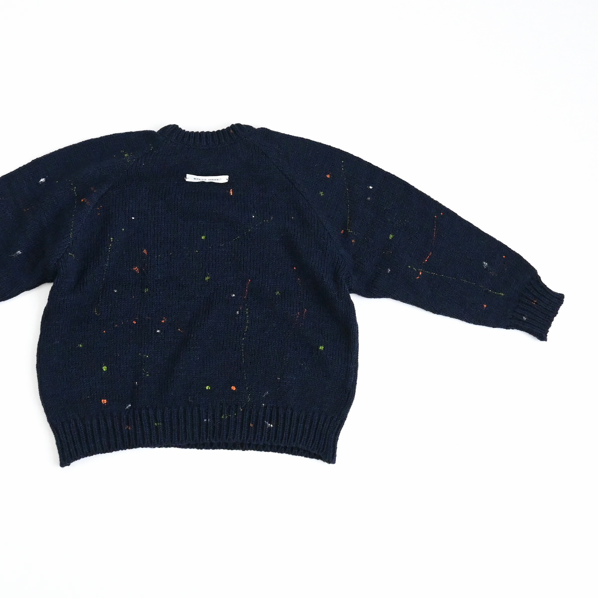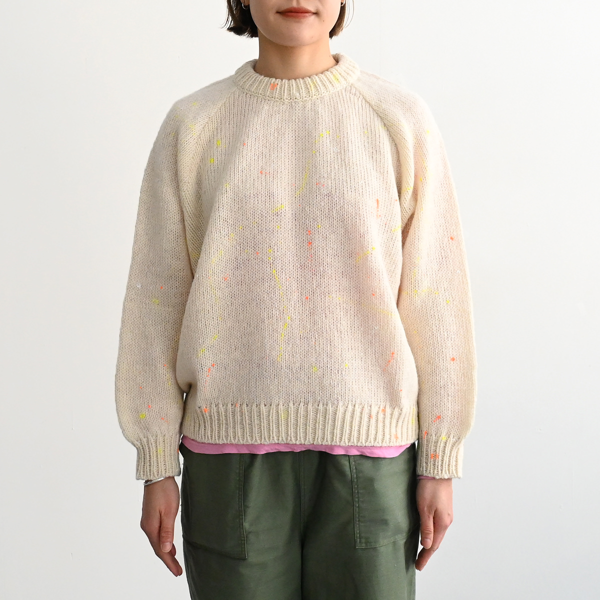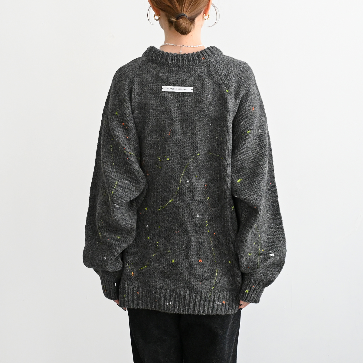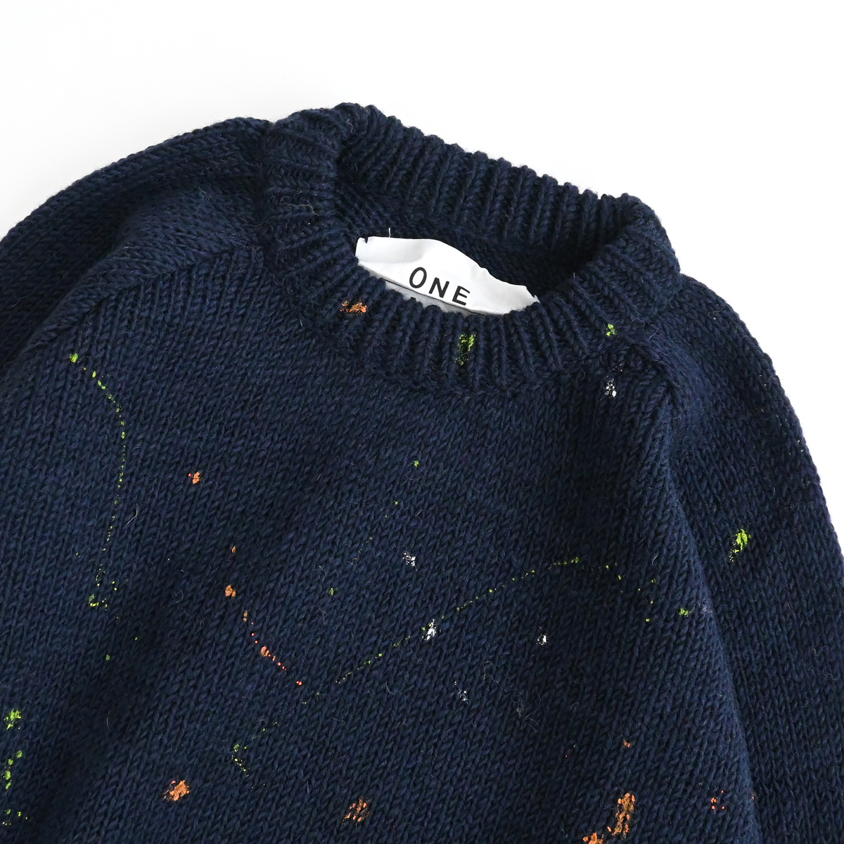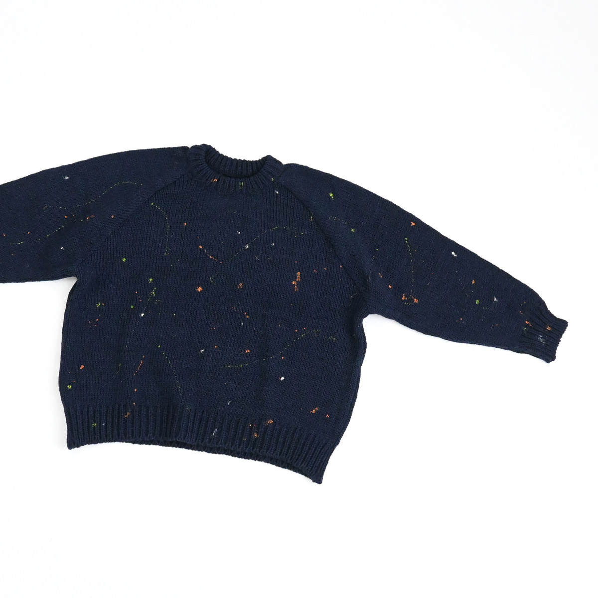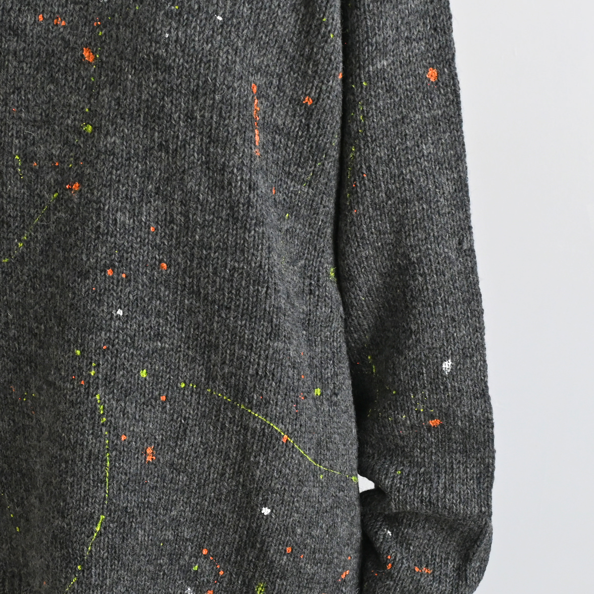 手編みならではの温かみある仕上がりのセーターに散りばめられたペイントがアクセントに◎