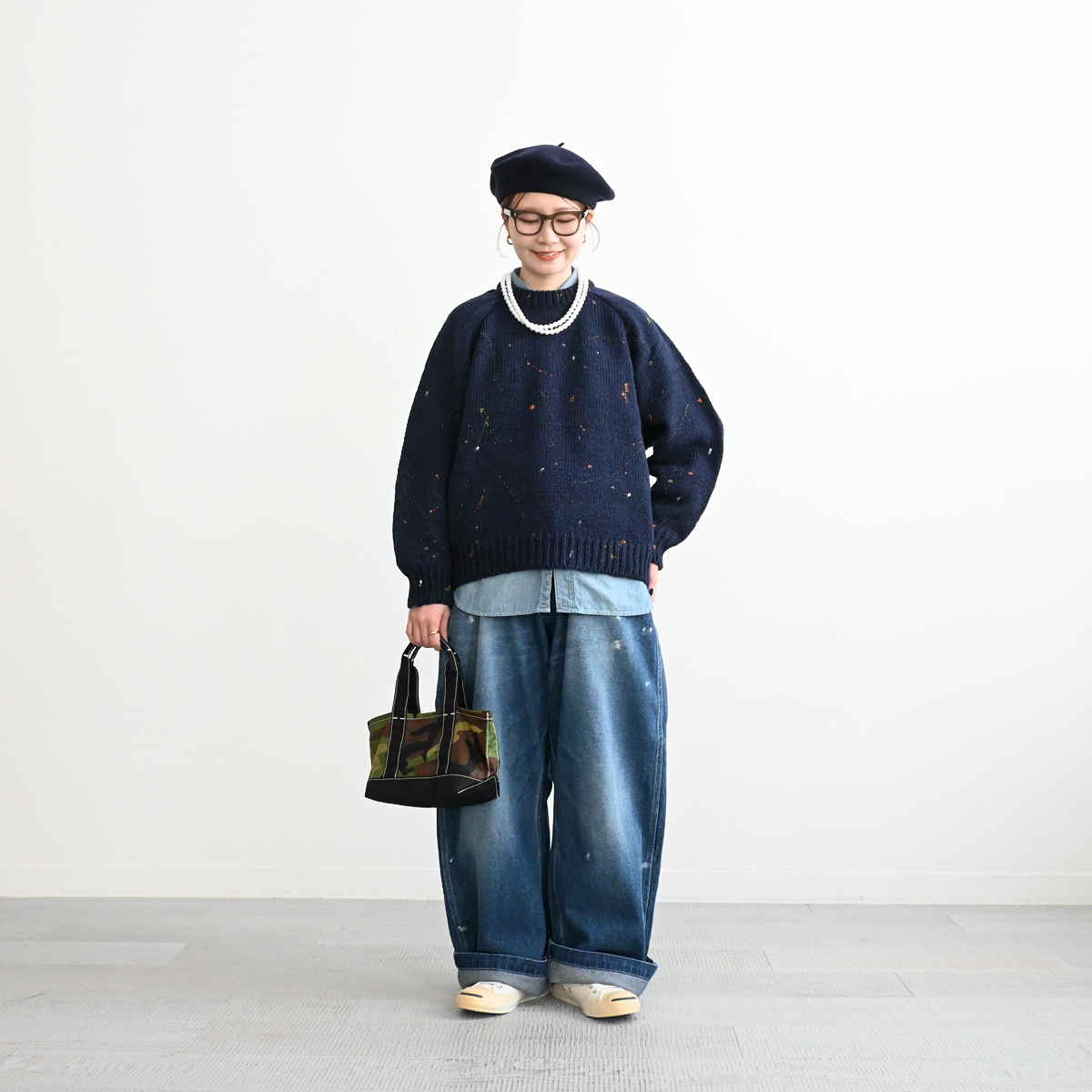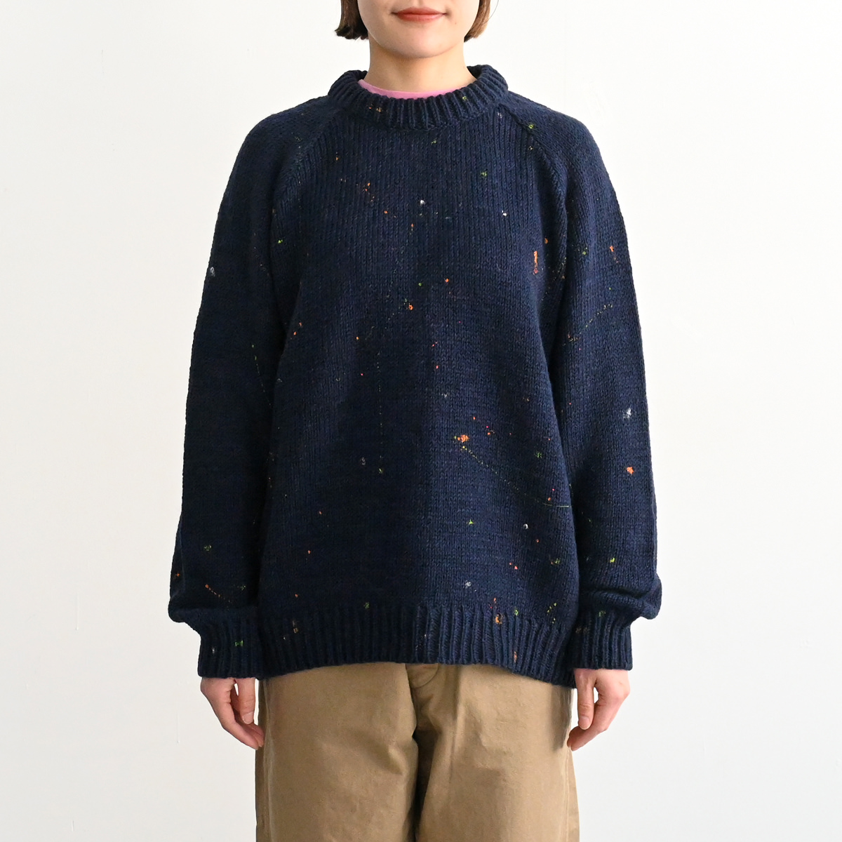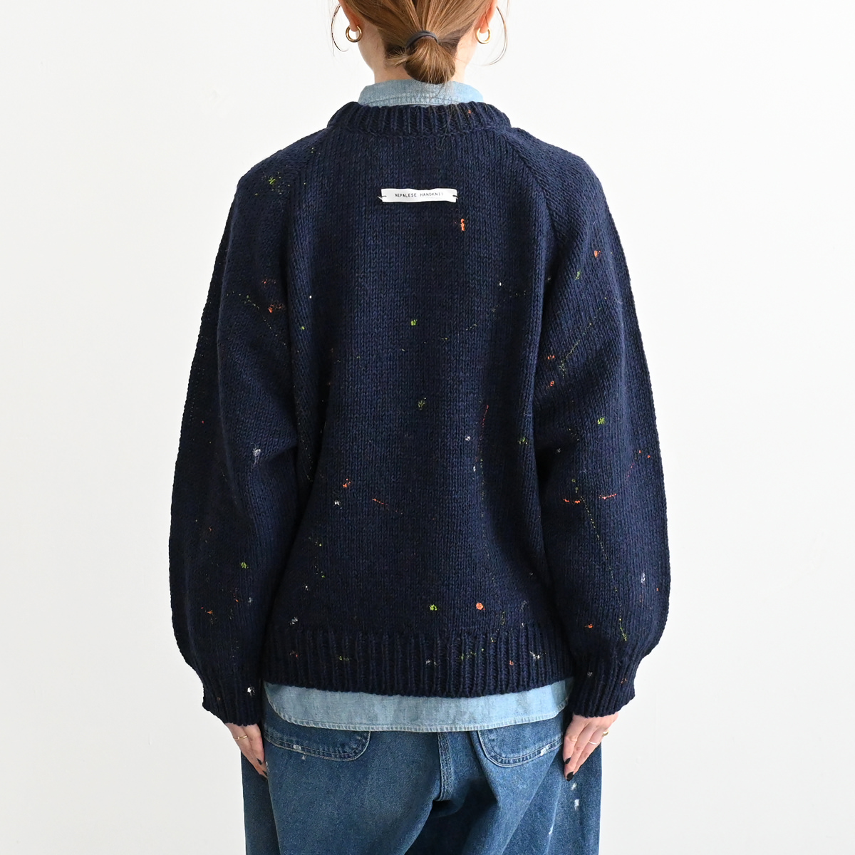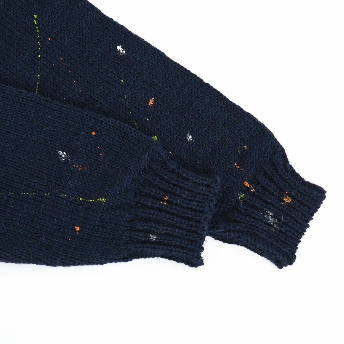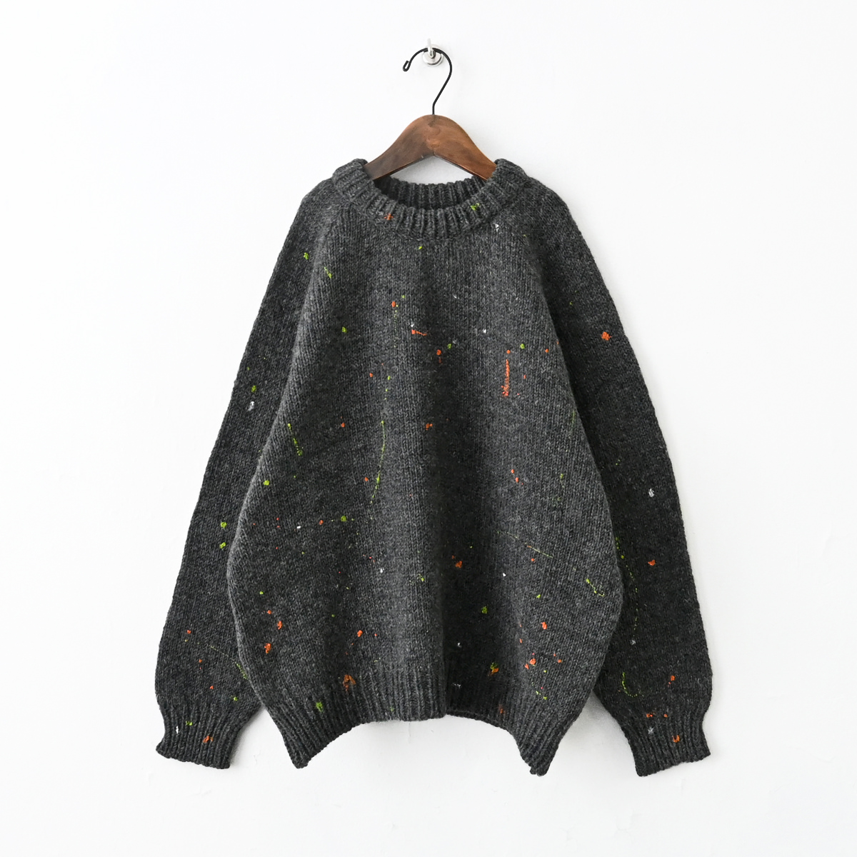 手編みならではの温かみある仕上がりのセーターに散りばめられたペイントがアクセントに◎