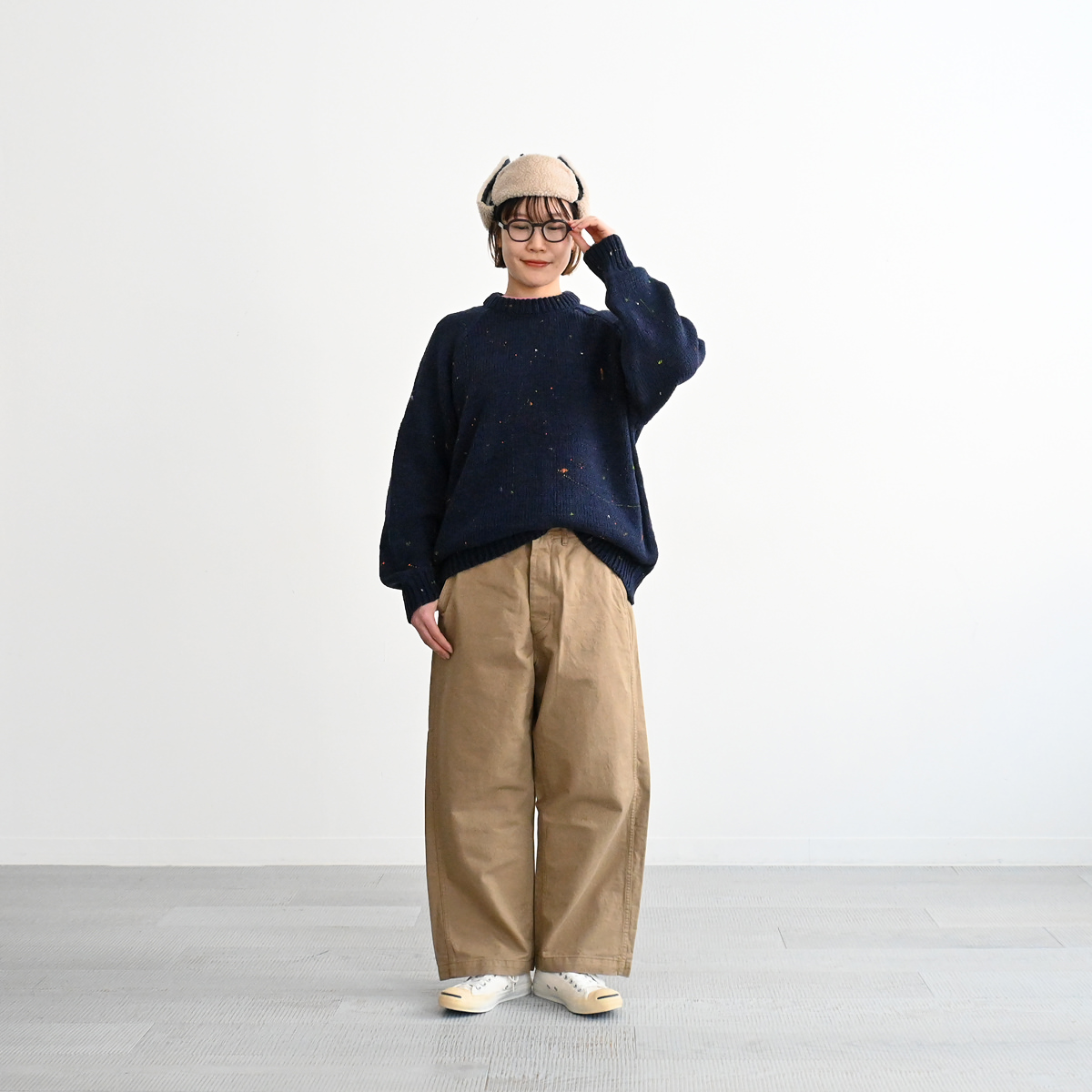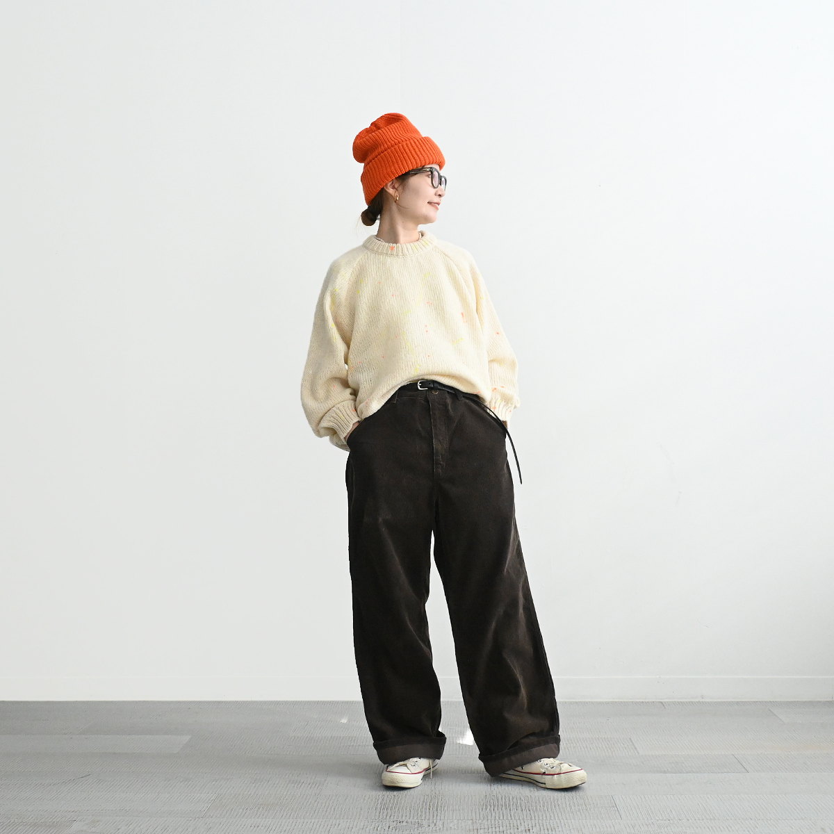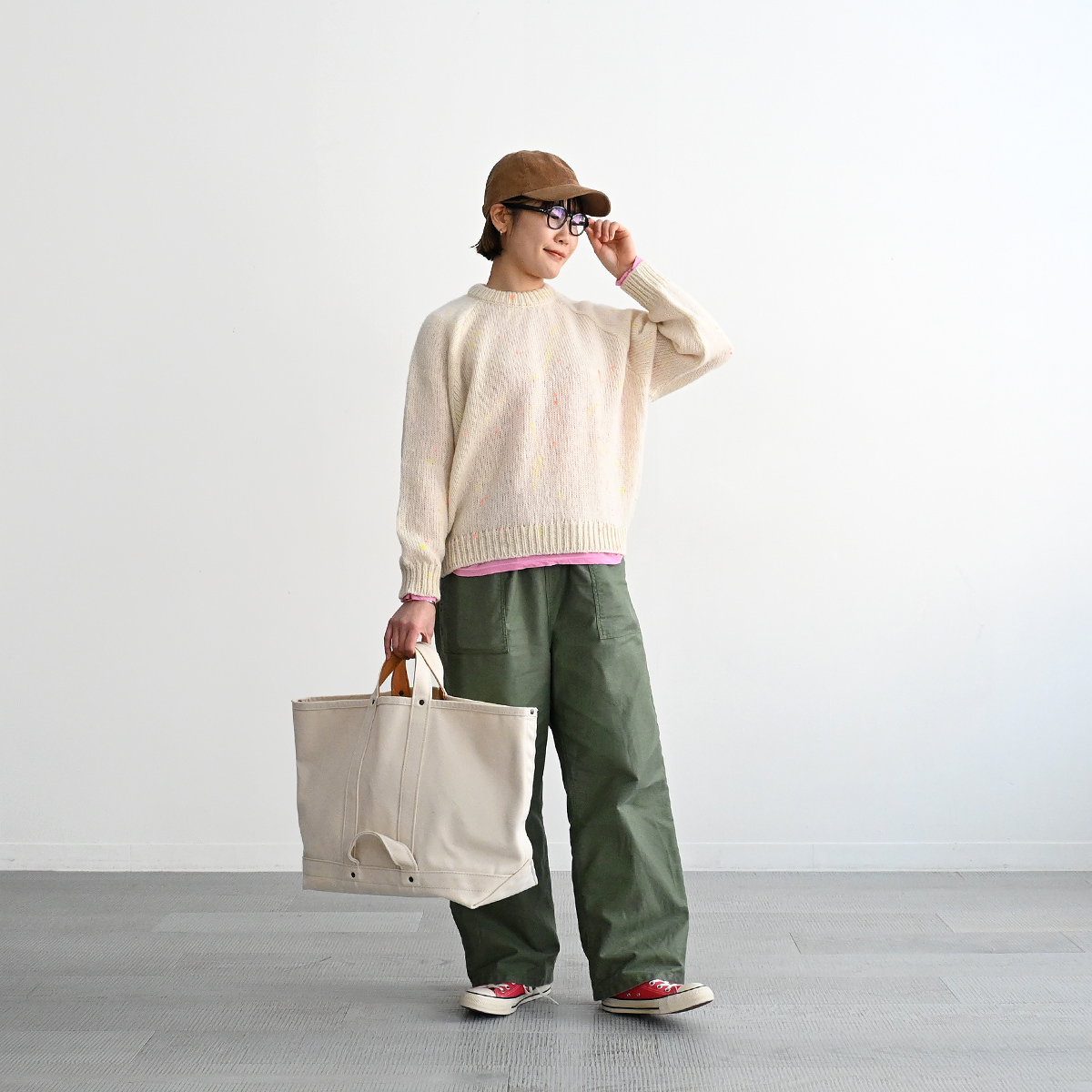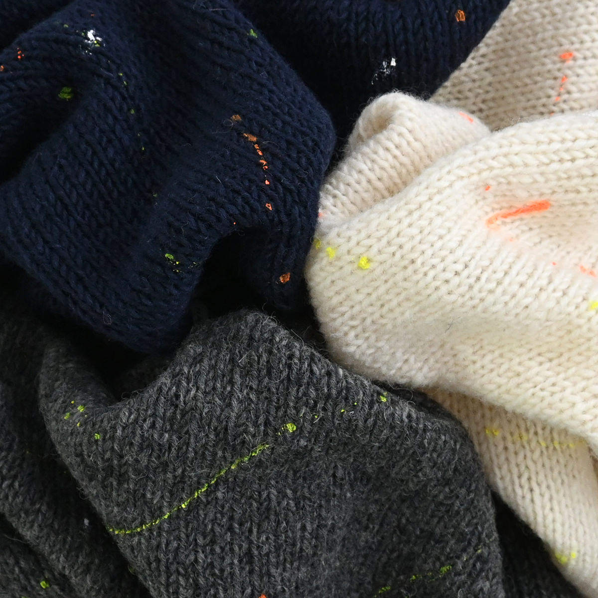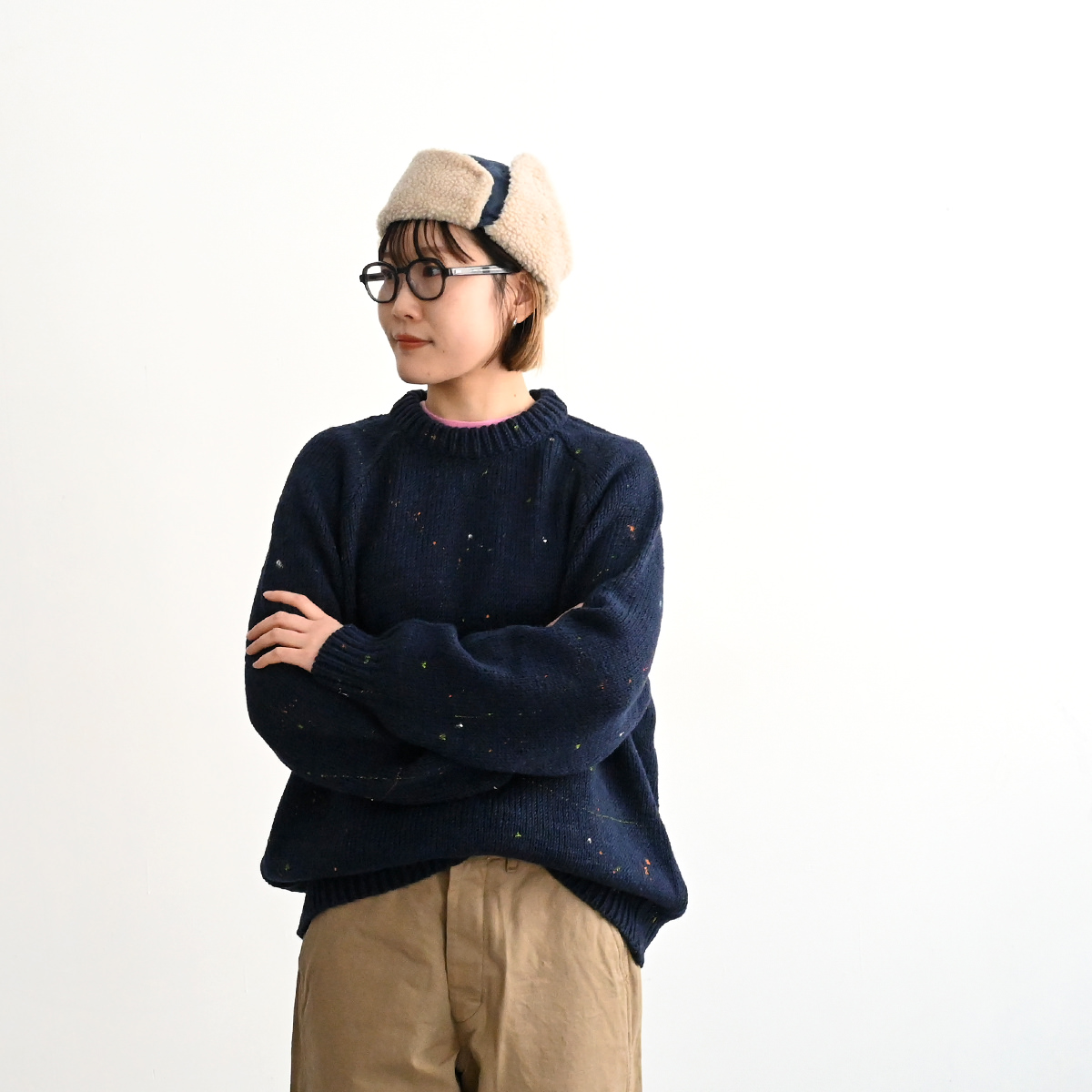 手編みならではの温かみある仕上がりのセーターに散りばめられたペイントがアクセントに◎