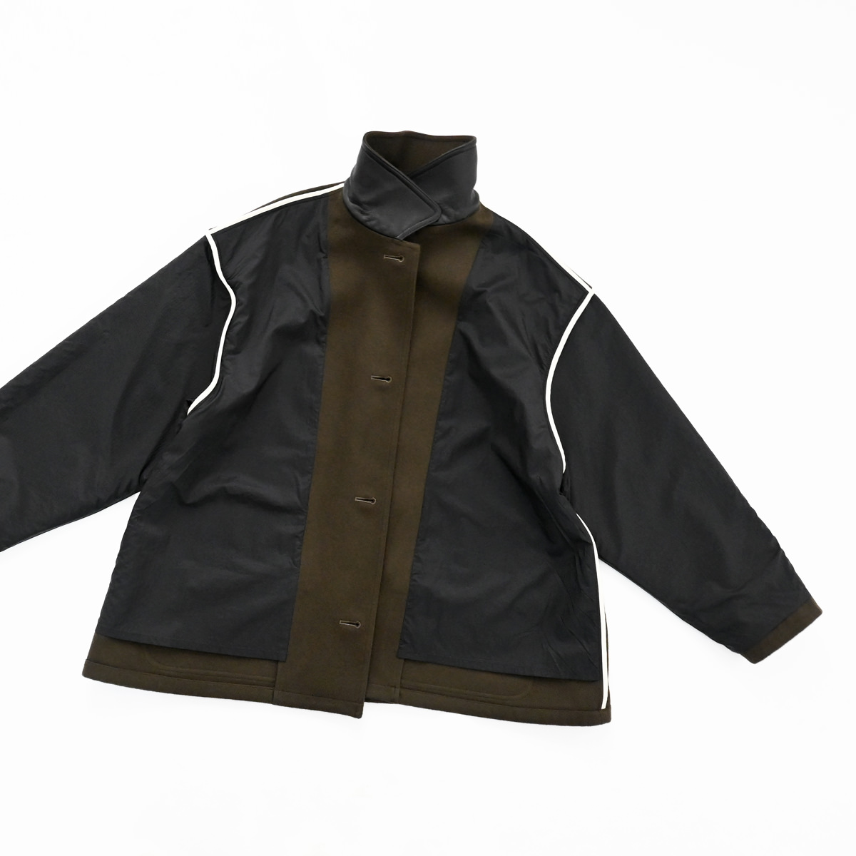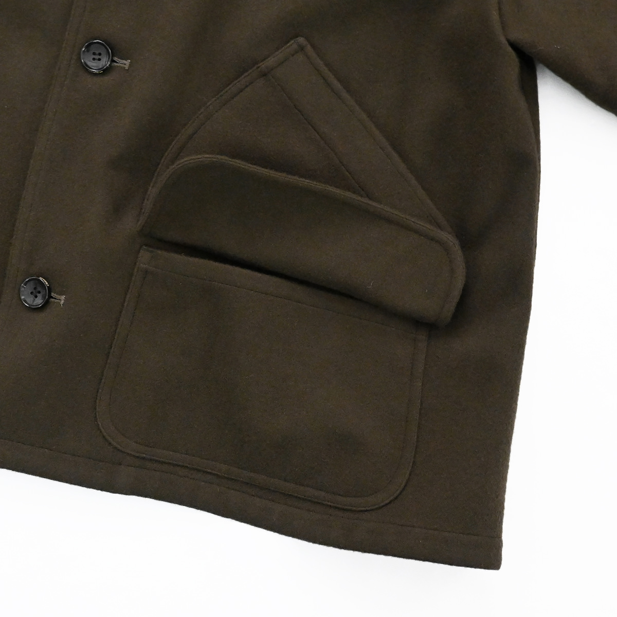 上質なウールのメルトンで仕立てたテントラインコート。