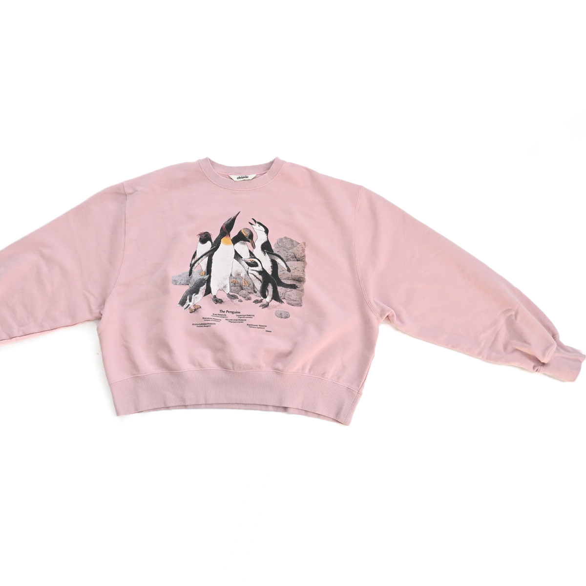 ヴィンテージライクなペンギンモチーフが目を惹く遊び心あるスウェット。