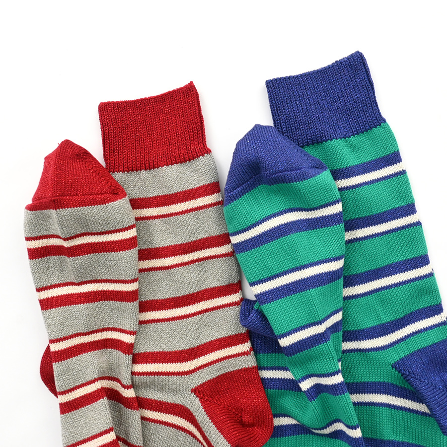 目を惹く配色のボーダーに、ラメで遊び心をプラスしました。
