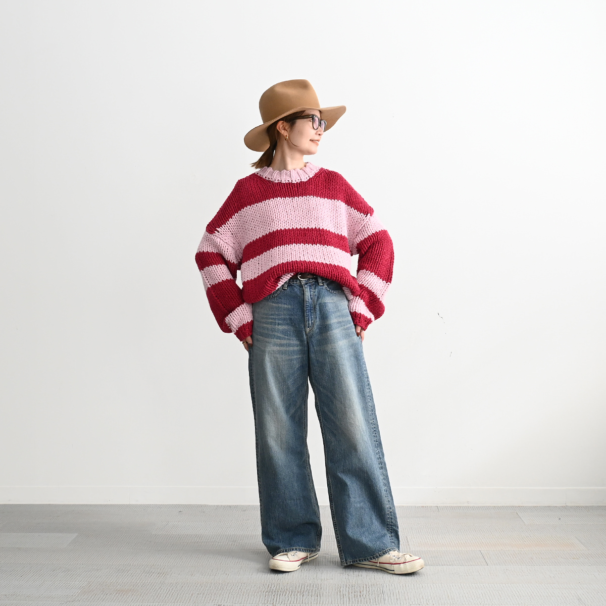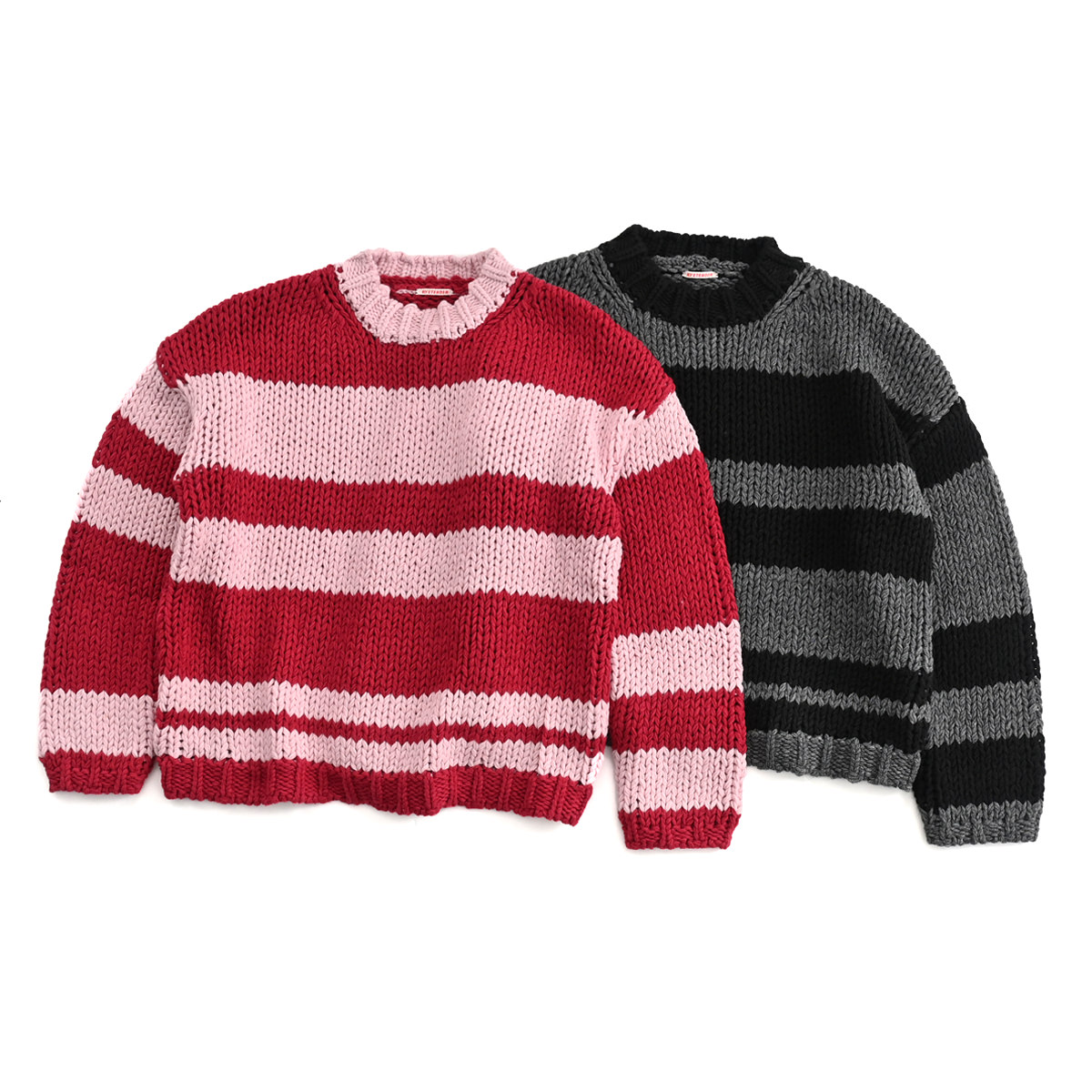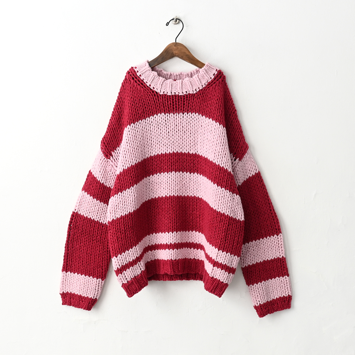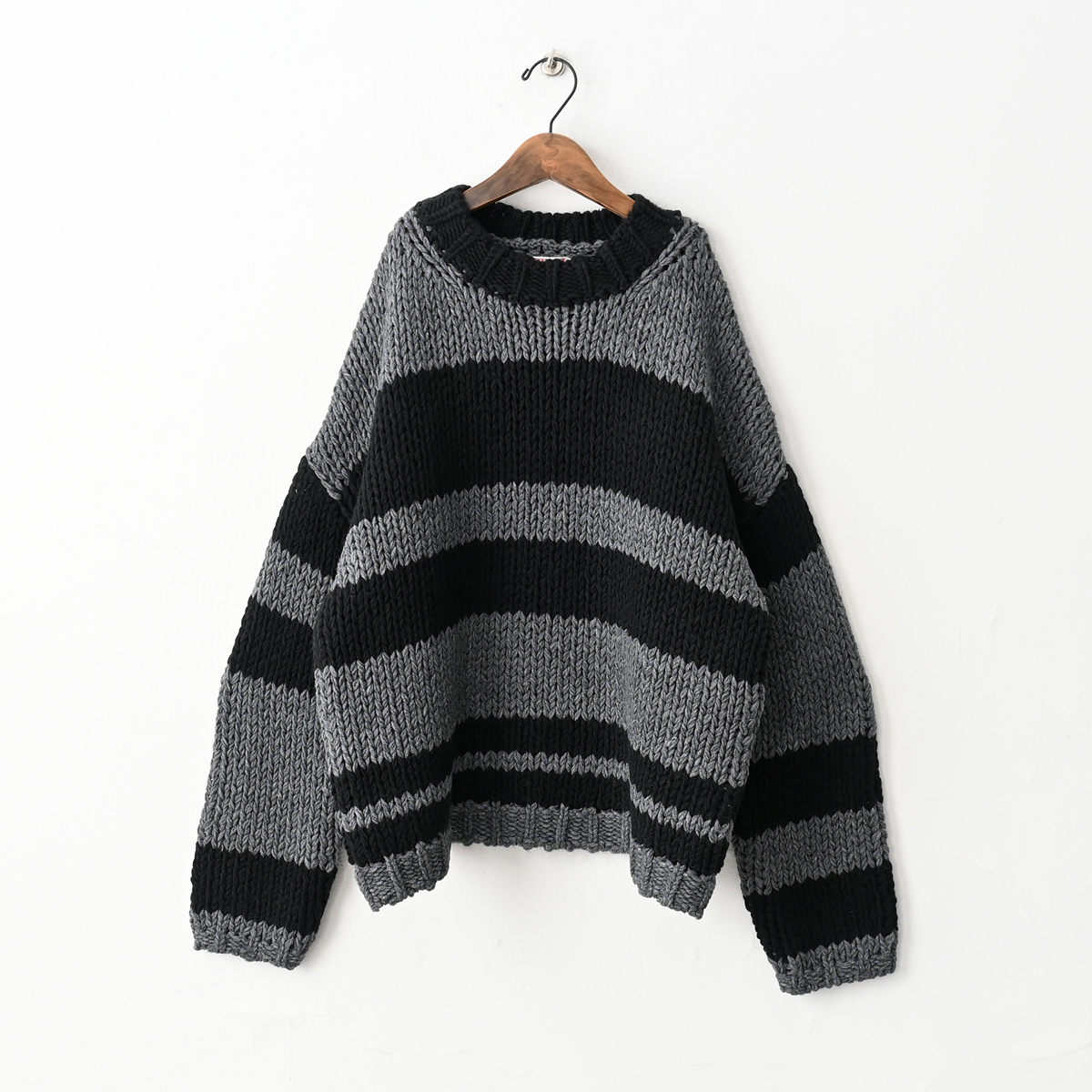 身頃・袖の太ボーダーは左右ピッチが違うランダムボーダー。