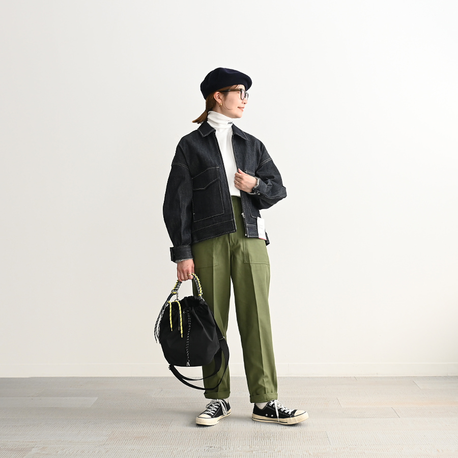 フェミニンなトップスとのコーディネートや、足元をロールアップして軽さを出したスタイルもオススメです。