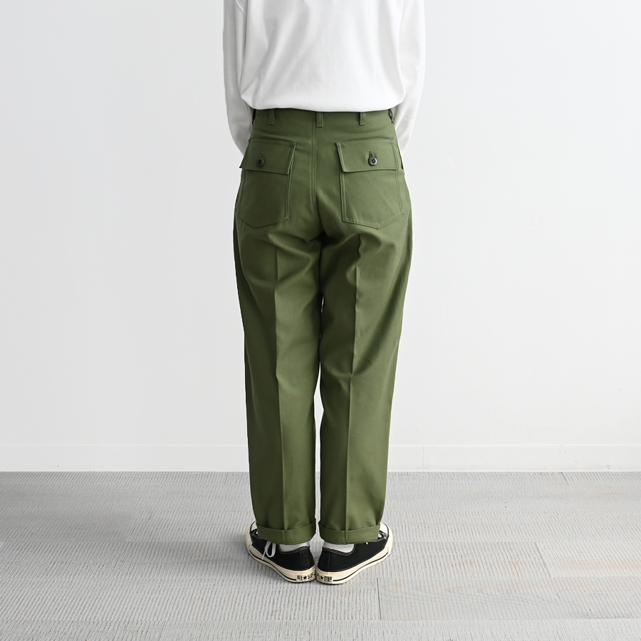 大きなパッチポケットやバックのフラップポケットなど、ベーシックなベイカーパンツのディティールはそのままに、