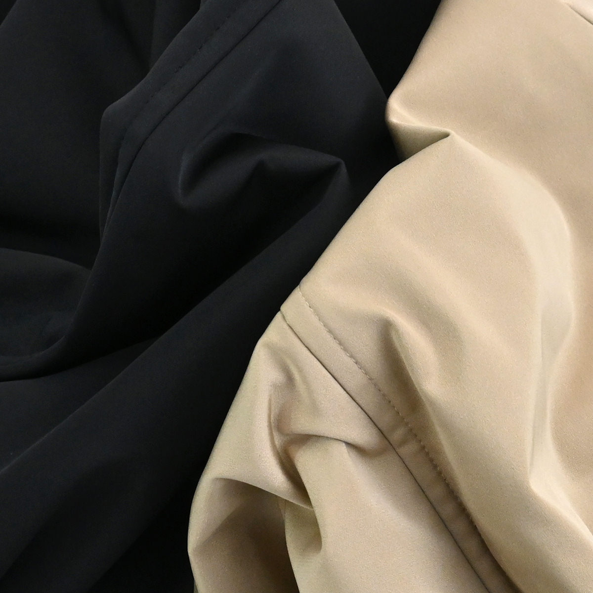 表地にストレッチ性のある、マットな光沢感のサテン生地を使用しています。