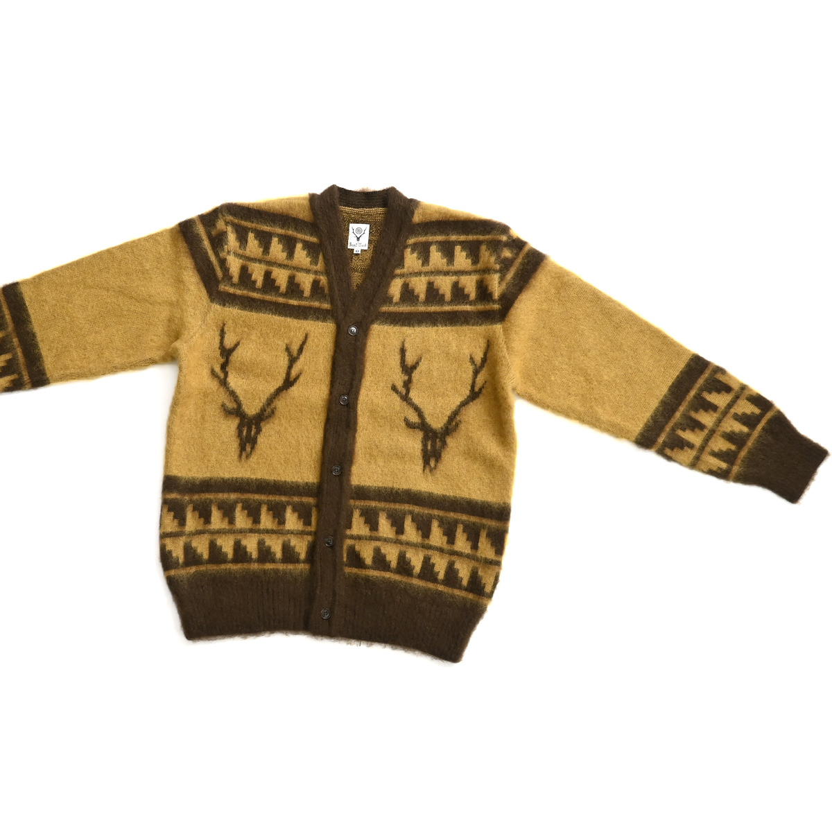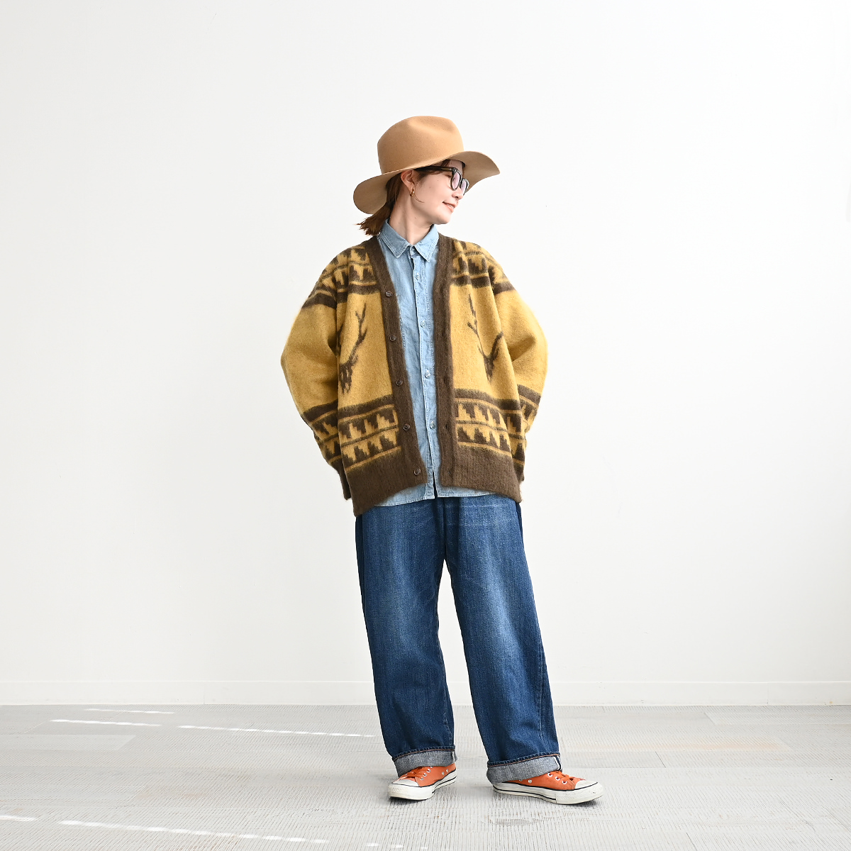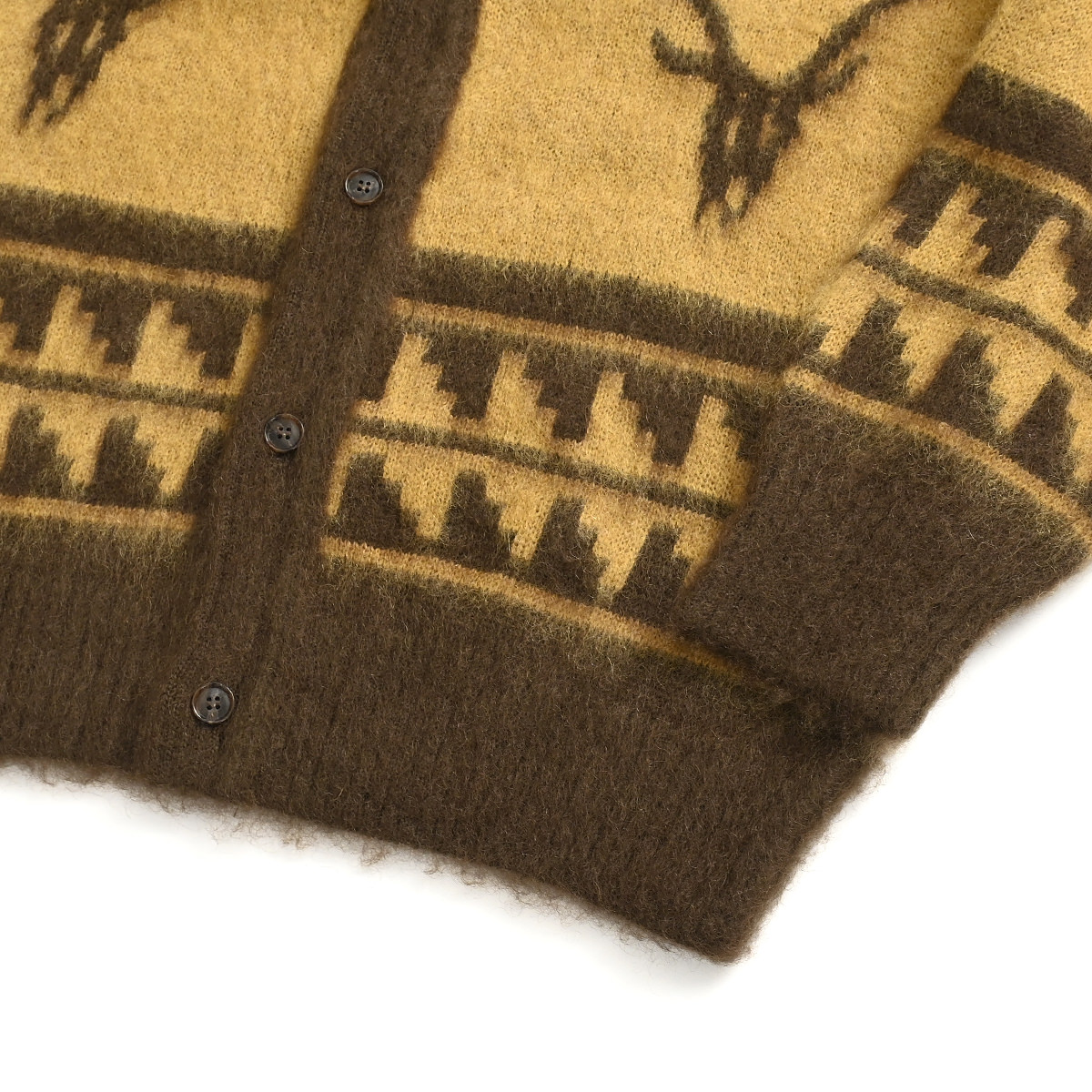 発色の良いモヘアで制作された、個性的なVネックカーディガンです。