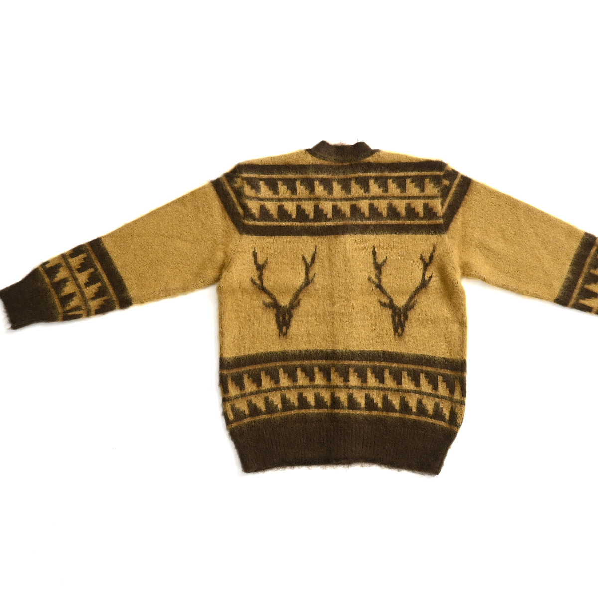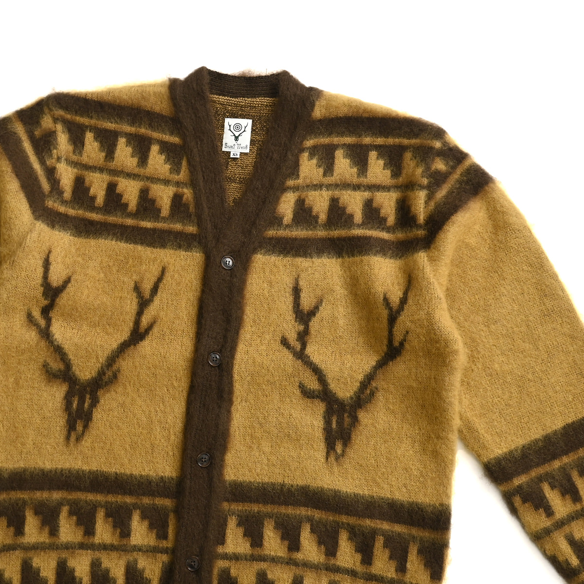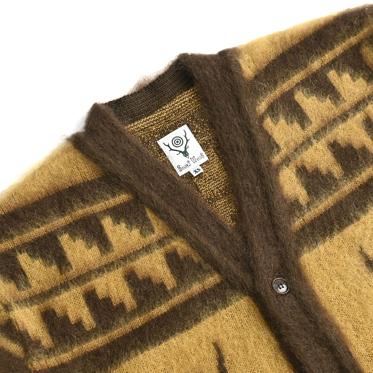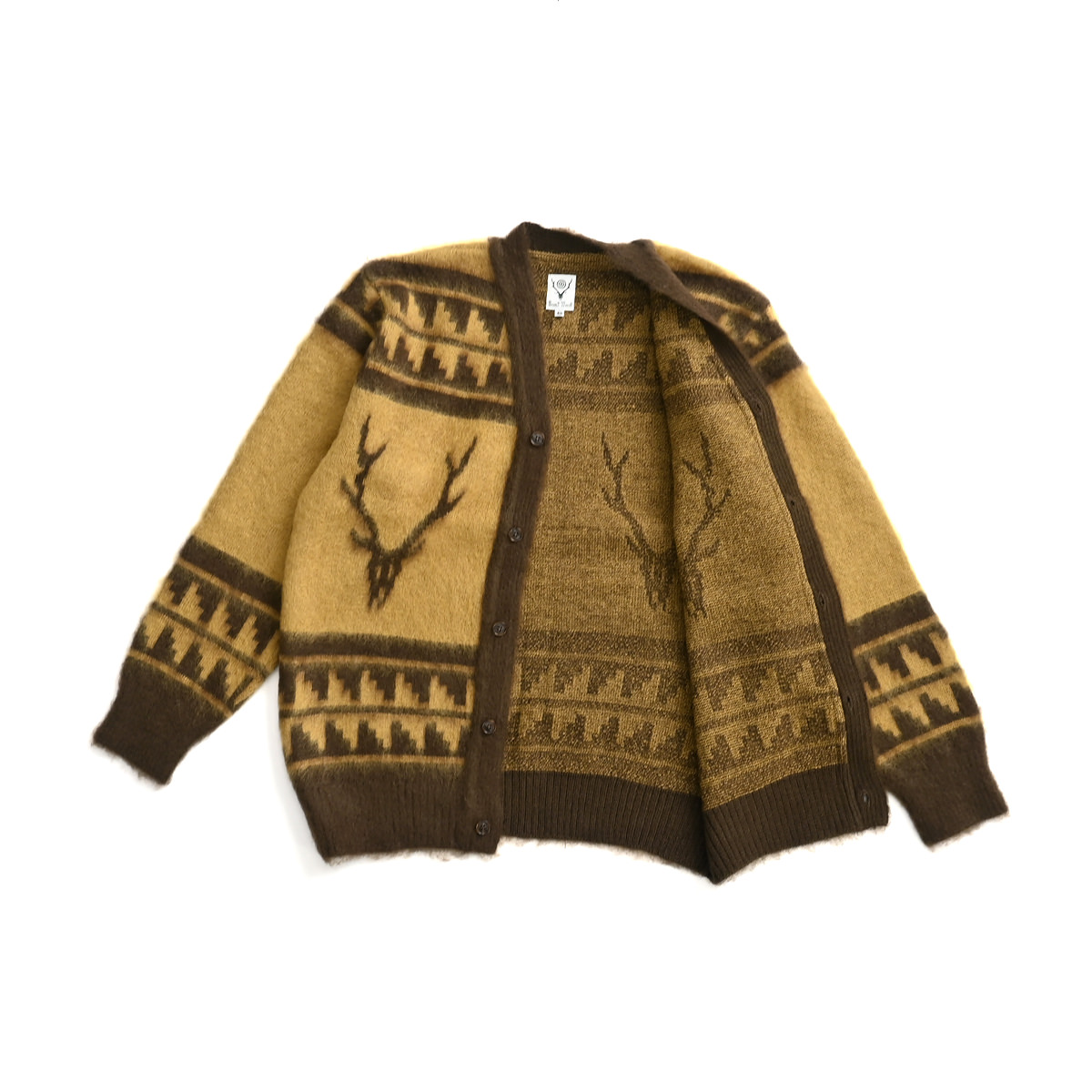 発色の良いモヘアで制作された、個性的なVネックカーディガンです。