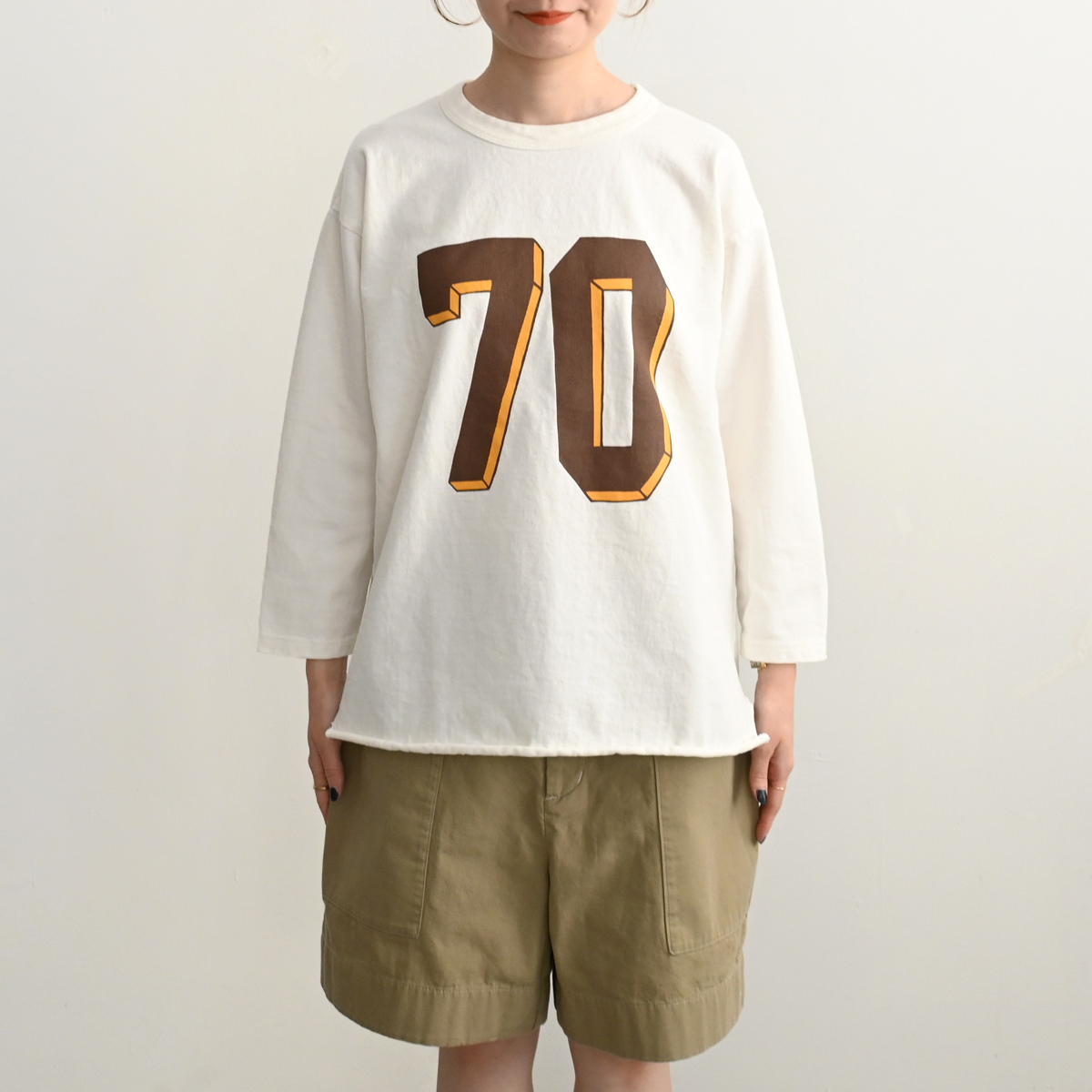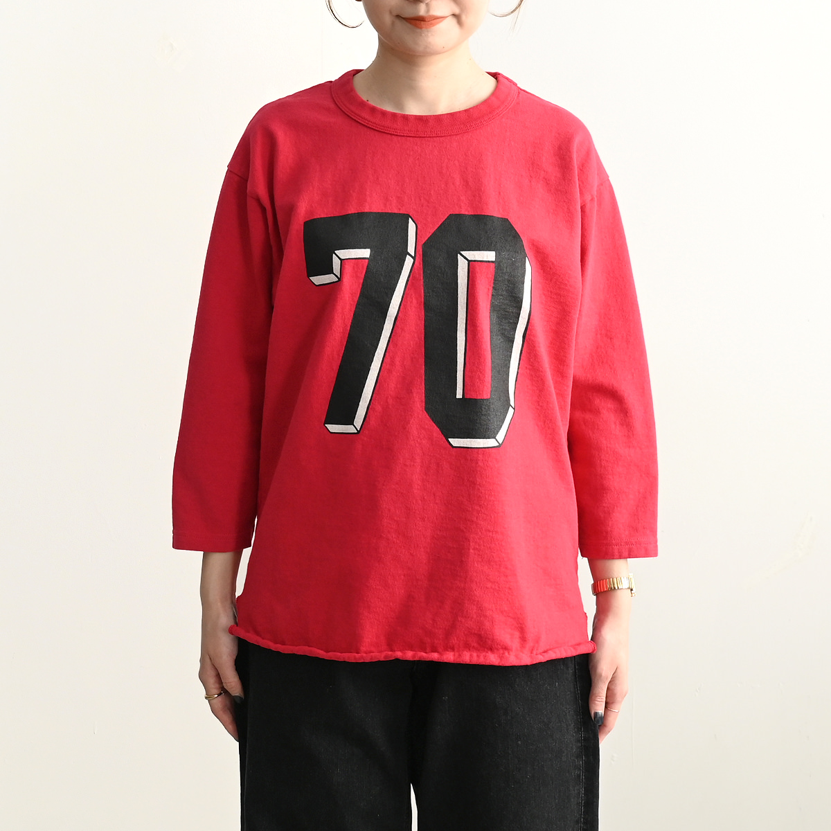 ベースボールTEEの特徴的な袖の切り替えしデザインも忠実にデザインに落とし込んだ1着。