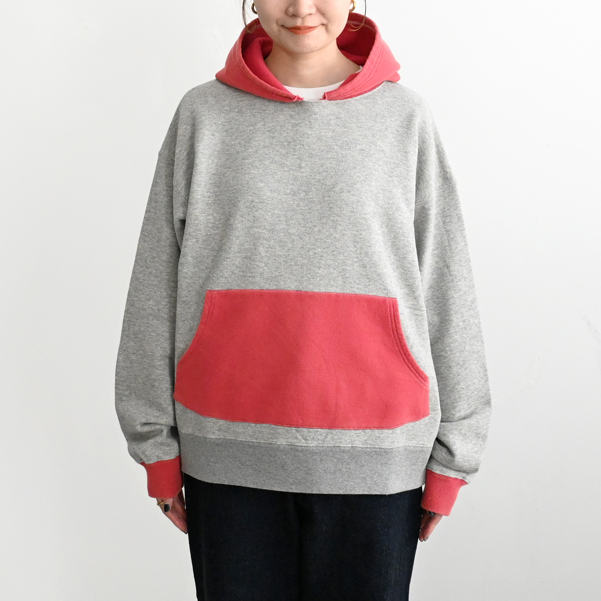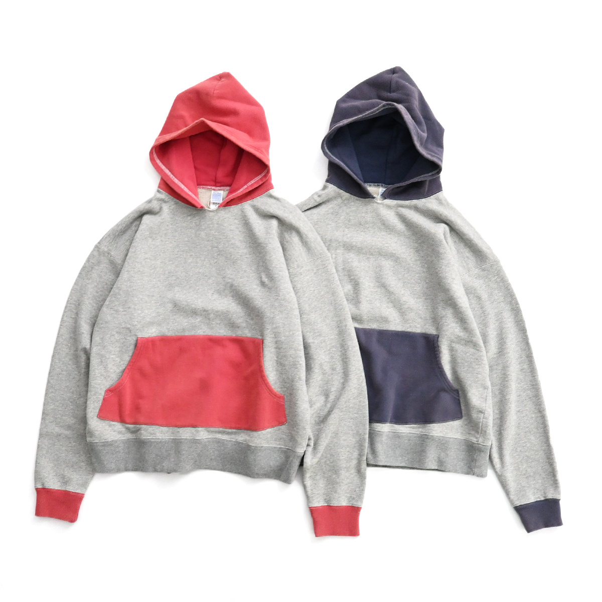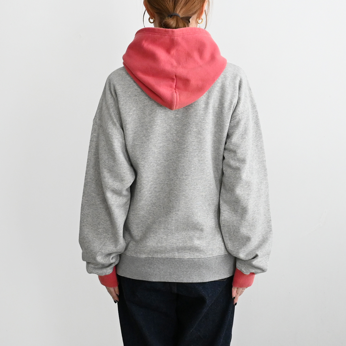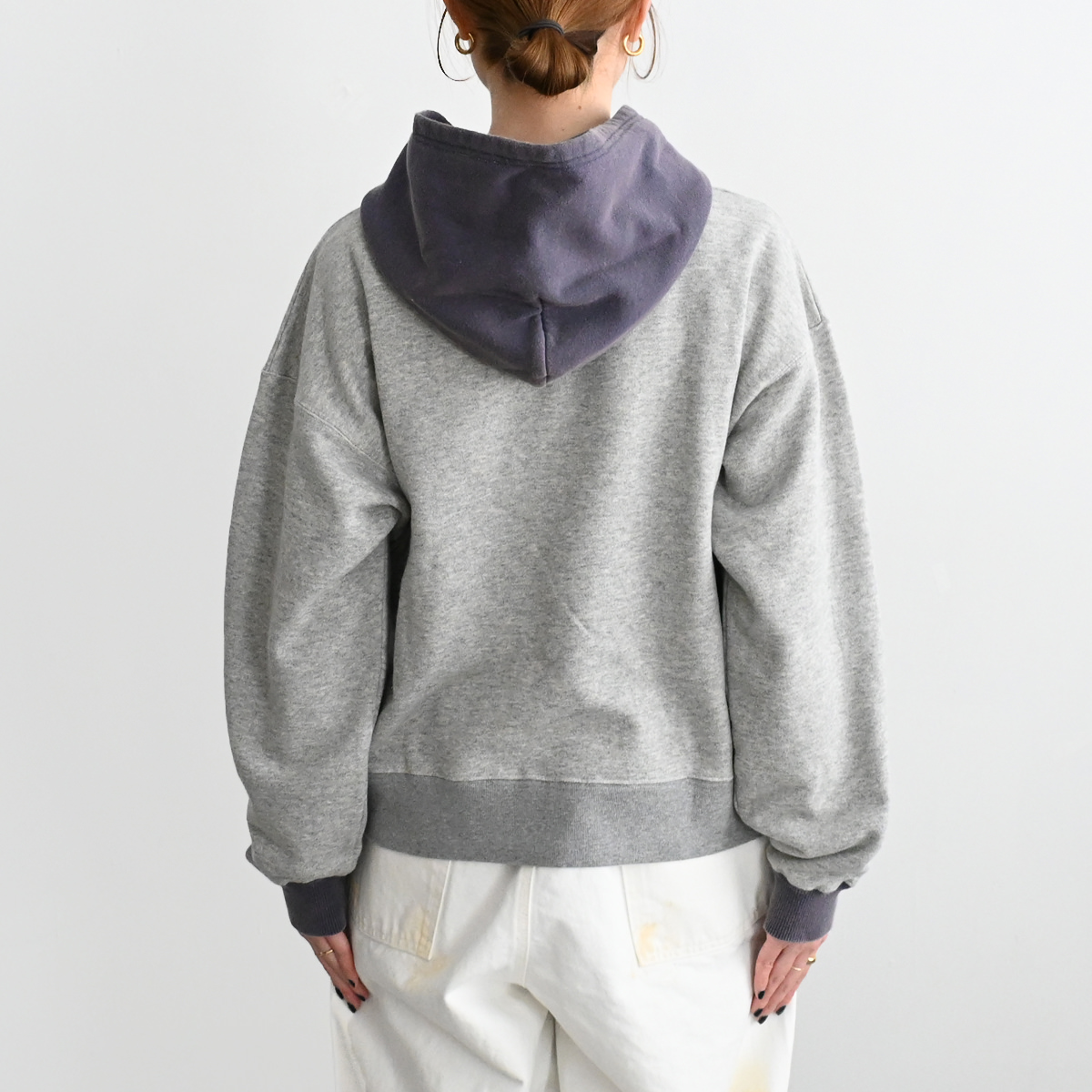 50s vintage 2tone hoodieがデザインソースの丈が短く身幅が広めのボックスシルエット。