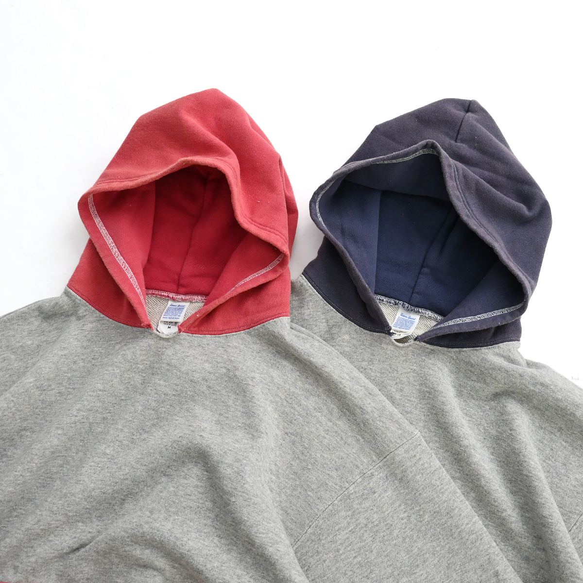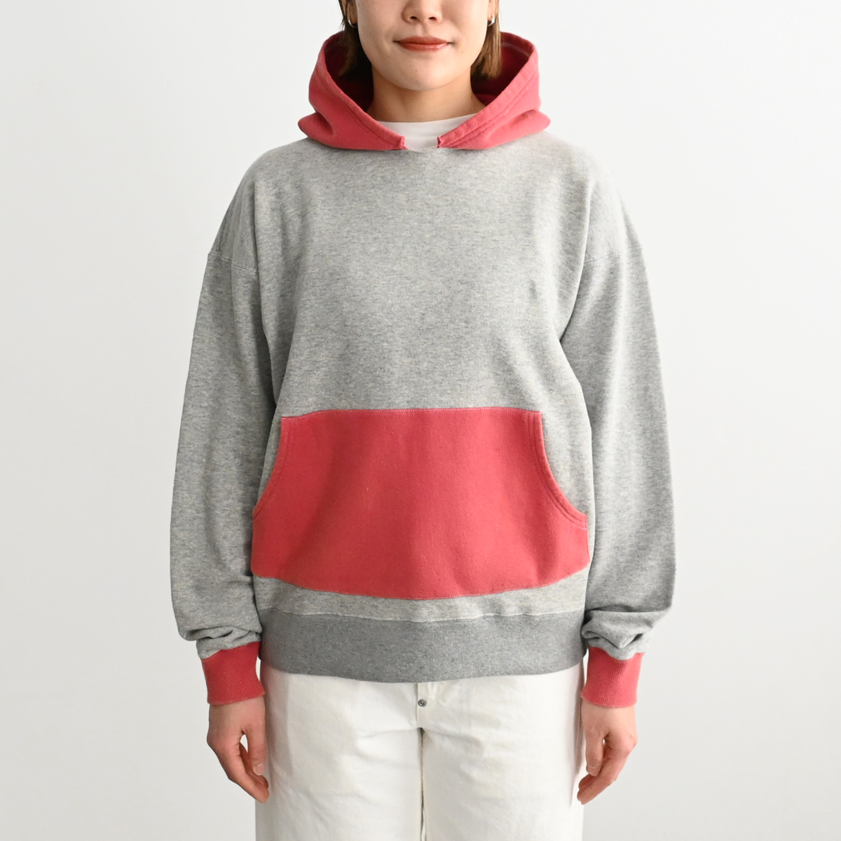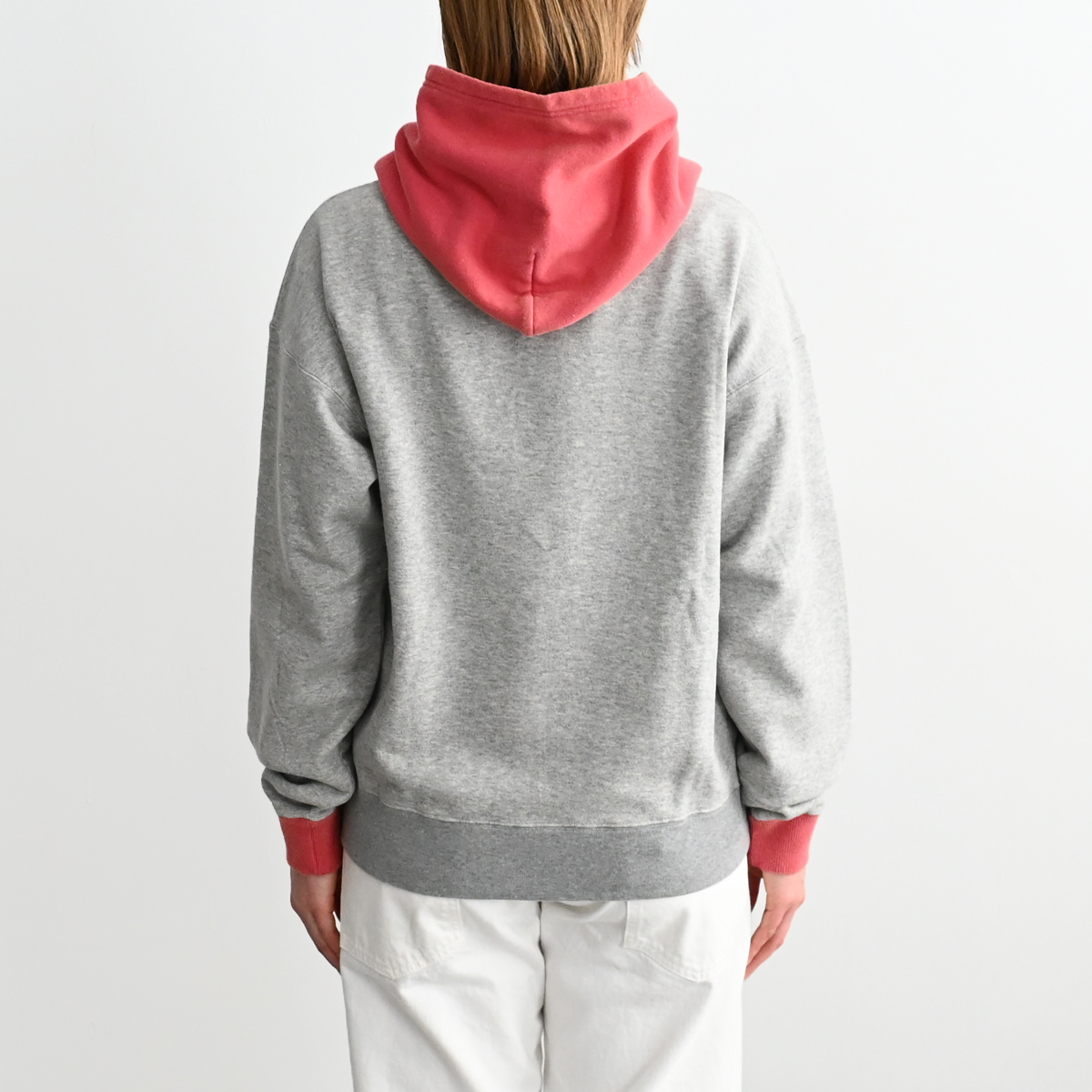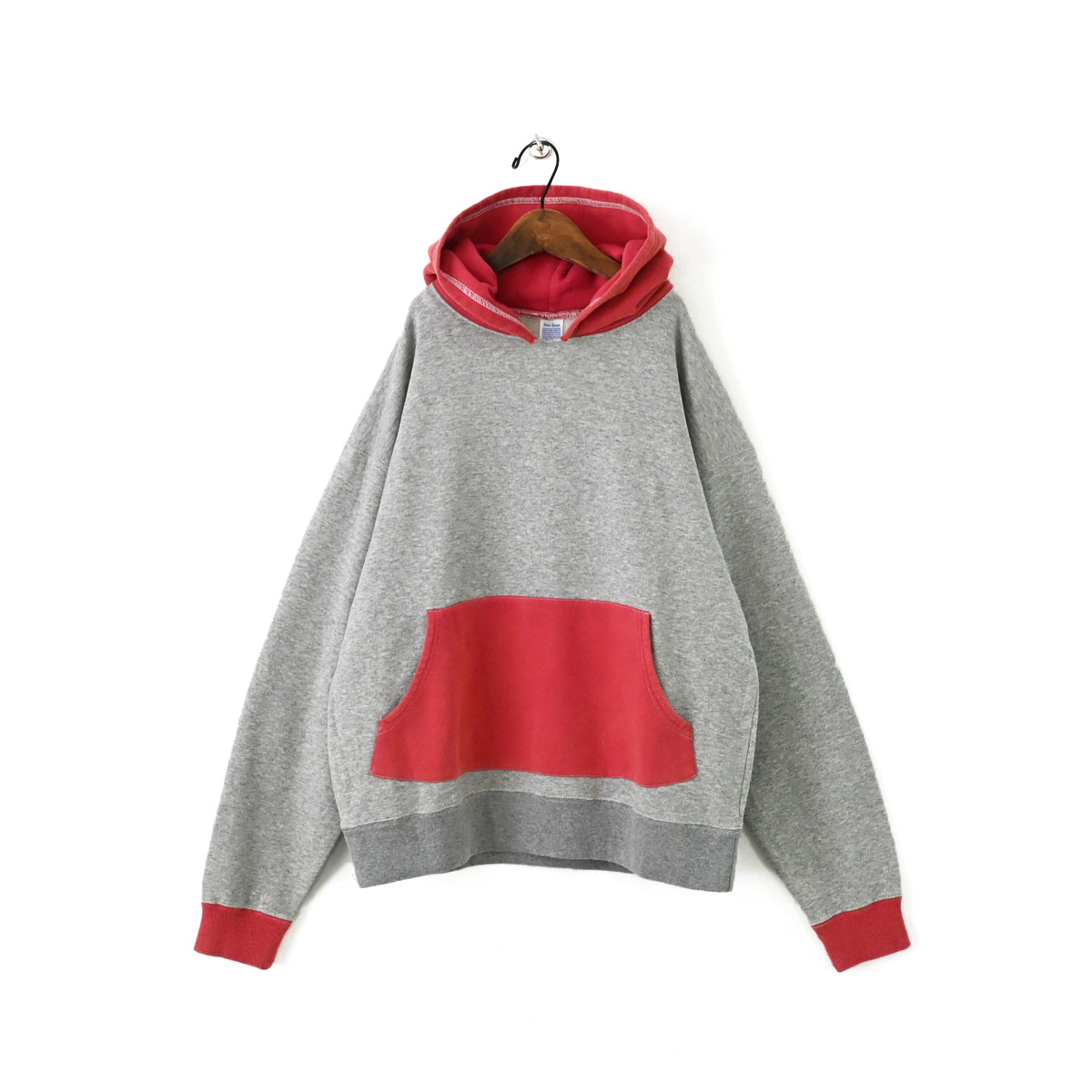50s vintage 2tone hoodieがデザインソースの丈が短く身幅が広めのボックスシルエット。