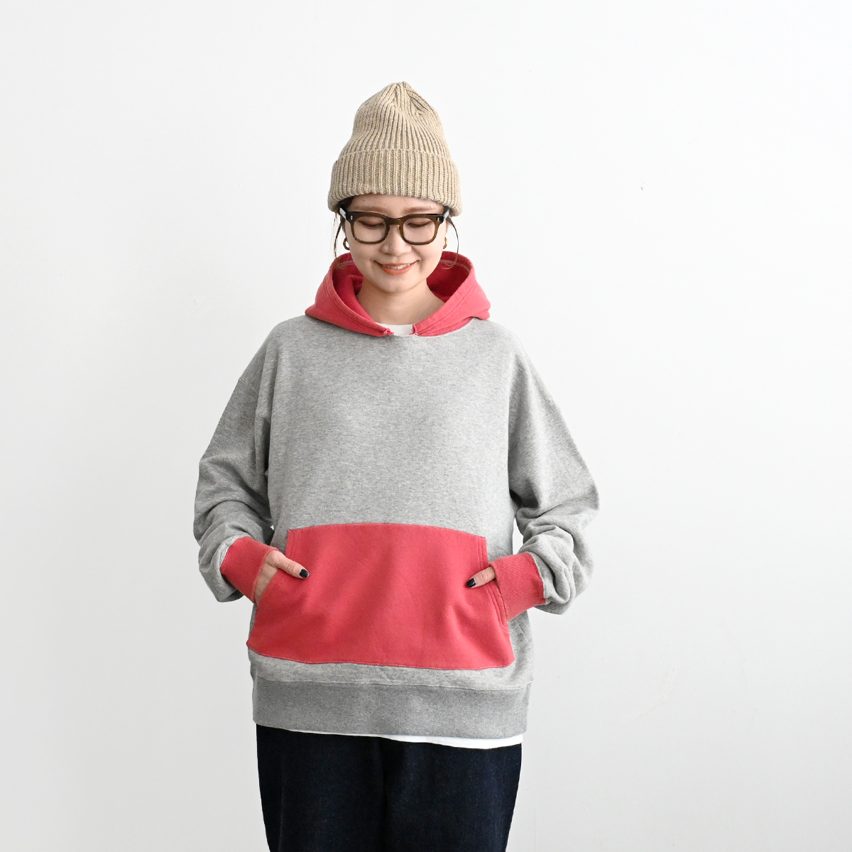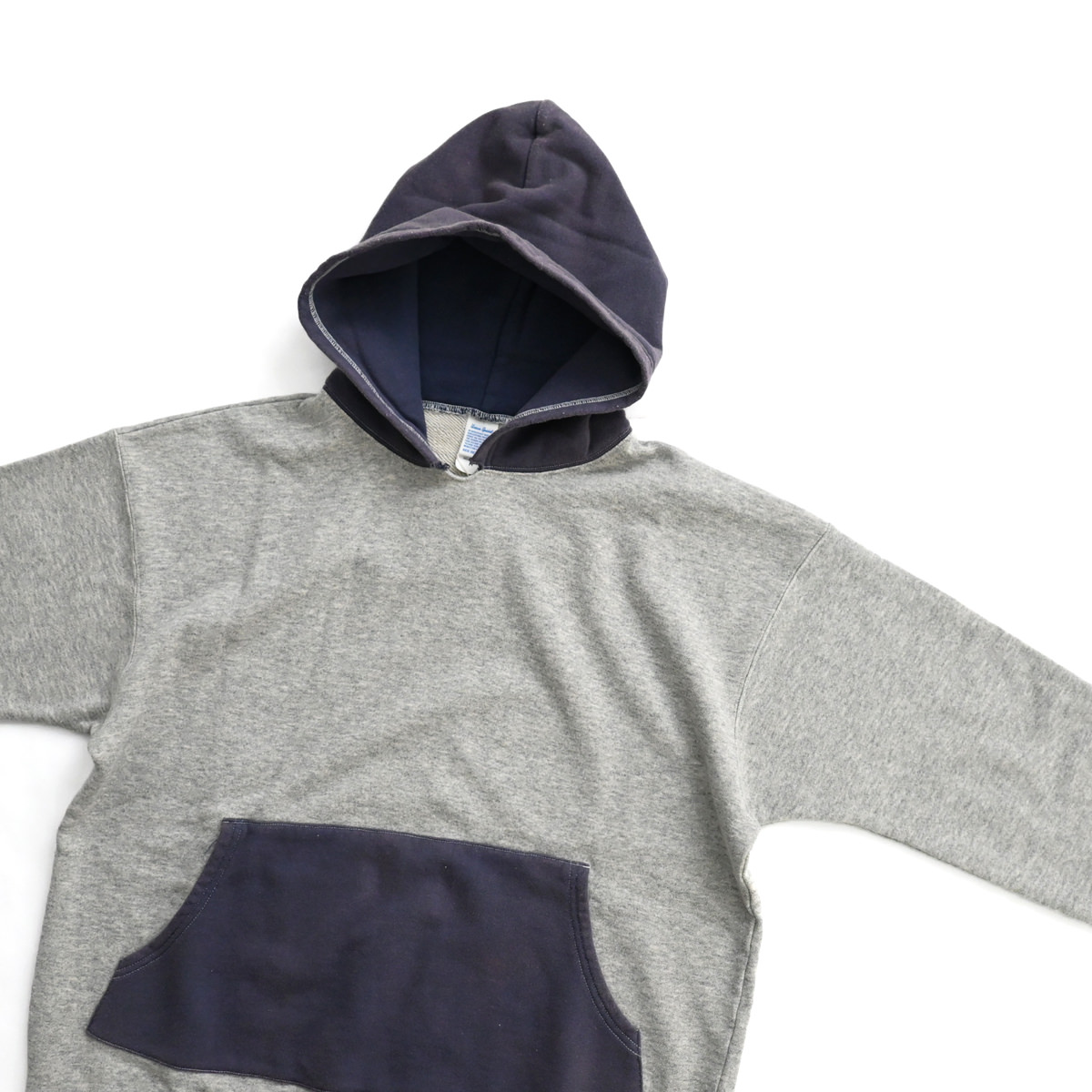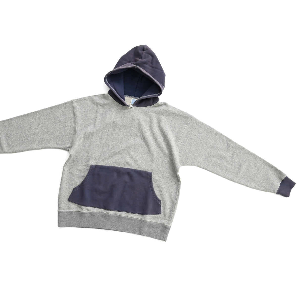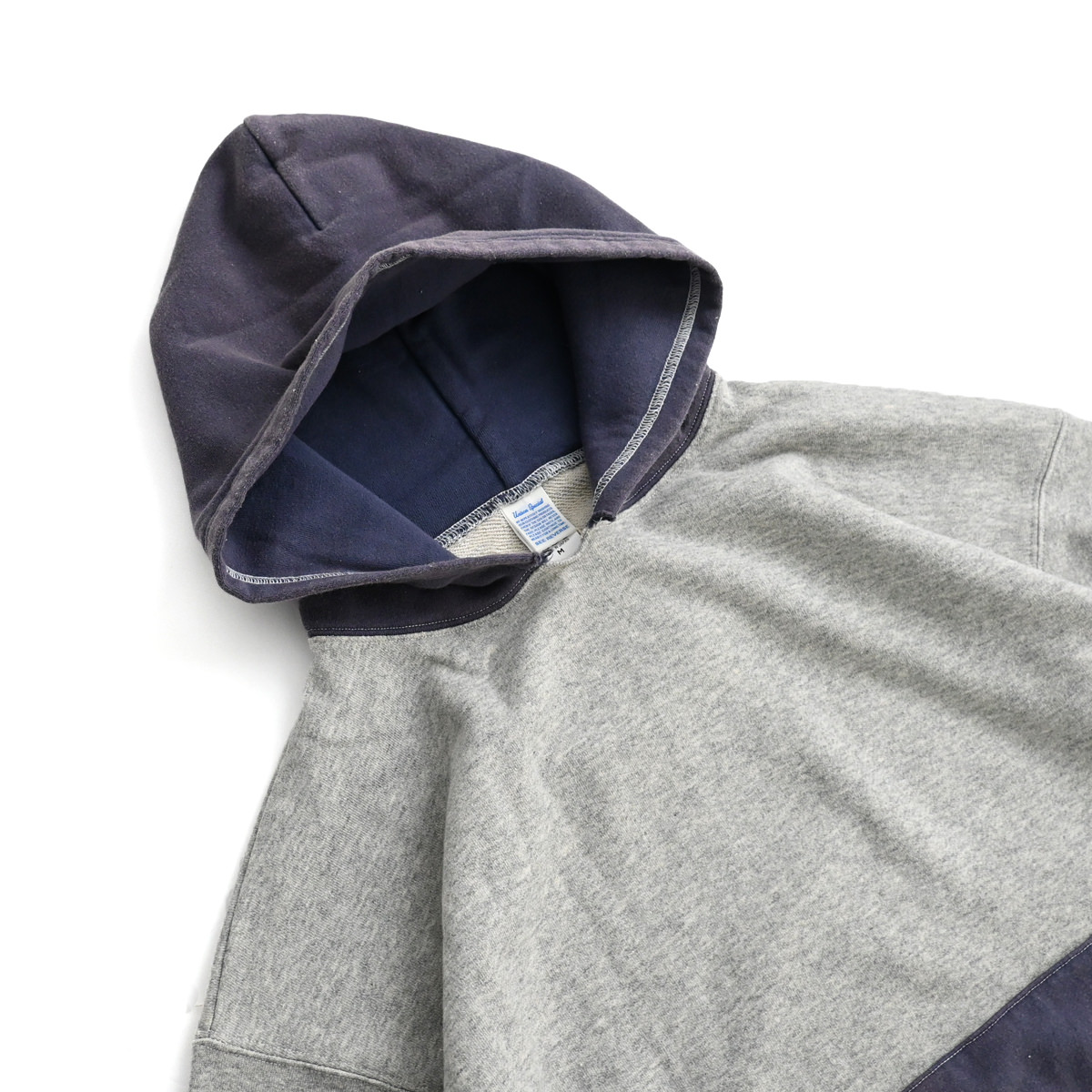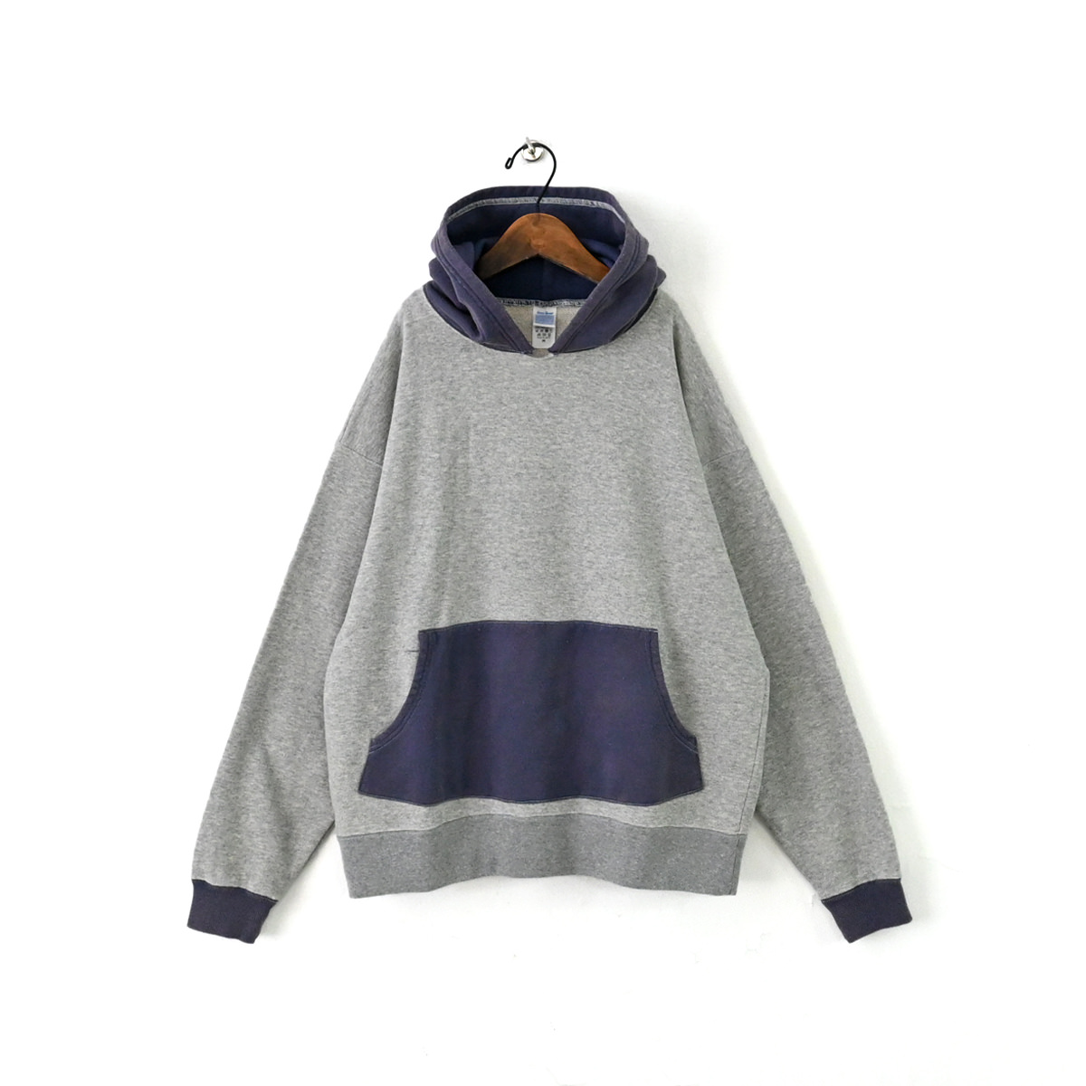 50s vintage 2tone hoodieがデザインソースの丈が短く身幅が広めのボックスシルエット。