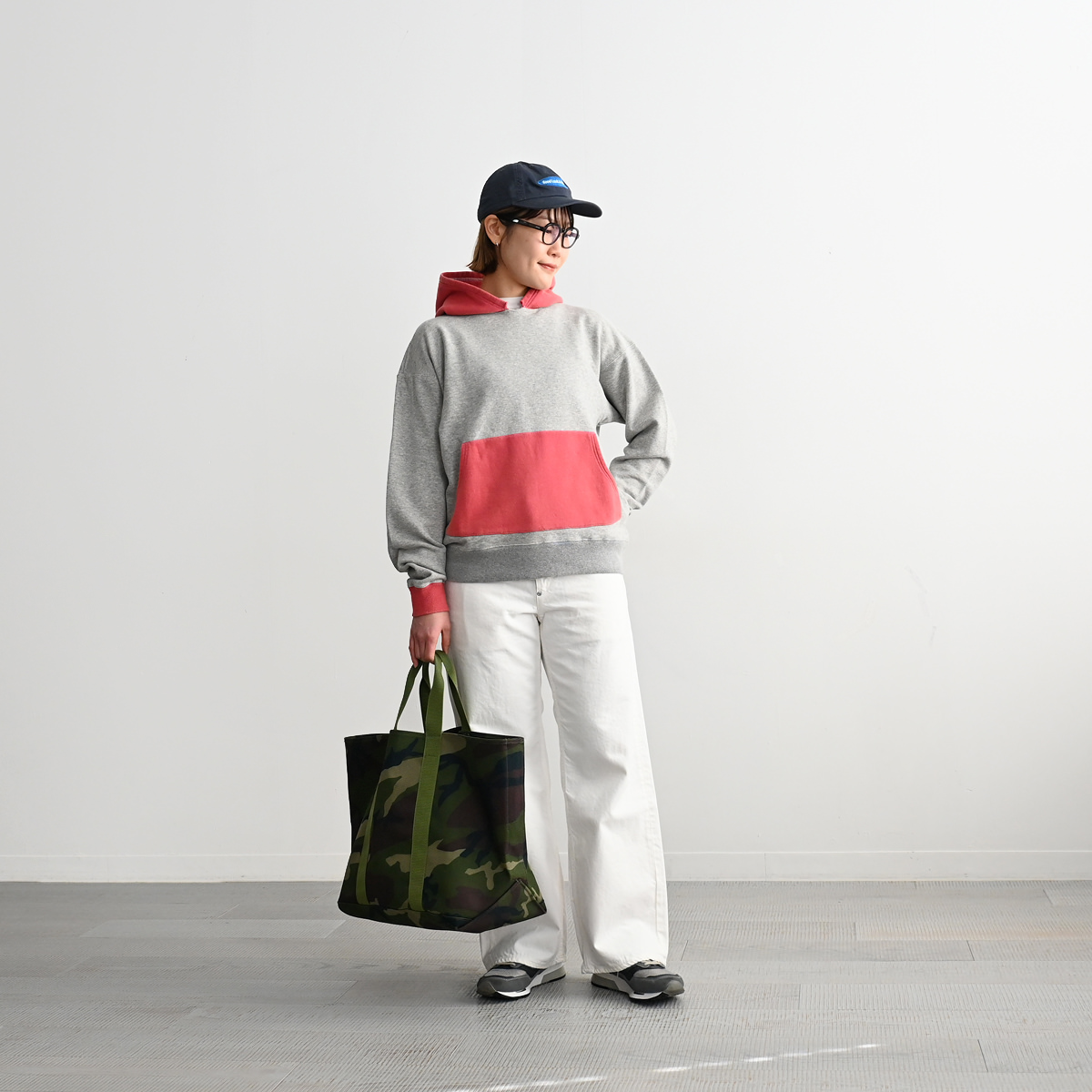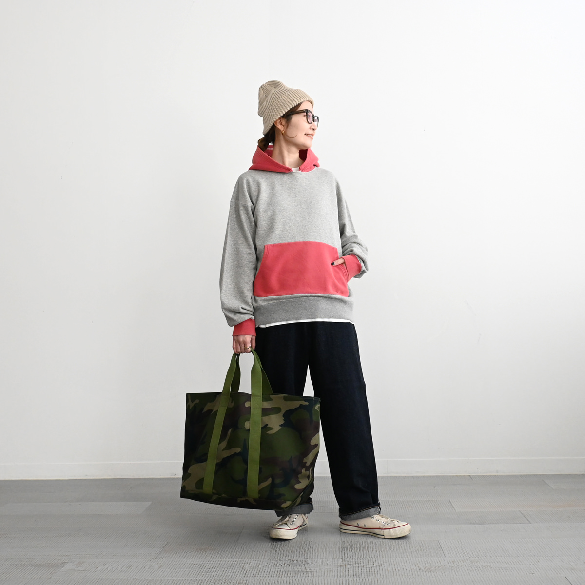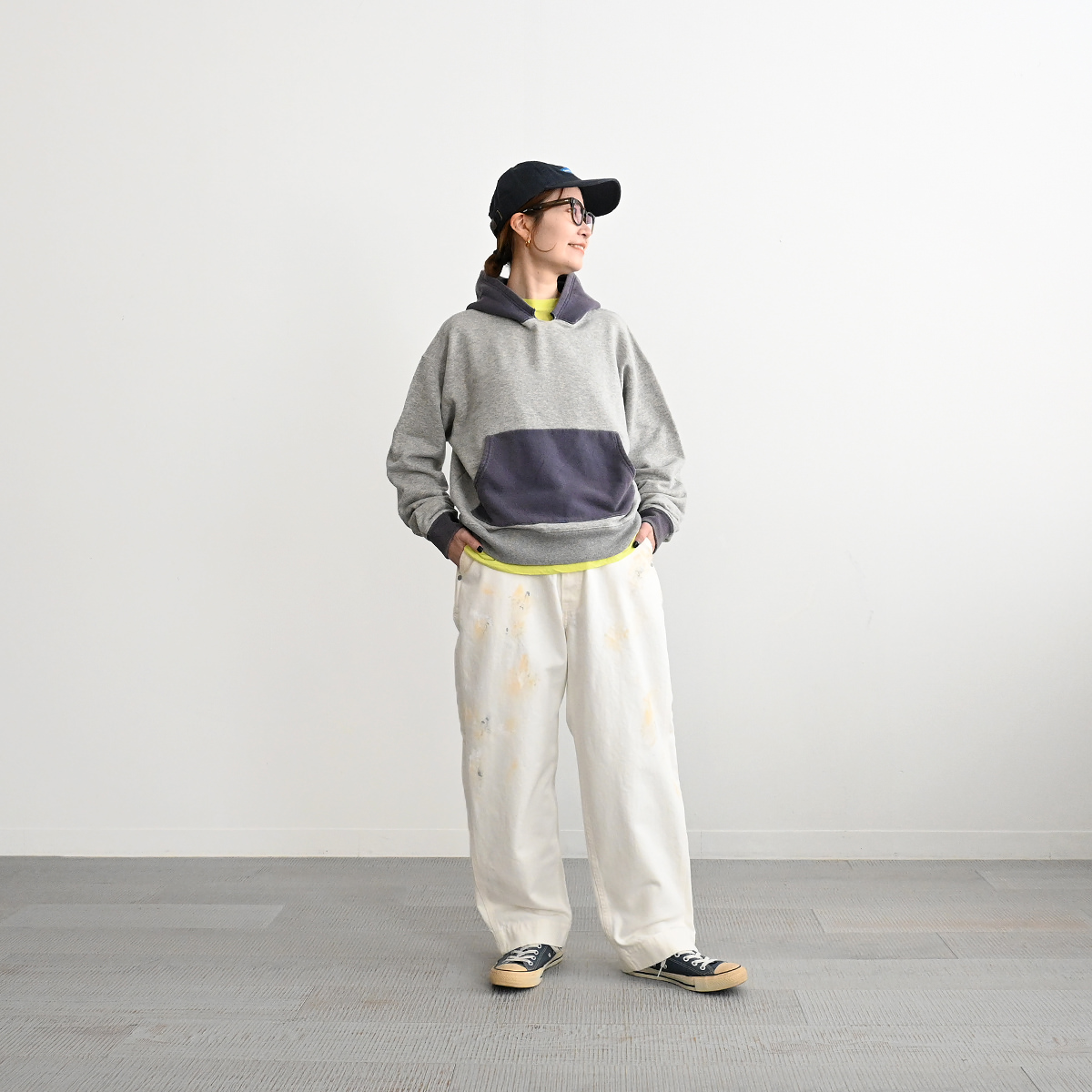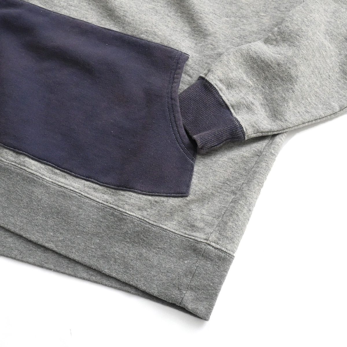 50s vintage 2tone hoodieがデザインソースの丈が短く身幅が広めのボックスシルエット。