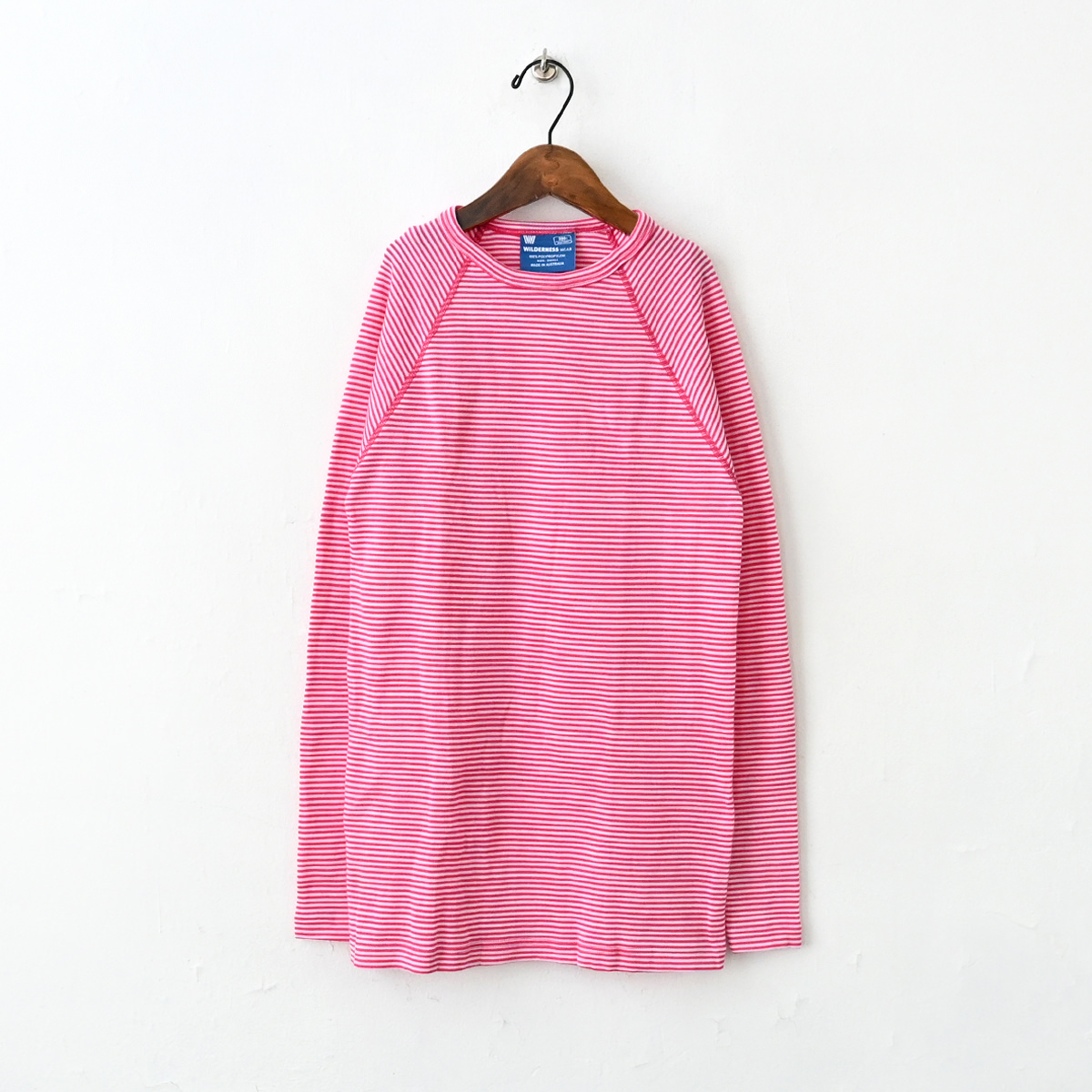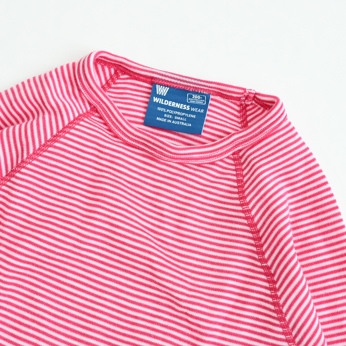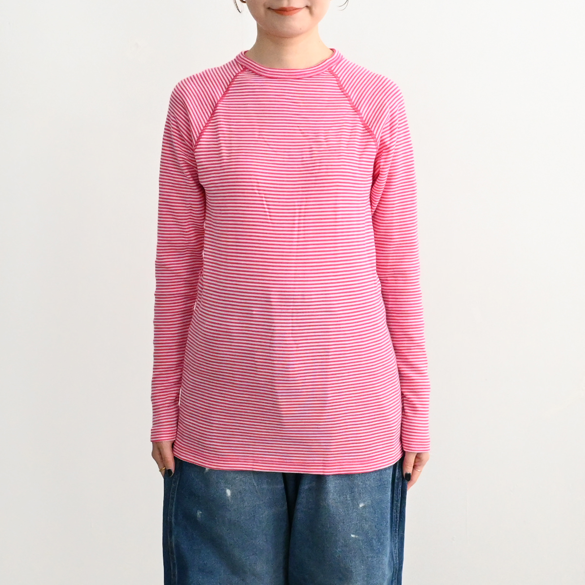 ショーラー社のウルトラファインポリプロピレンを使用したロングラグランスリーブクルーストライプ。