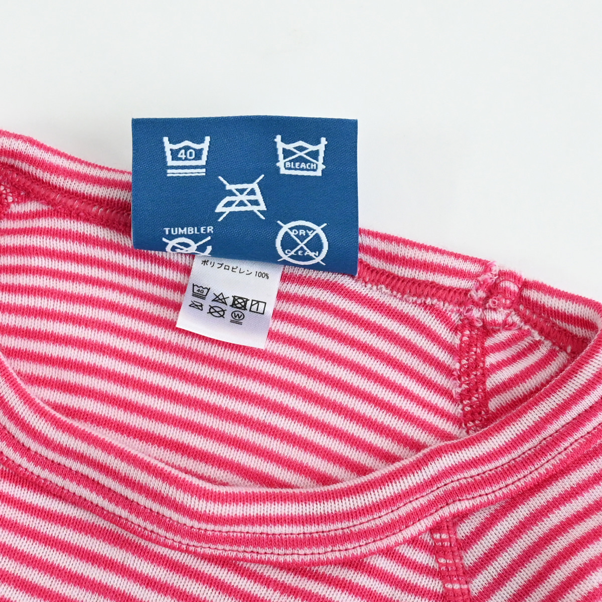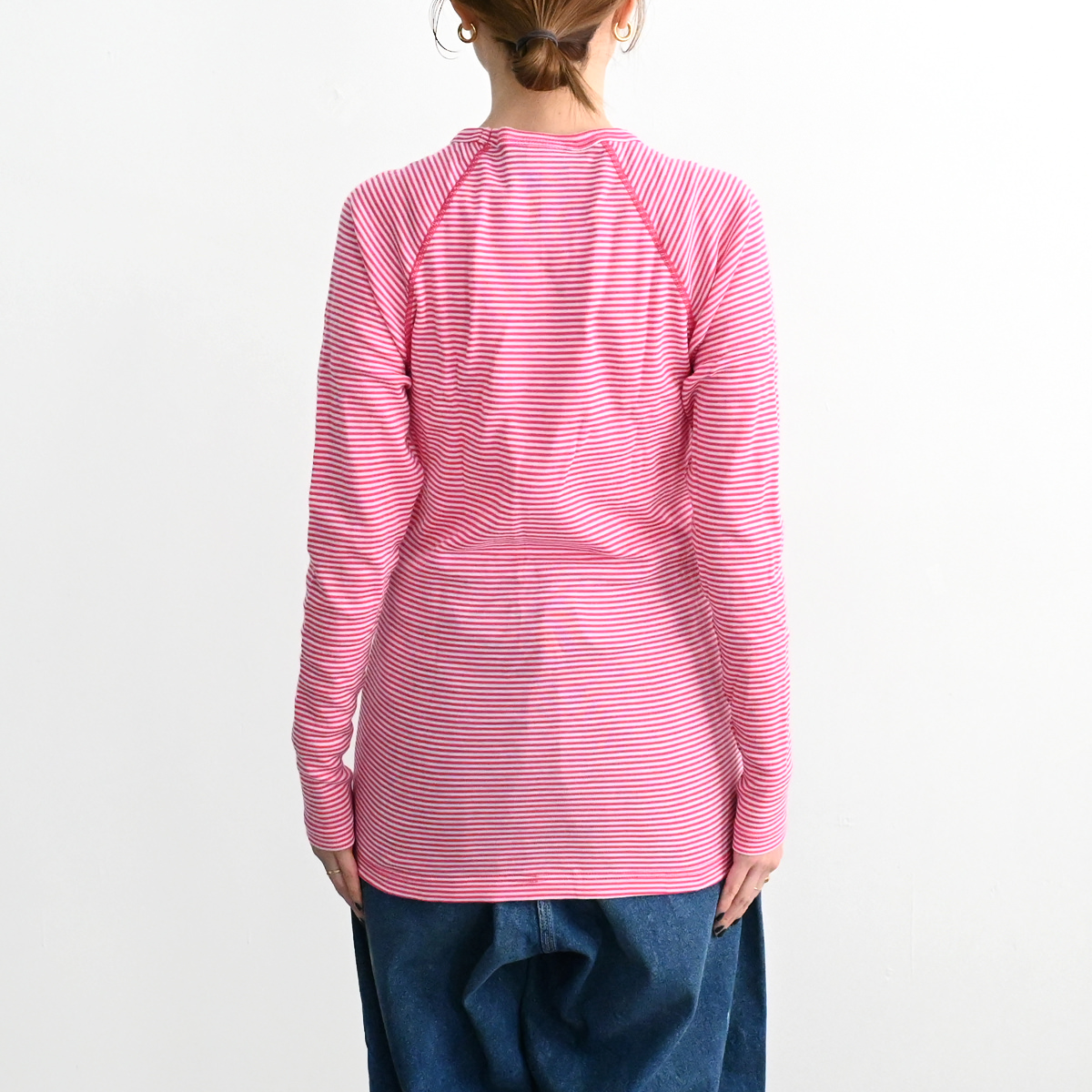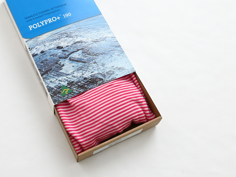 ショーラー社のウルトラファインポリプロピレンを使用したロングラグランスリーブクルーストライプ。
