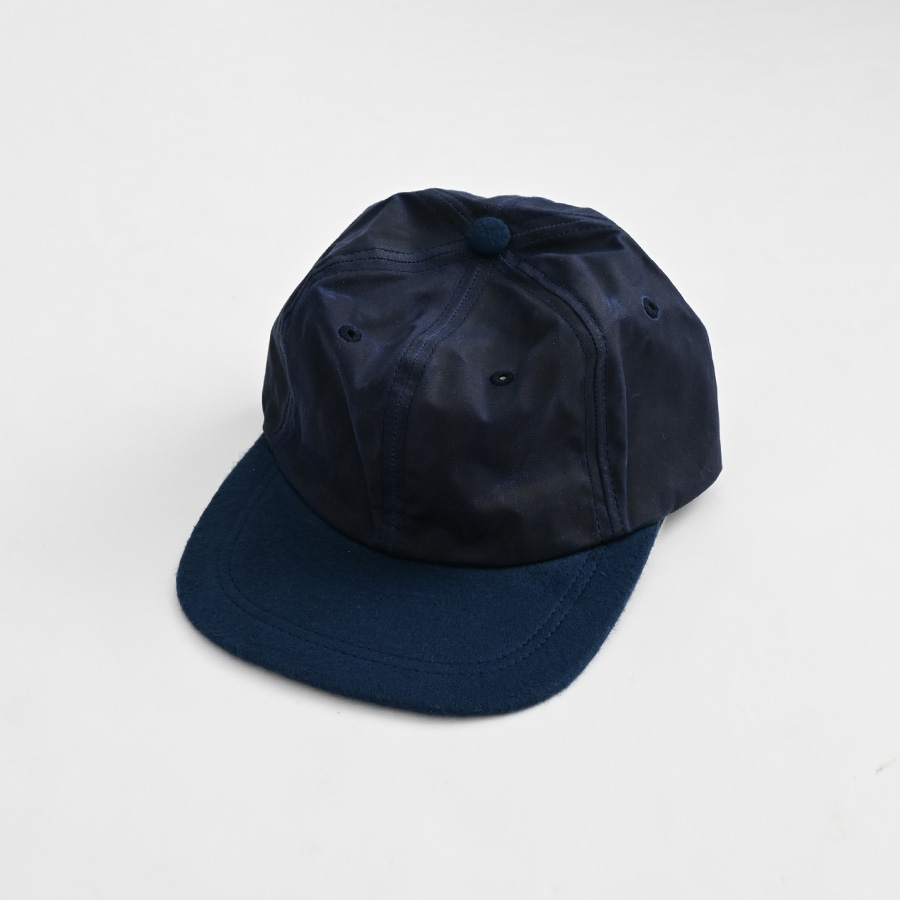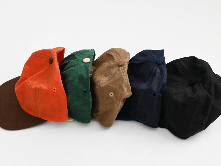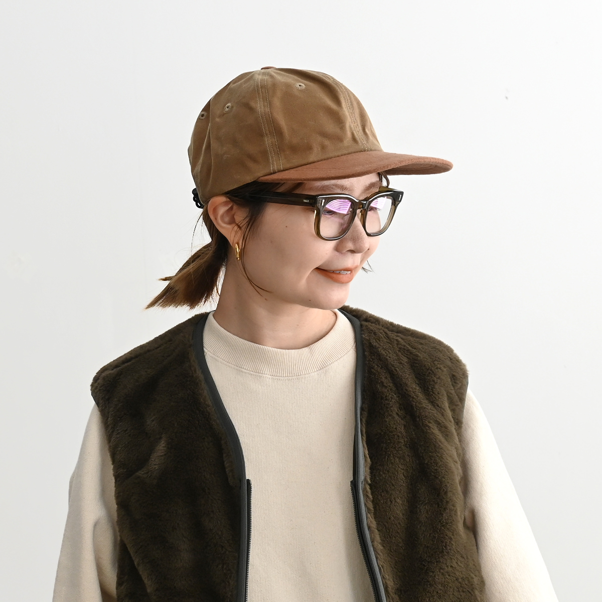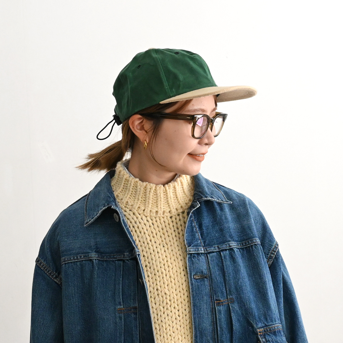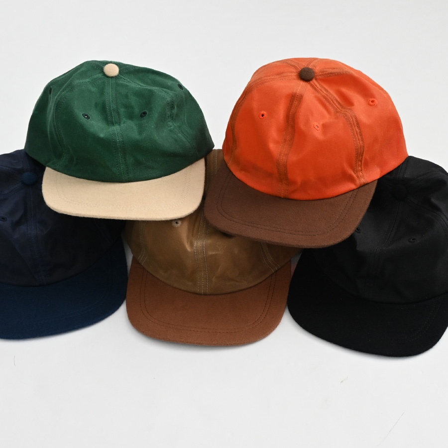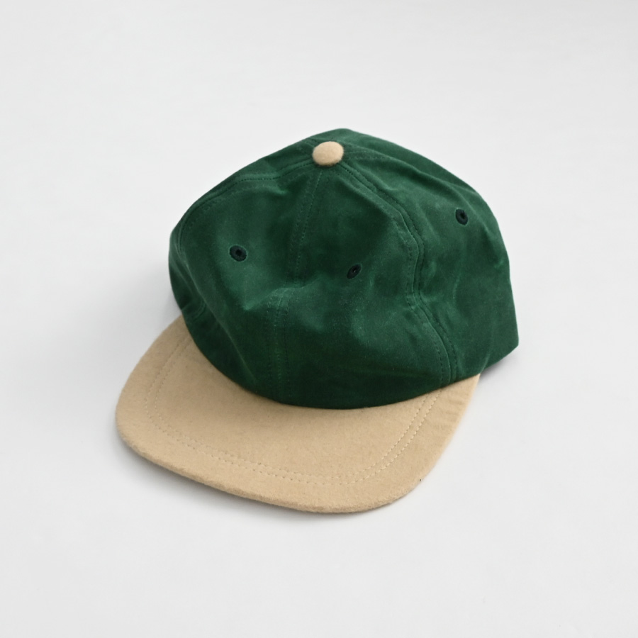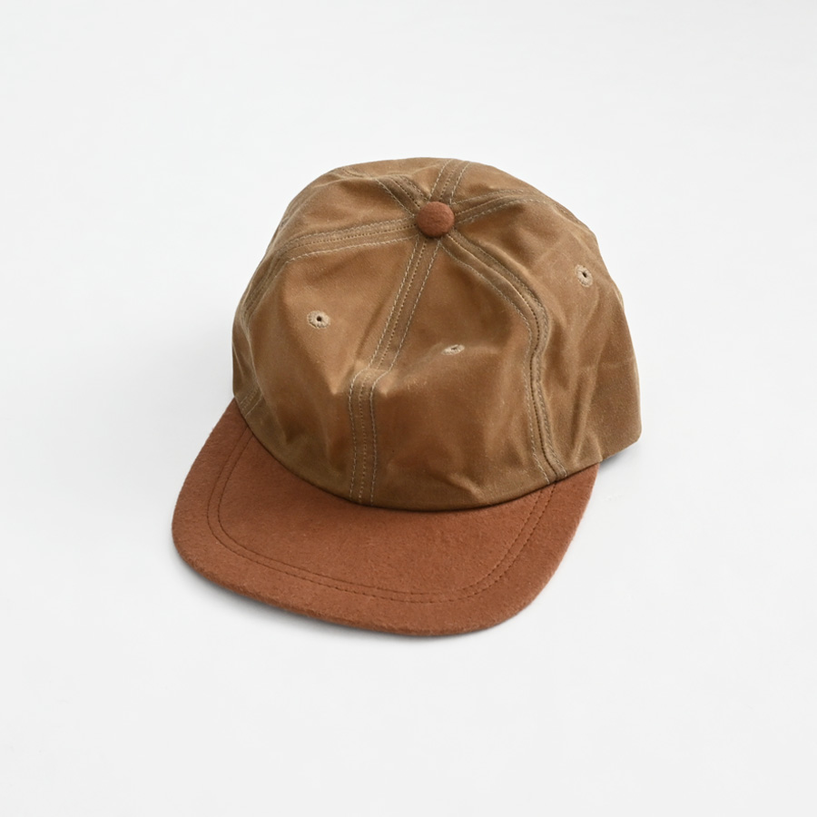 ワックス加工が施されたコットン生地「TEXWAX」と綿フランネル生地のツバと組み合わせたツートンキャップ。