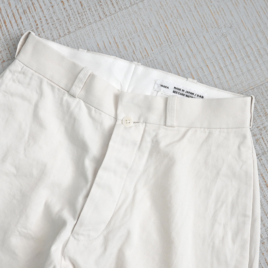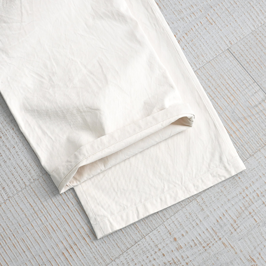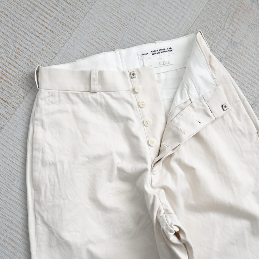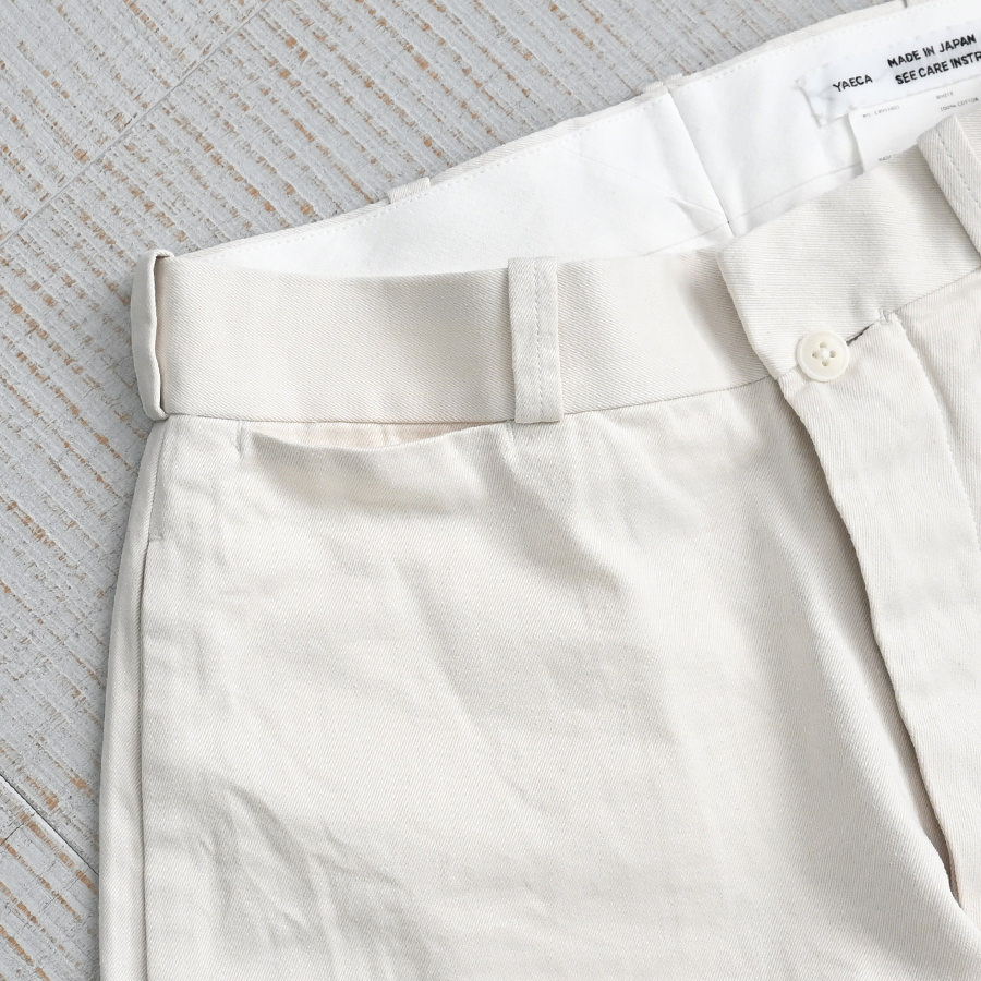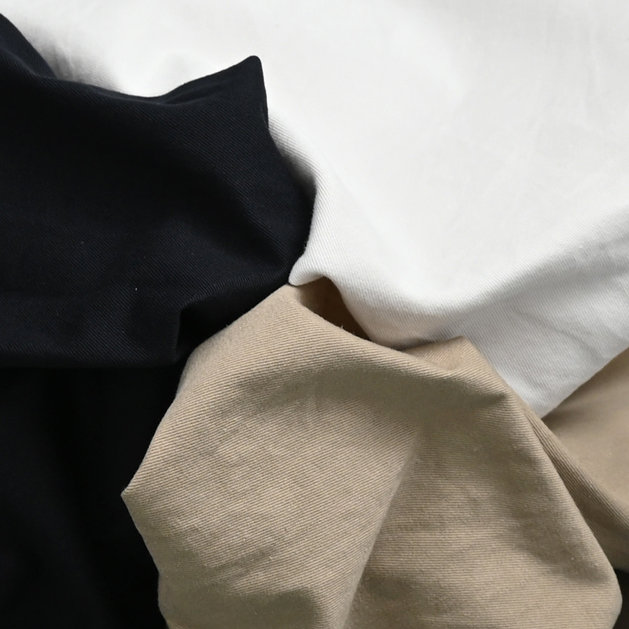一般的なチノクロスのような単糸ではなく、双糸で高密度に織り上げた生地を使用しています。