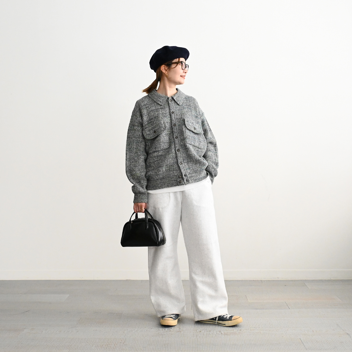 手編み、機械編みで生み出す、素材にこだわった、シンプルで飽きの来ないニットは、ピュアで優しく、どこかのんびりとした、ゆるやかな雰囲気を持っている。