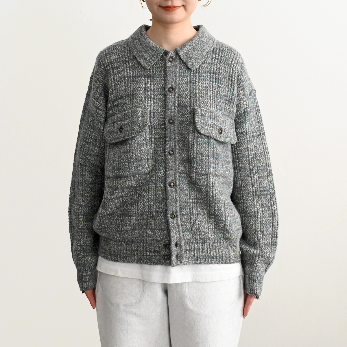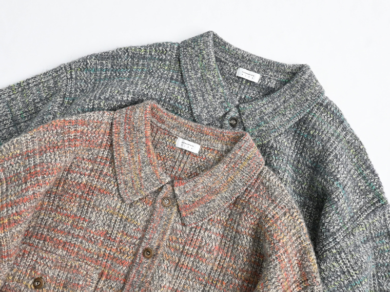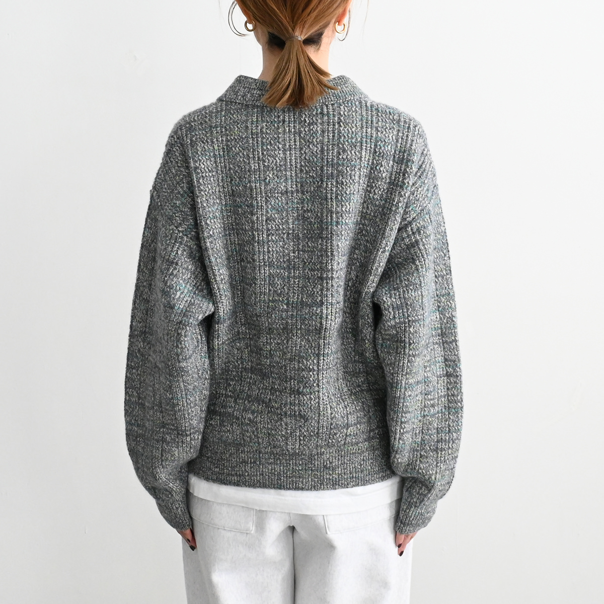 ミックスされたニット生地に加えクラシカルな雰囲気がある1枚になっています。