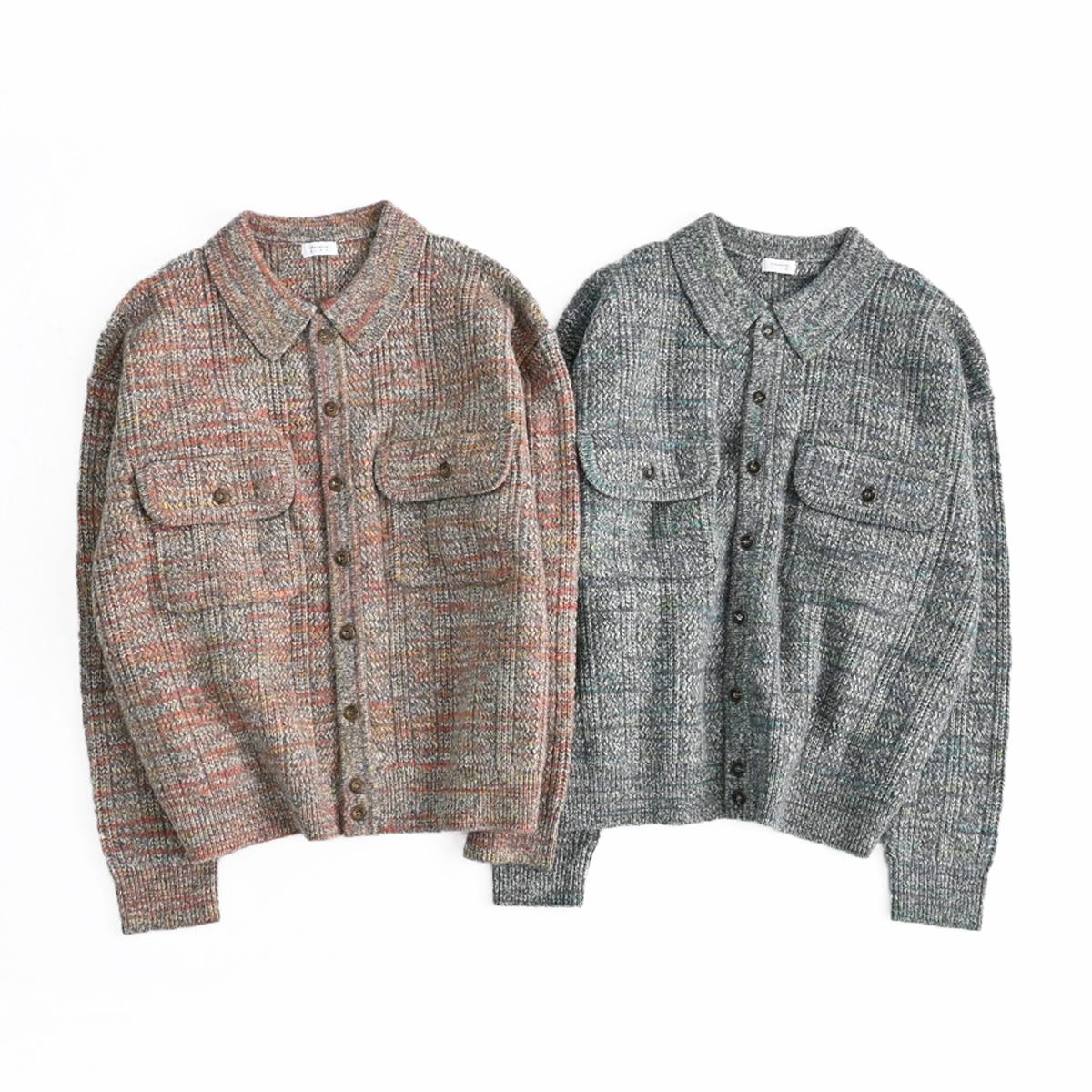 非常に素材感・温かみのあるニットで仕上げたリブニットジャケット。