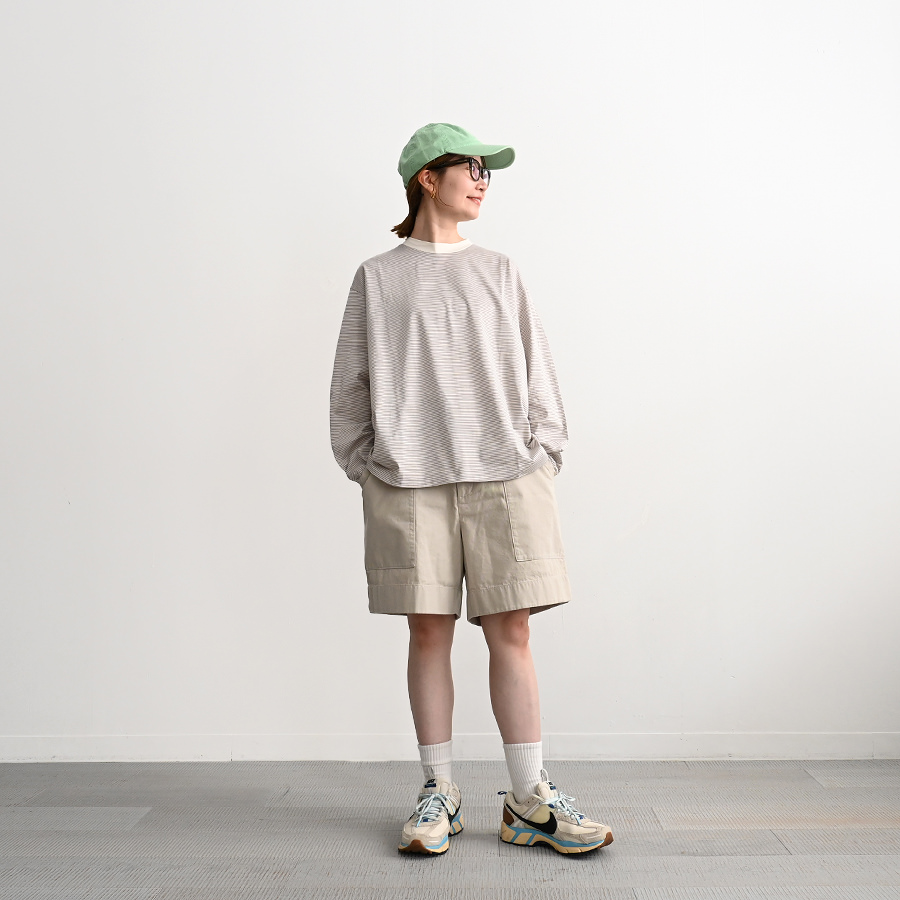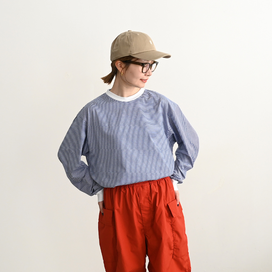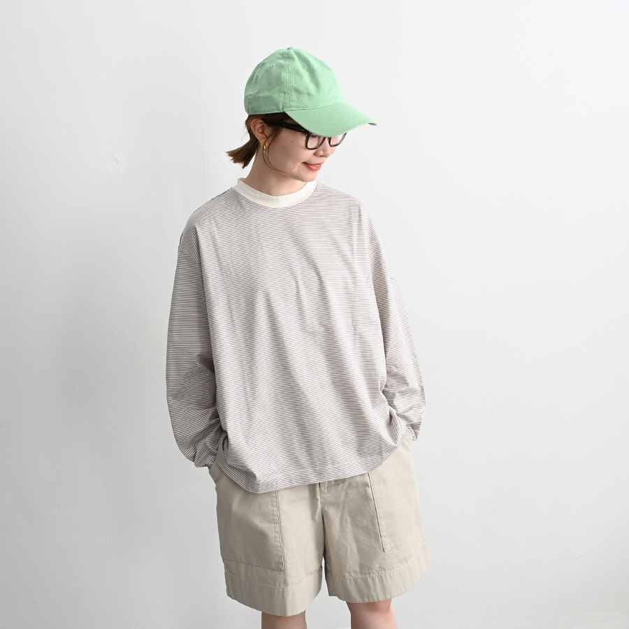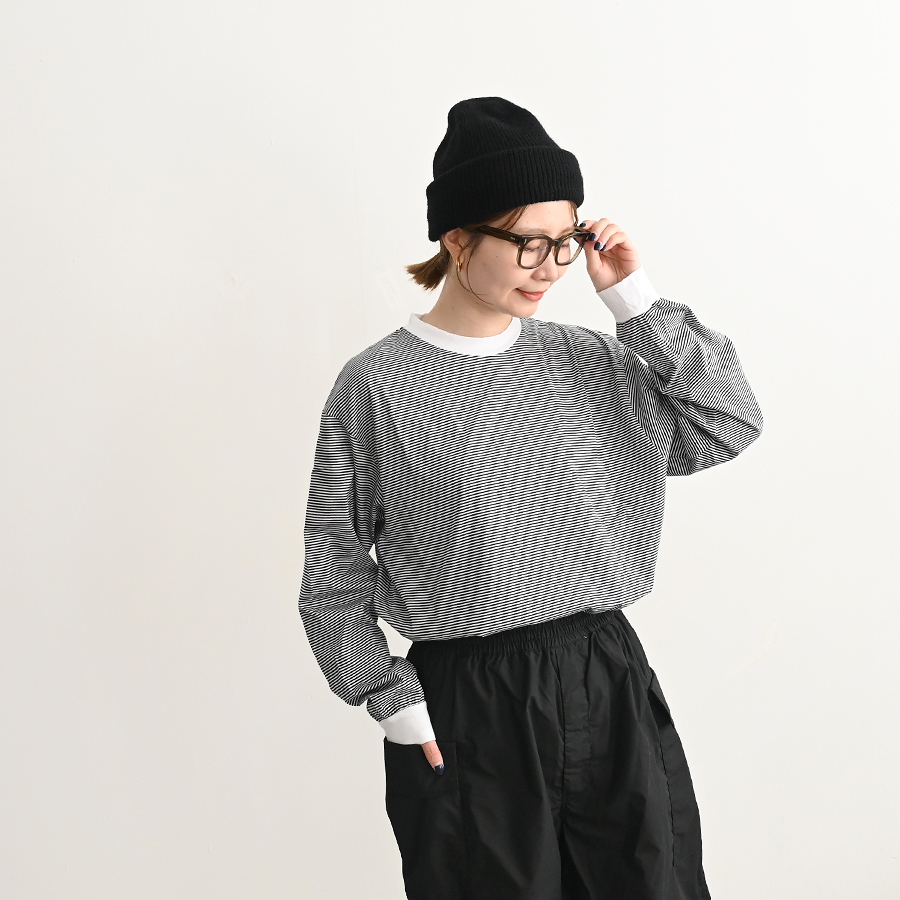 ややゆったりしたサイズ感で、一枚でもインナーとしても着用できる使い勝手の良いアイテムです。
