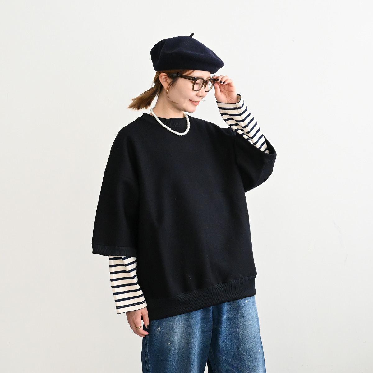 膨らみのある暖かなウールのカットソーメルトン生地を使用。