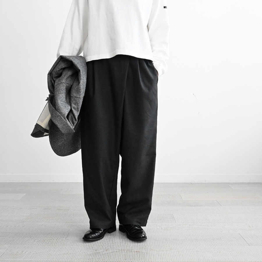前回、前々回と好評いただき第3弾、今回は秋冬らしいウールライクな生地で作りました。