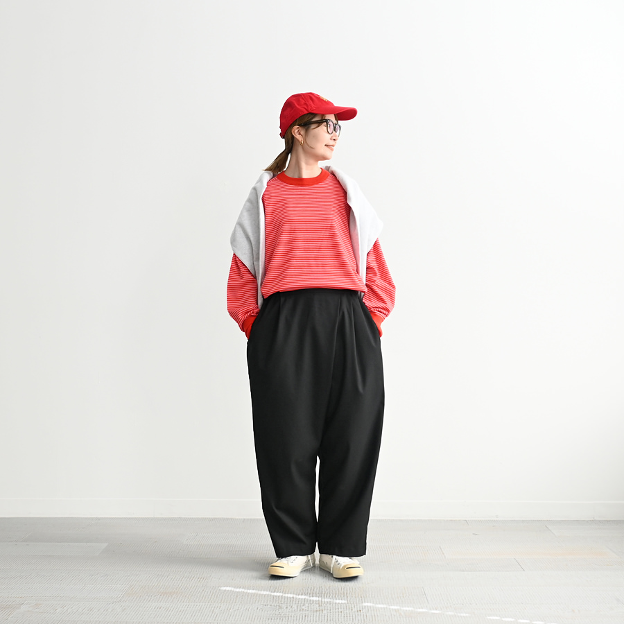 チュニックやワンピースの下に合わせたりと、とにかく万能でちょうど良いパンツですよ。