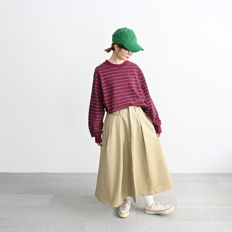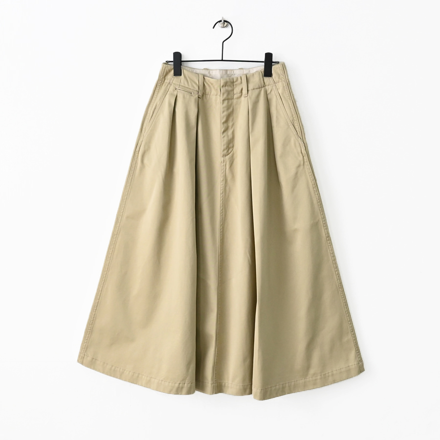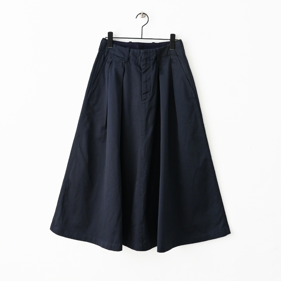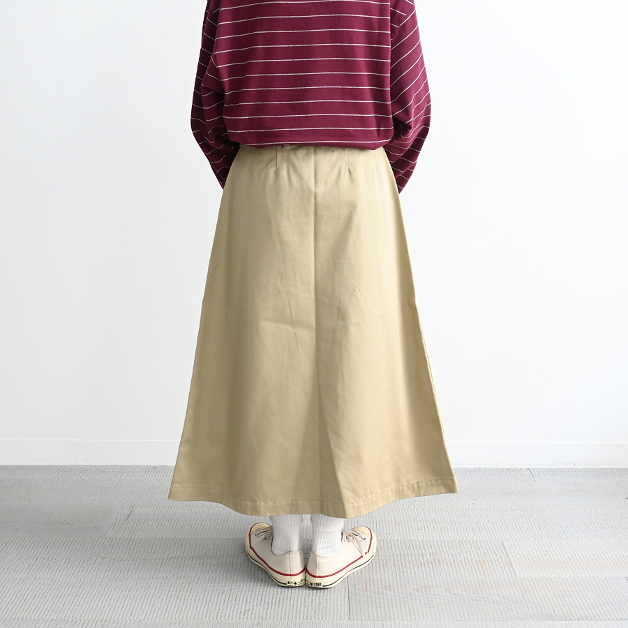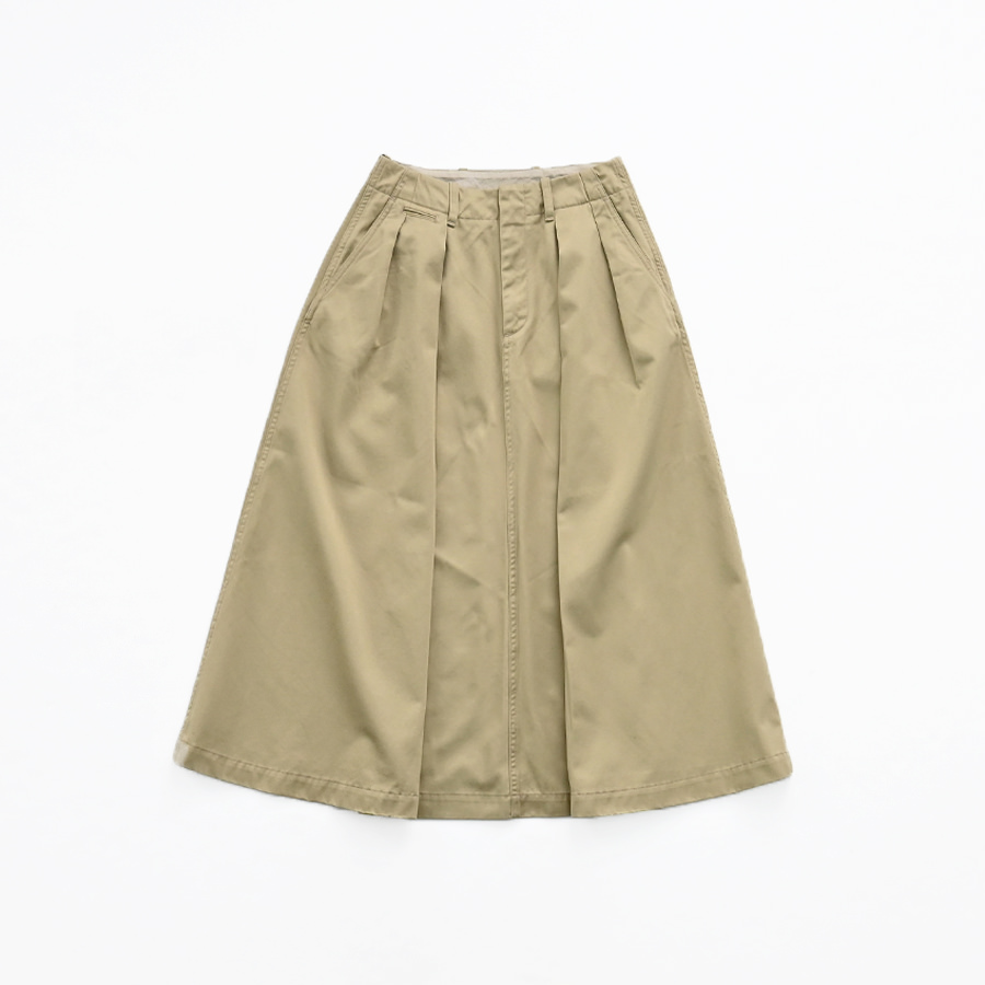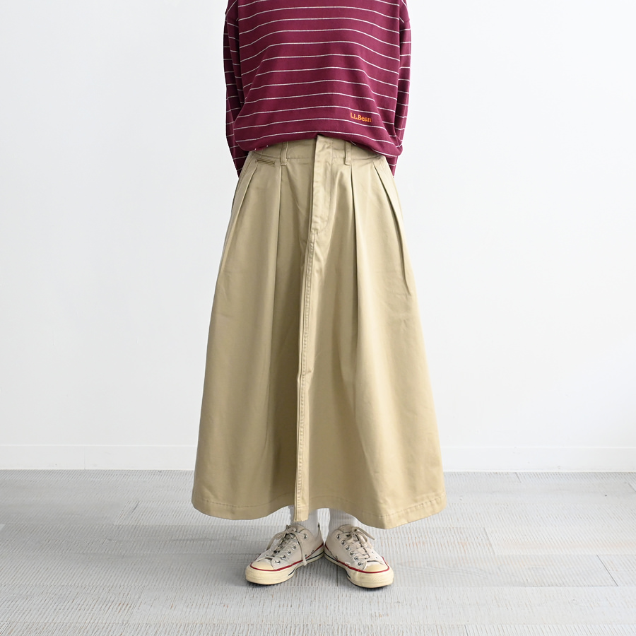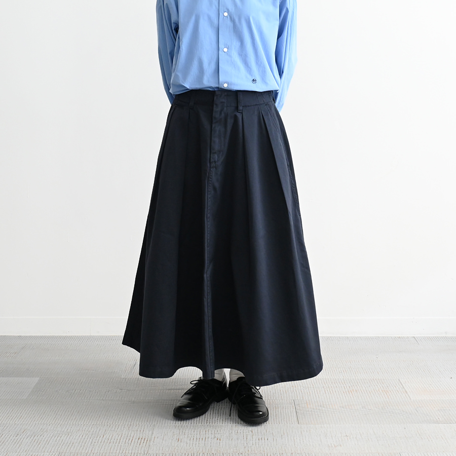 オーセンティックなタック入りのロング丈のスカート。