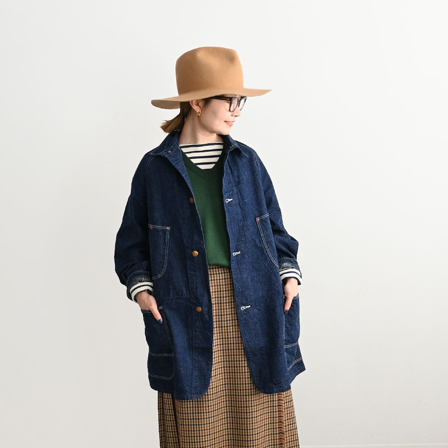 ブランドの定番である「カバーオール1950」を女性に特化した、ルーズシルエットでロング丈のデザインにアレンジ。